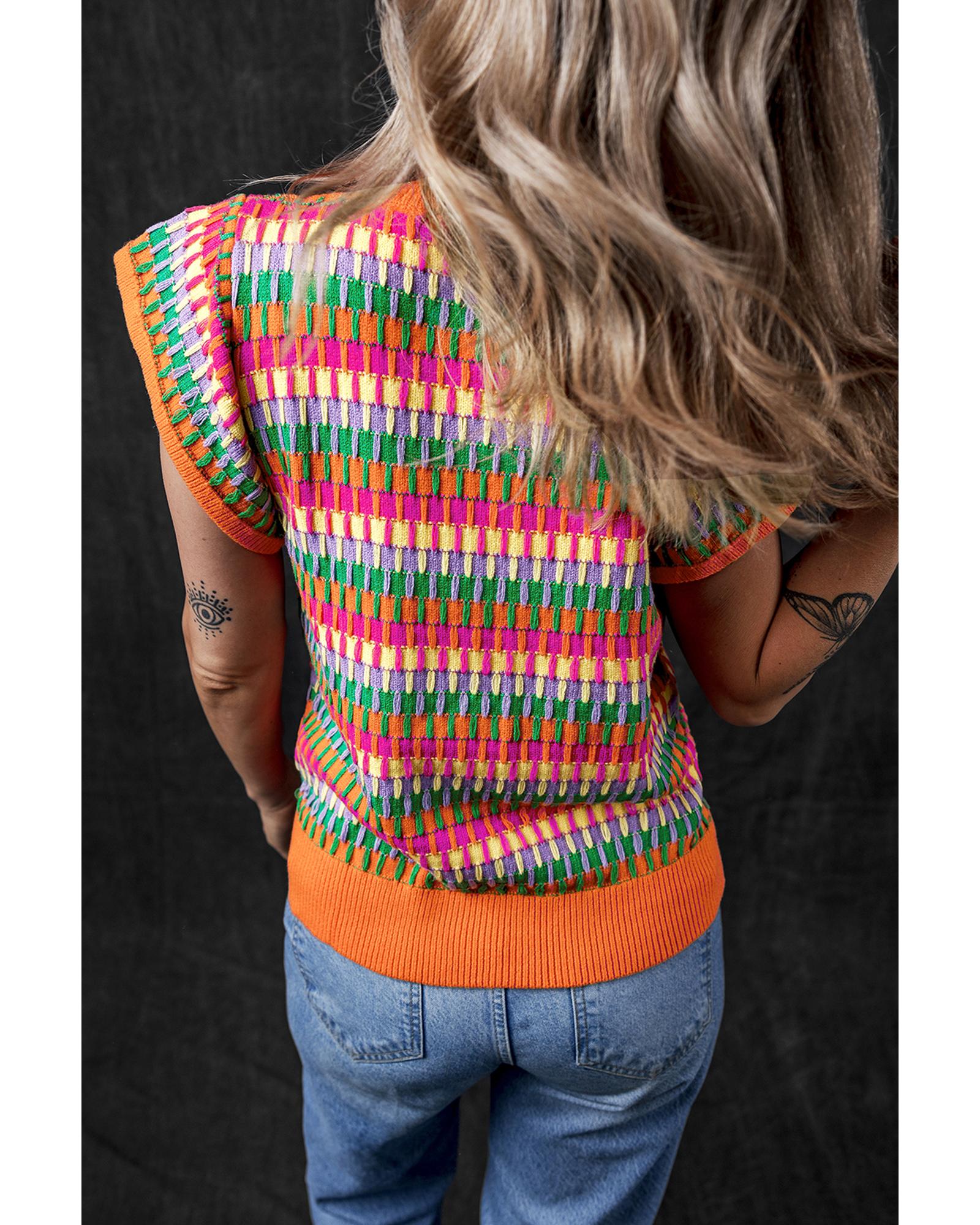 Orange Multicolor Flutter Sleeve Knitted Sweater Top - M