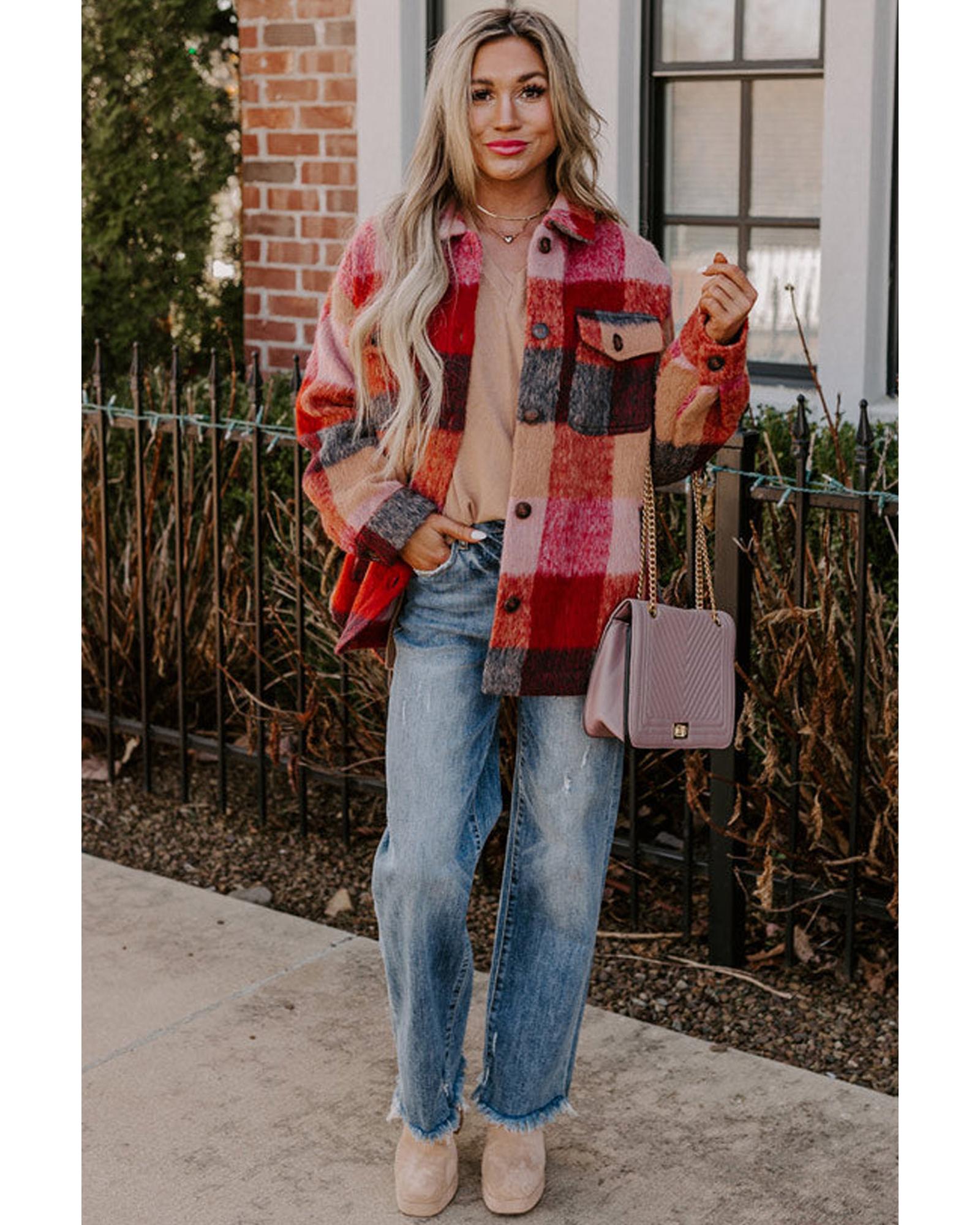 Orange Plaid Print Flap Pockets Buttoned Casual Plus Size Jacket – 3X