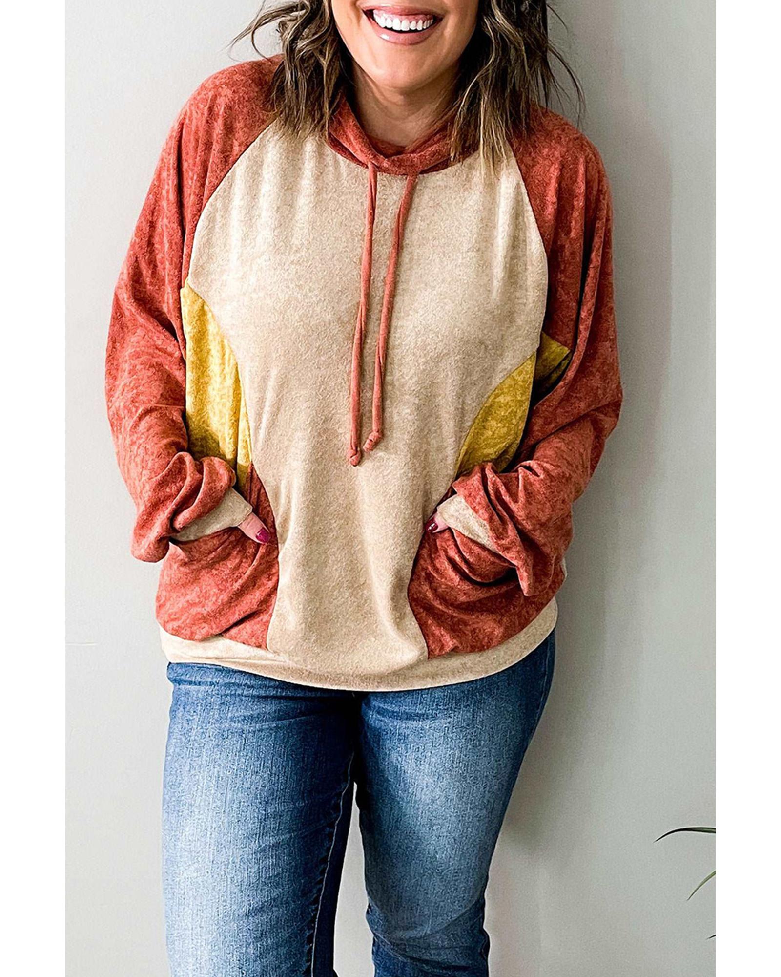 Orange Plus Size Colorblock Raglan Hoodie with Pockets – 3X