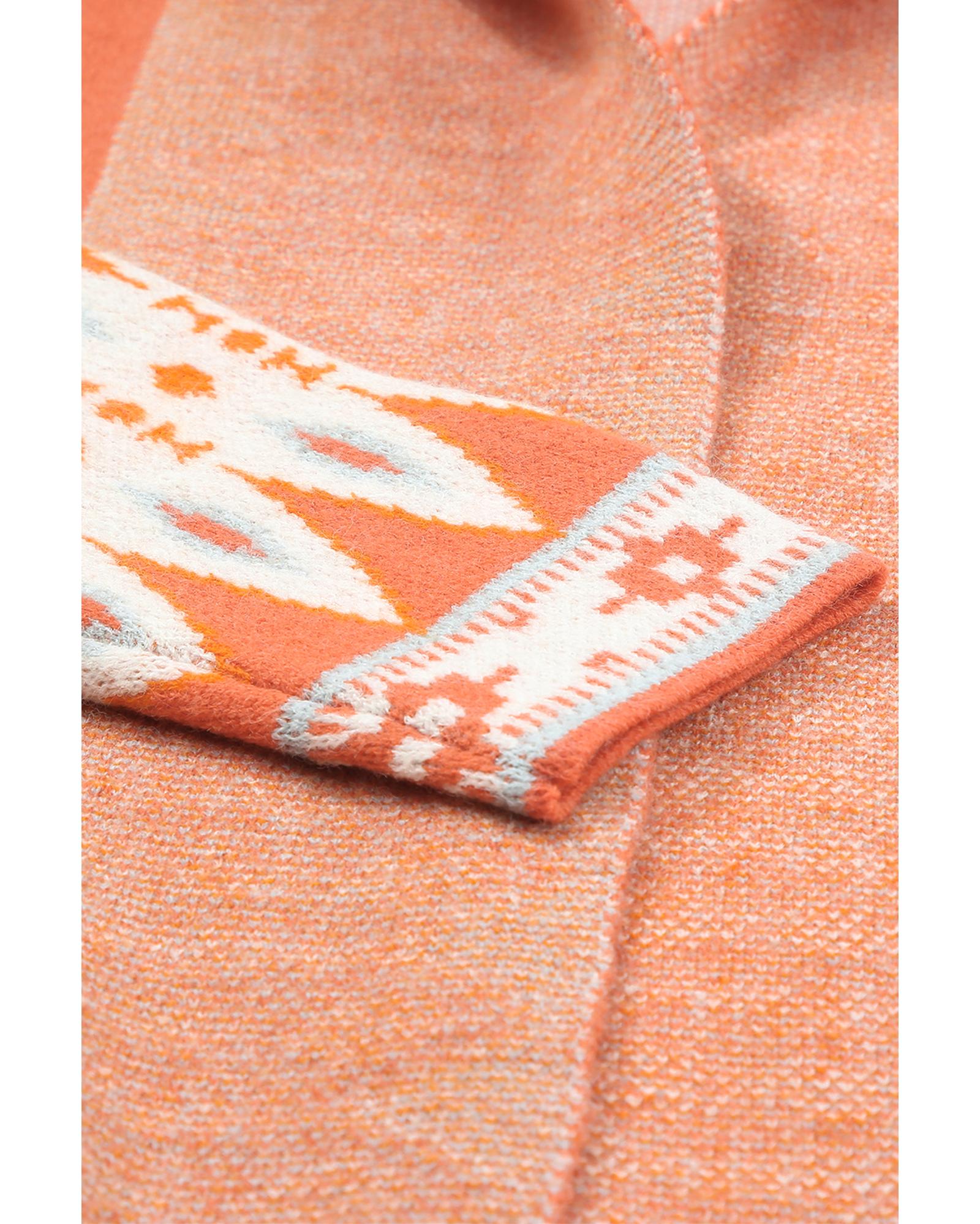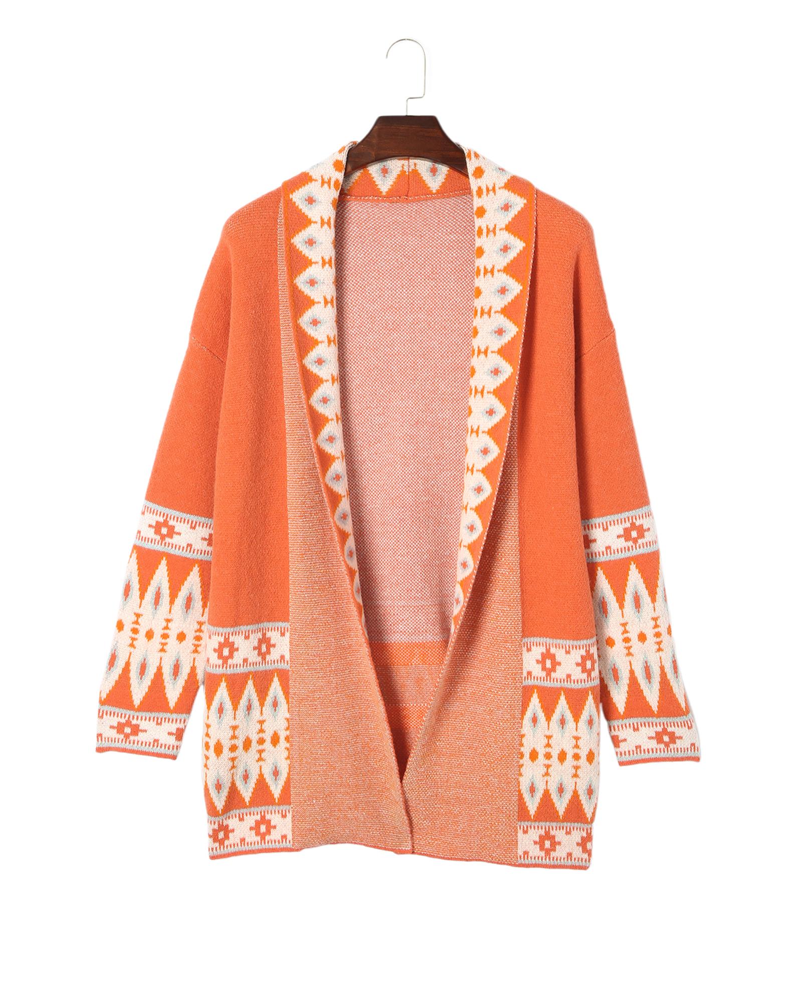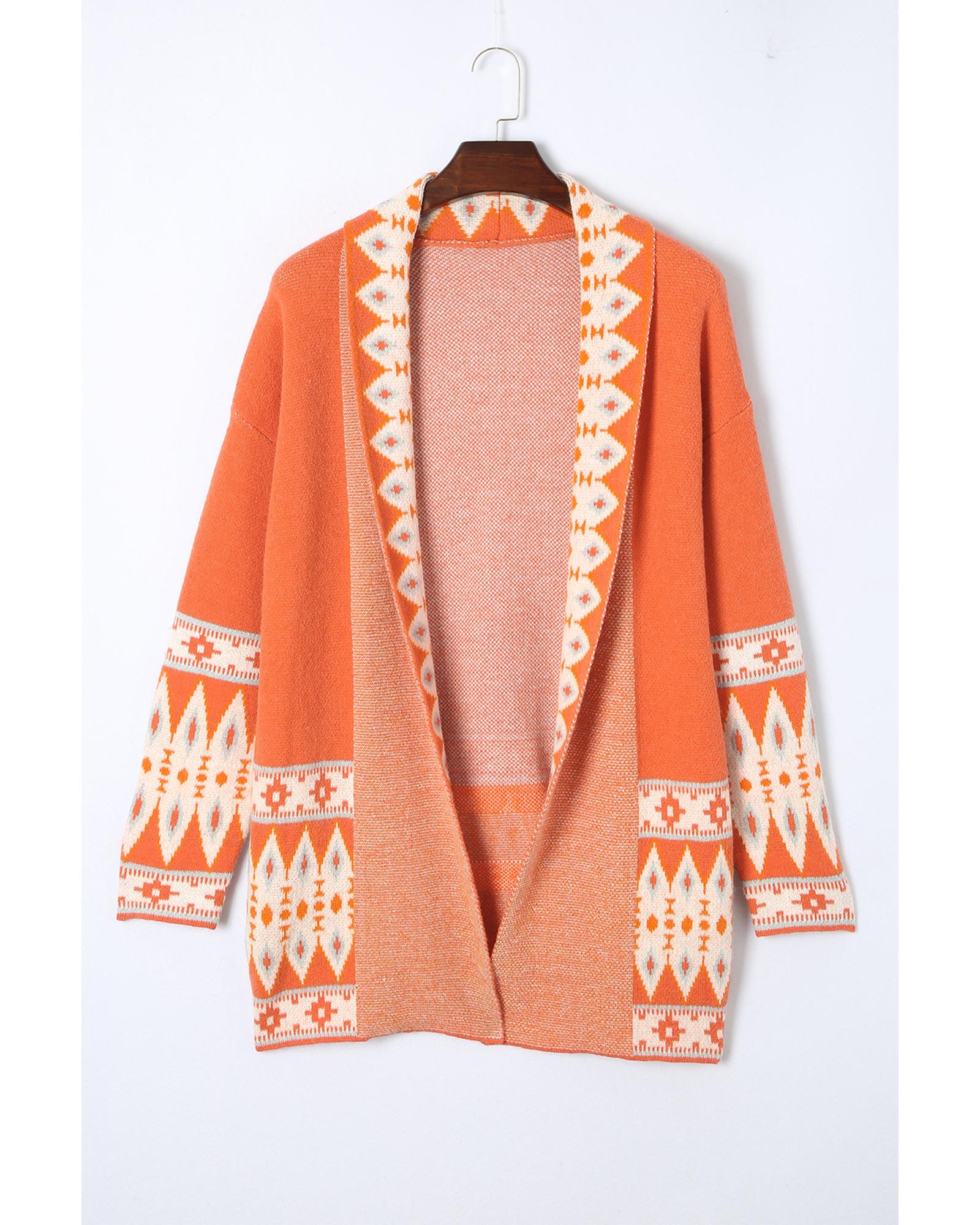 - Orange Printed Aztec Print Open Front Knitted Cardigan