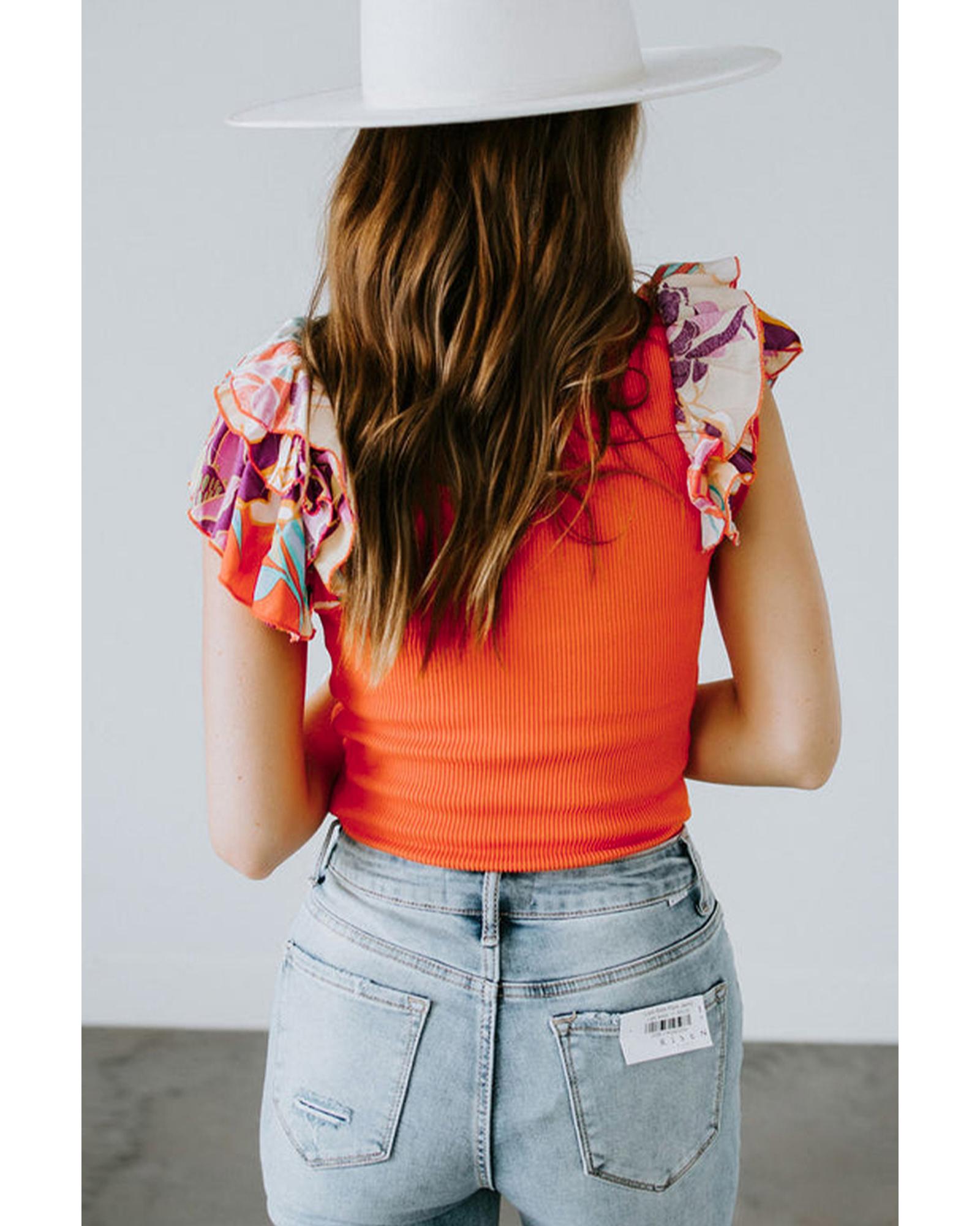 Orange Ribbed Knit Tiered Ruffled Sleeve Bodysuit – XL