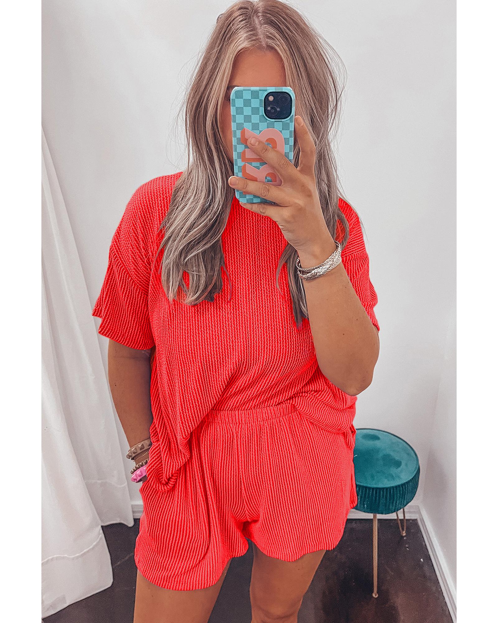 Orange Ribbed Textured Knit Loose Fit Tee and Shorts Set – M