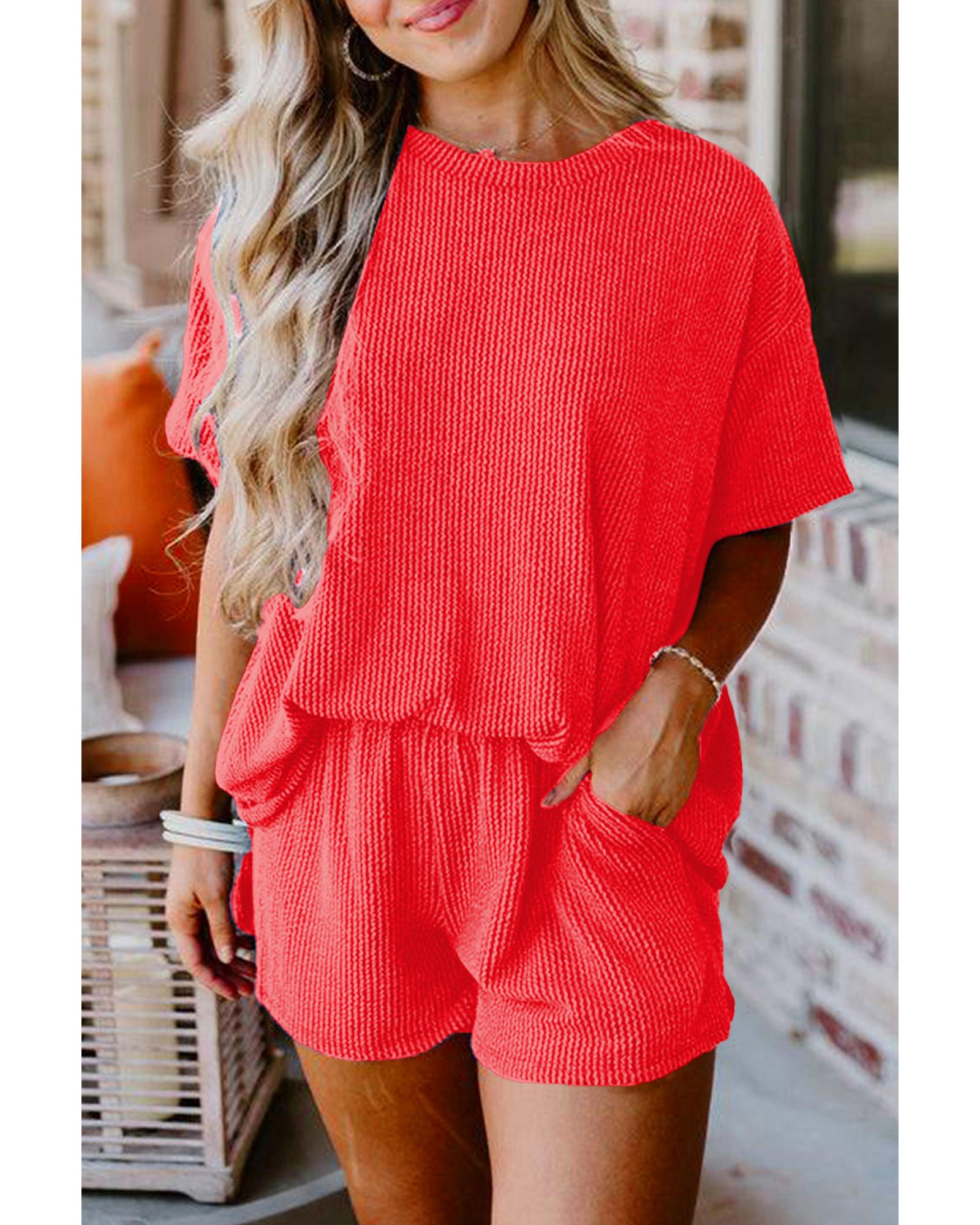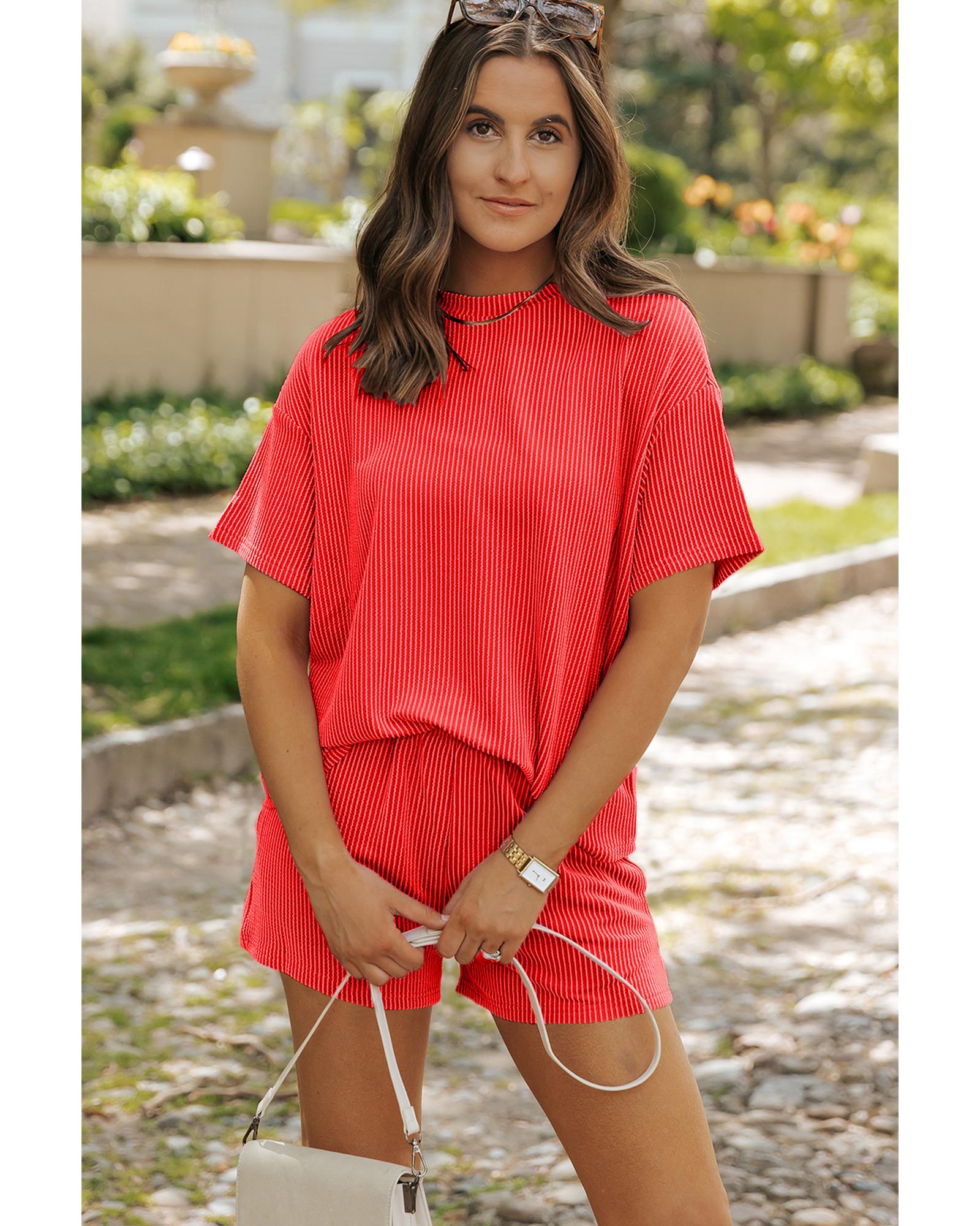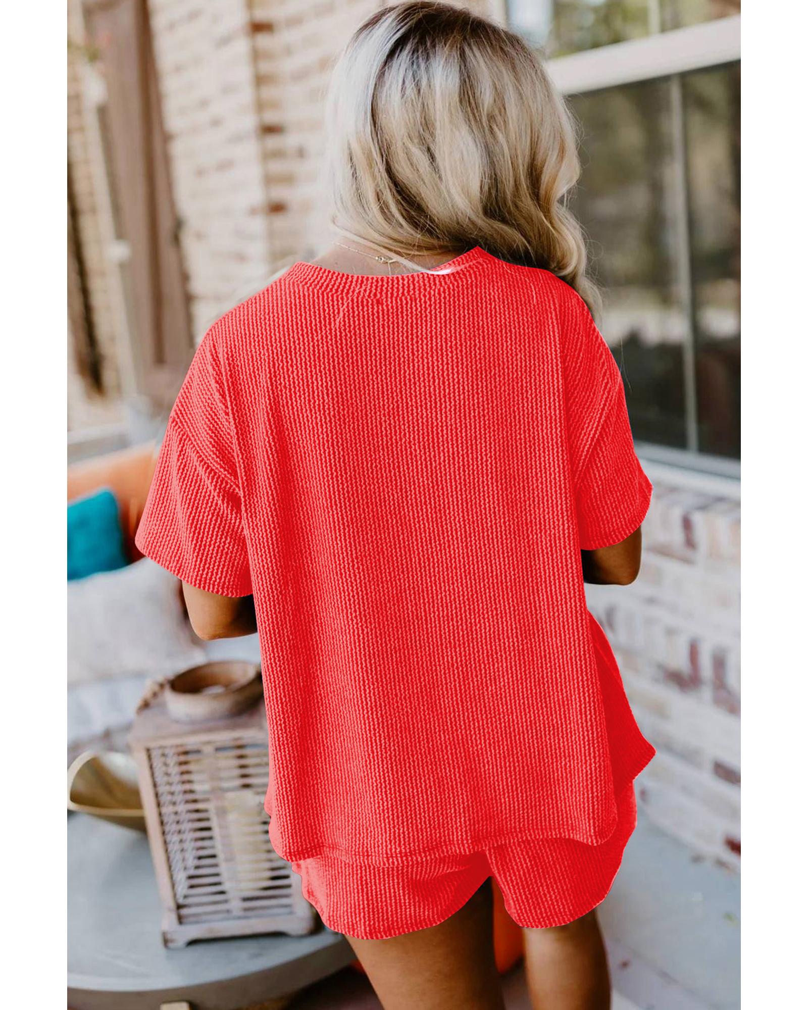 Orange Ribbed Textured Knit Loose Fit Tee and Shorts Set – S