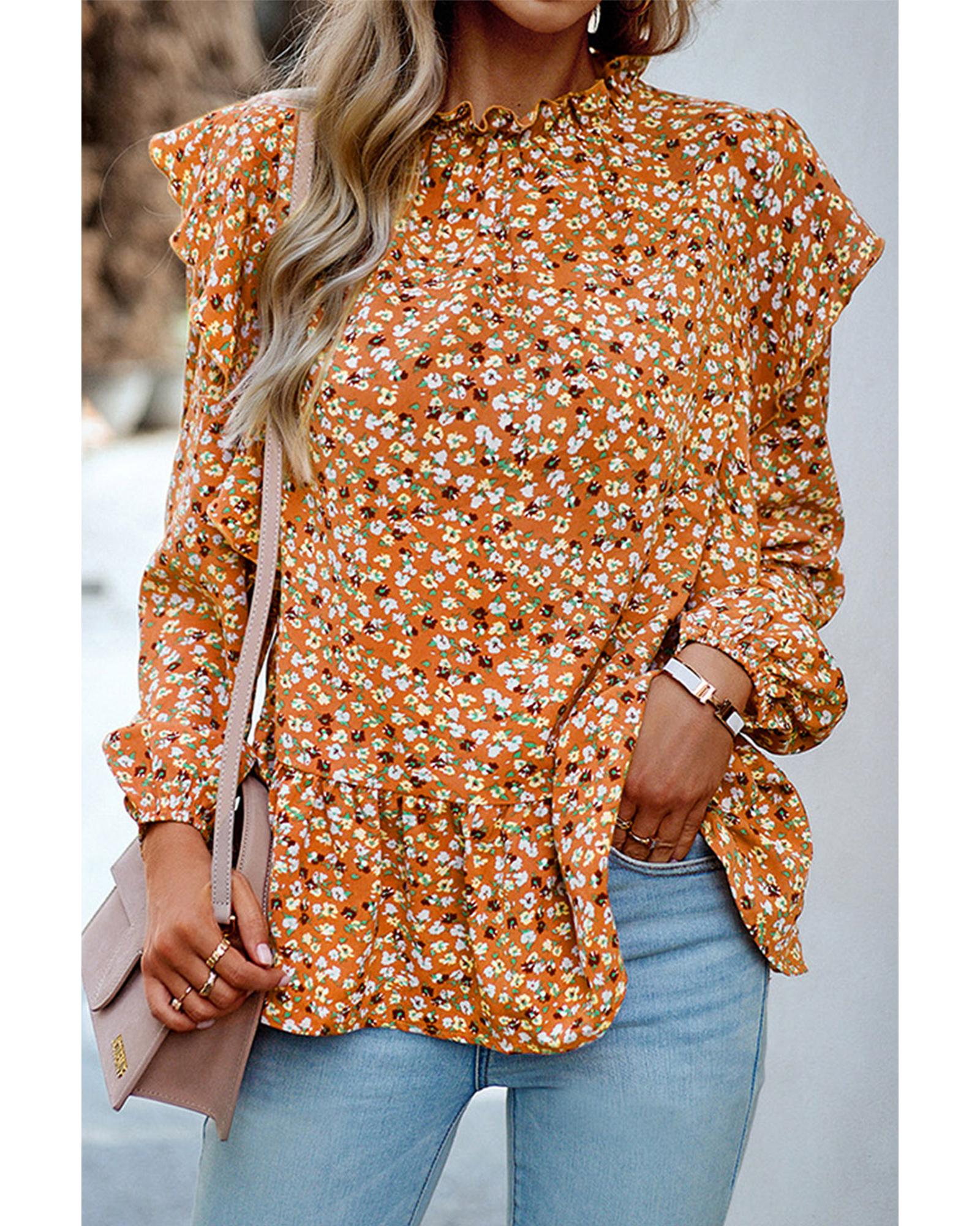 - Stylish and elegant Orange Ruffle Collar Long Sleeve Peplum Top