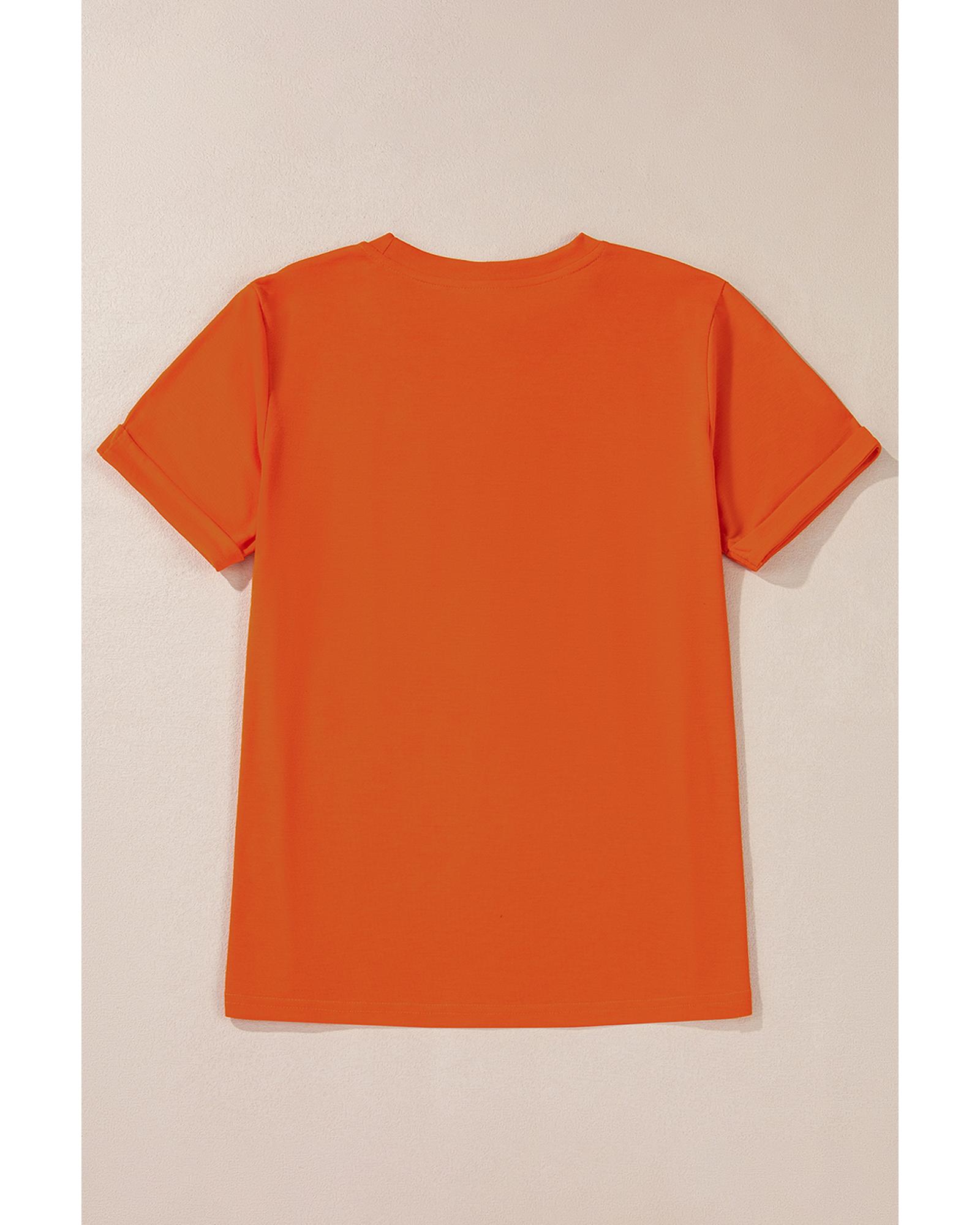 Orange SPOOKY Vibe Ghost Print Crewneck Halloween T Shirt – 3XL