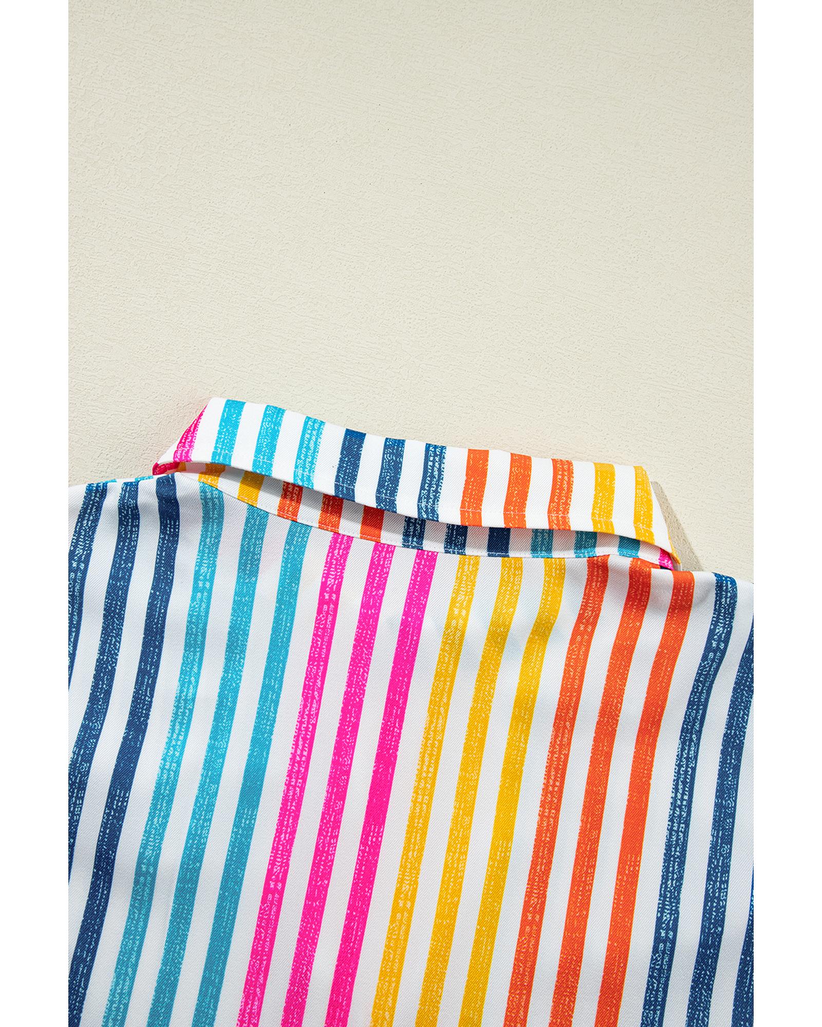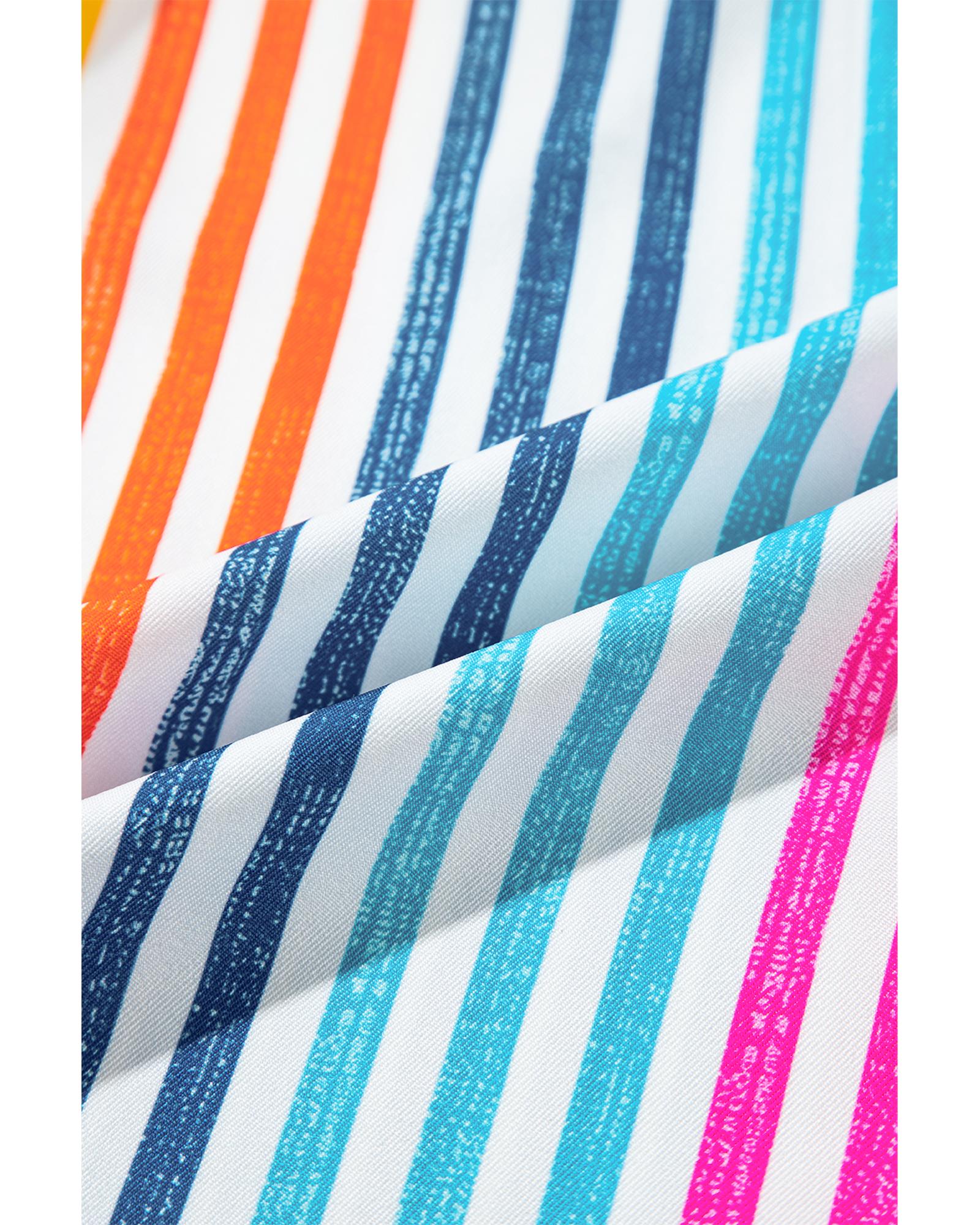 Orange Stripe Multicolor Drop Shoulder Loose Shirt – S