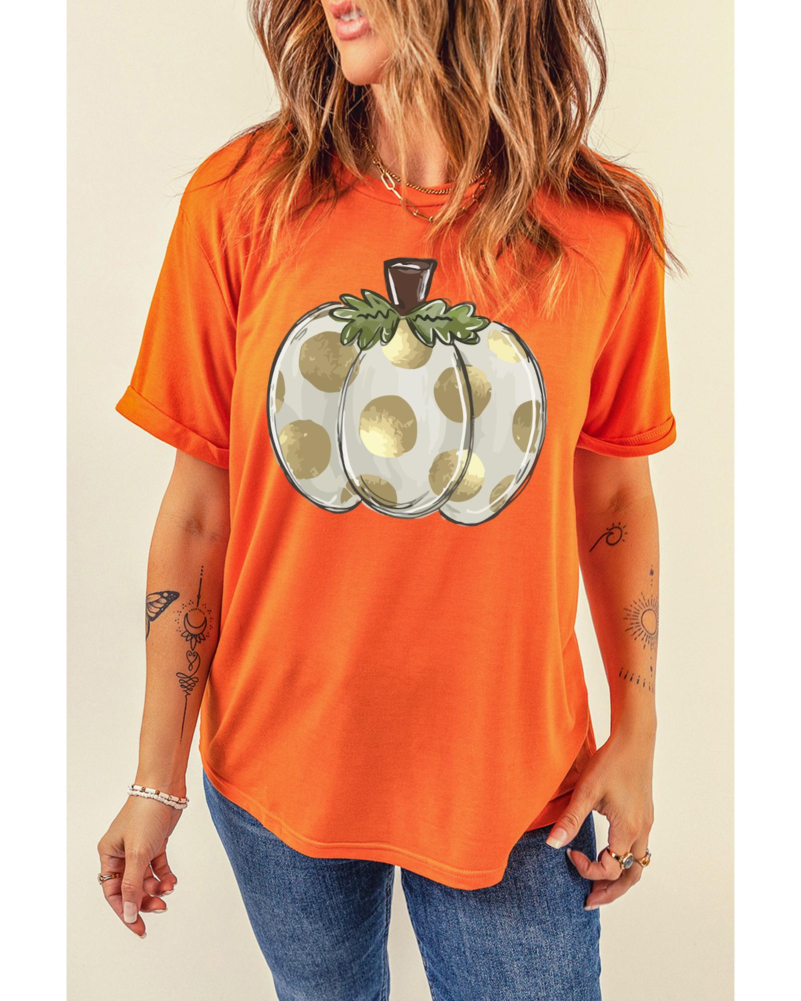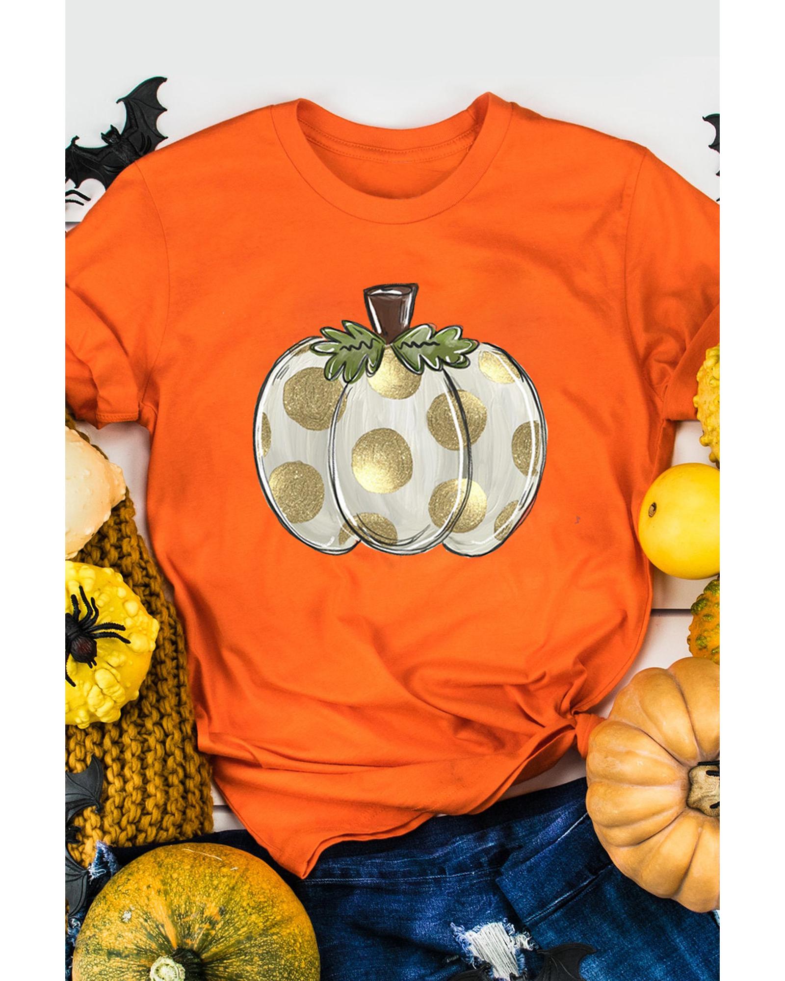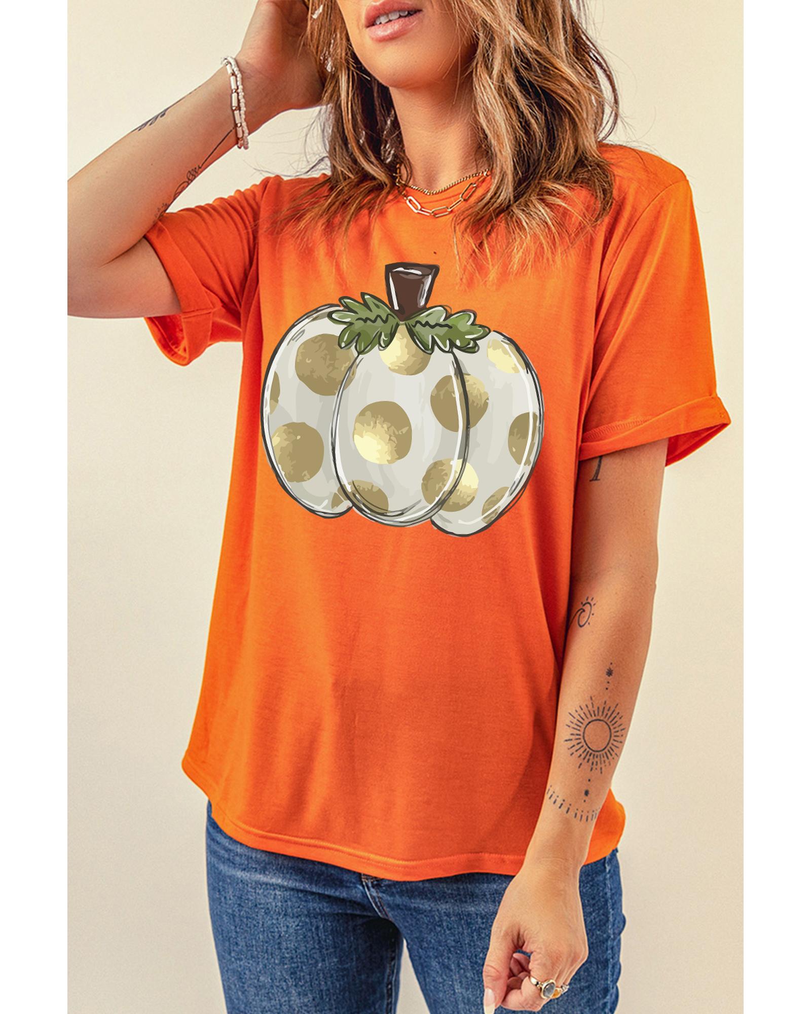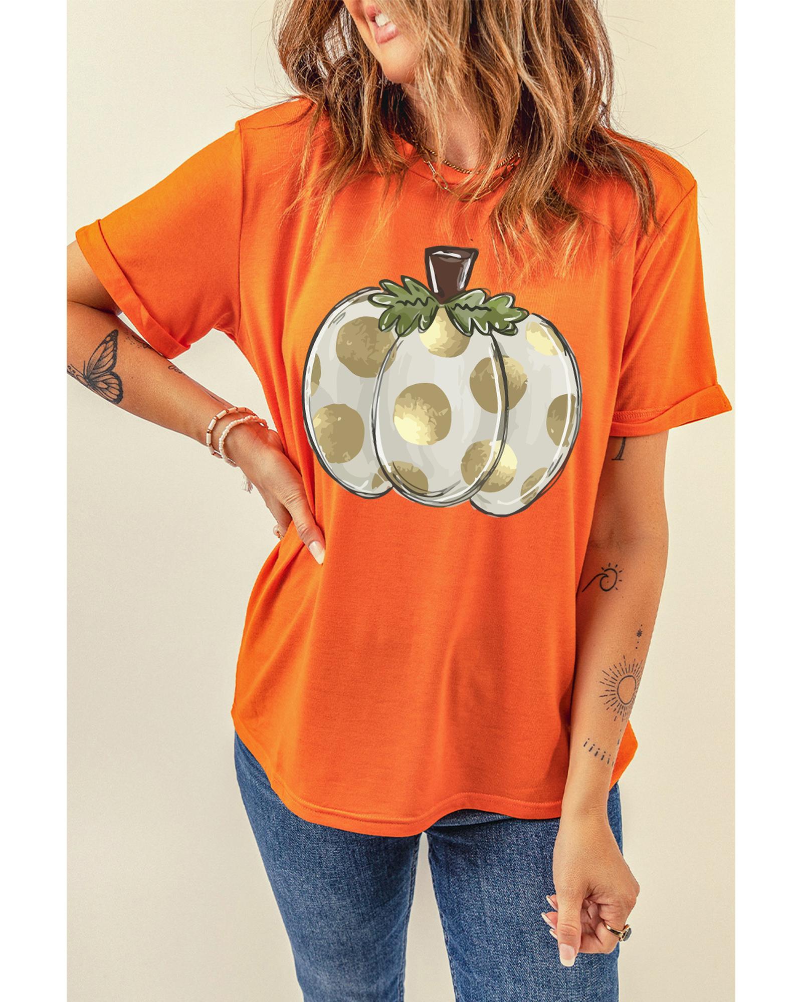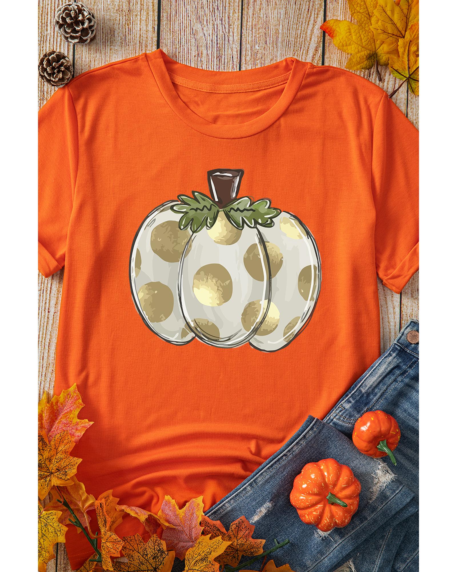 - Orange Thanksgiving Pumpkin Pattern Crew Neck Short Sleeve Top