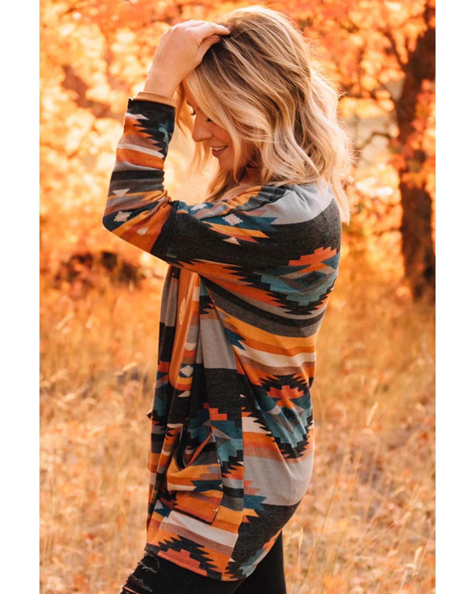 Orange Western Tribal Aztec Print Cardigan – S