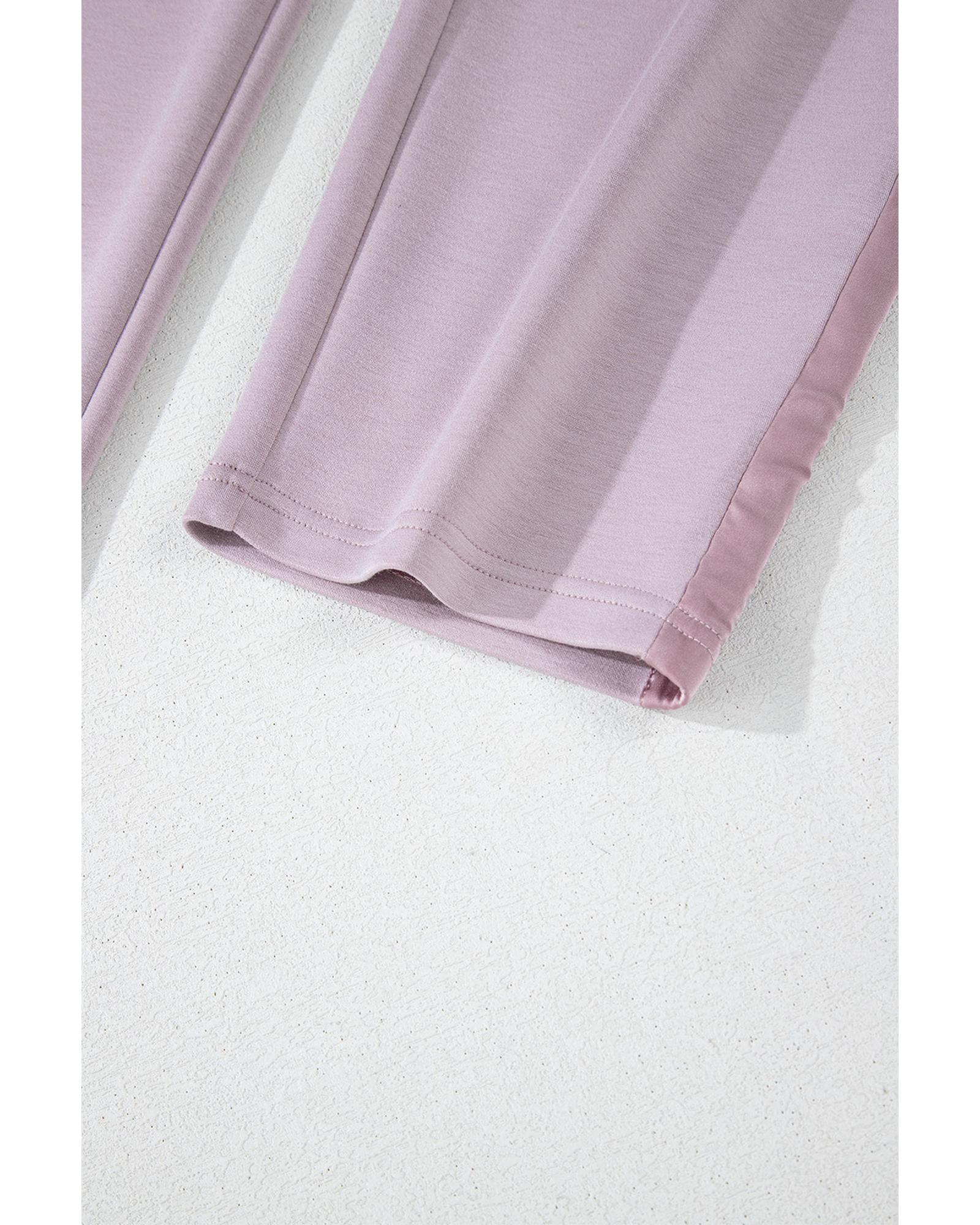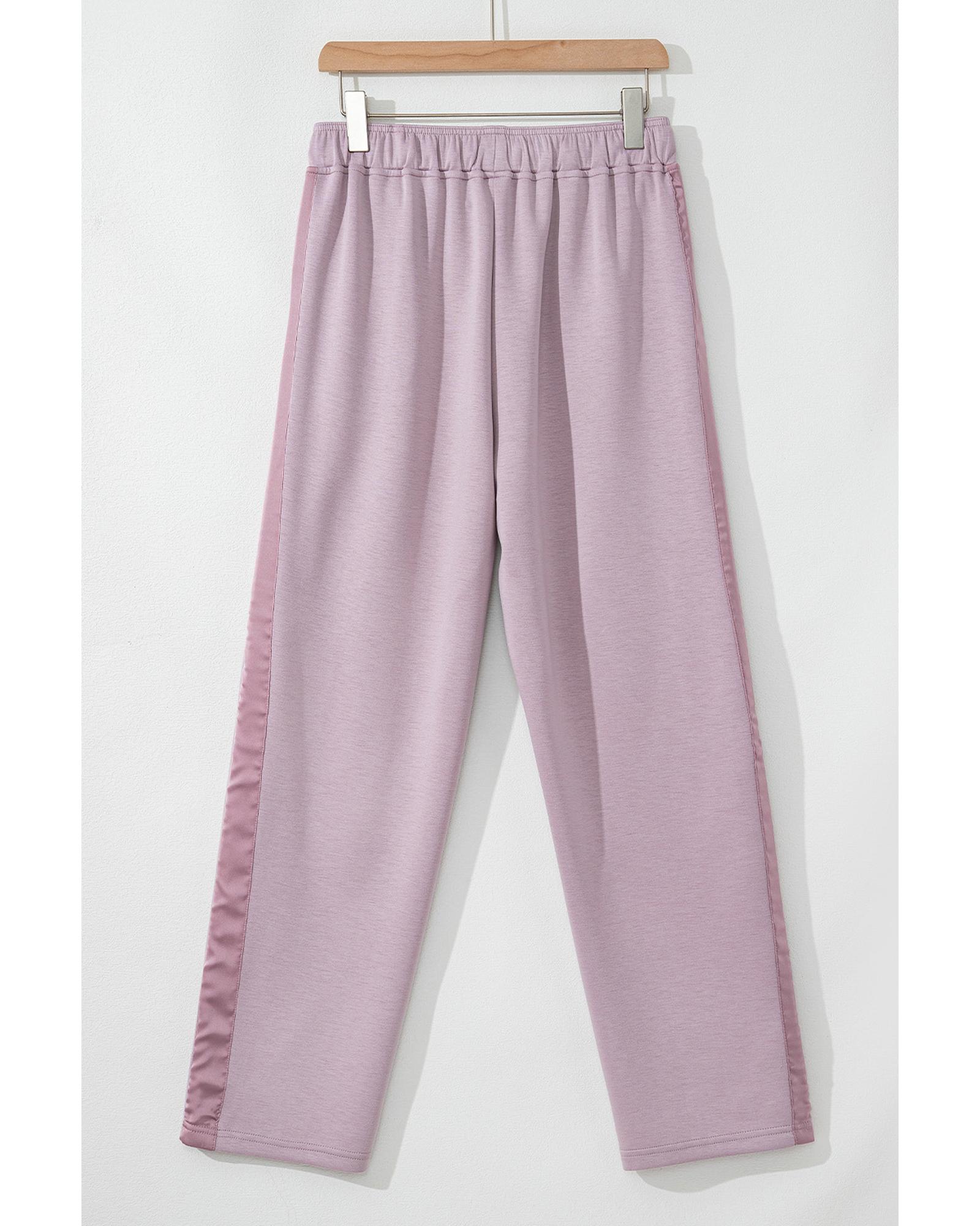 Orchid Petal Drawstring Waist Satin Stripe Patch Straight Leg High Waist Pants – S