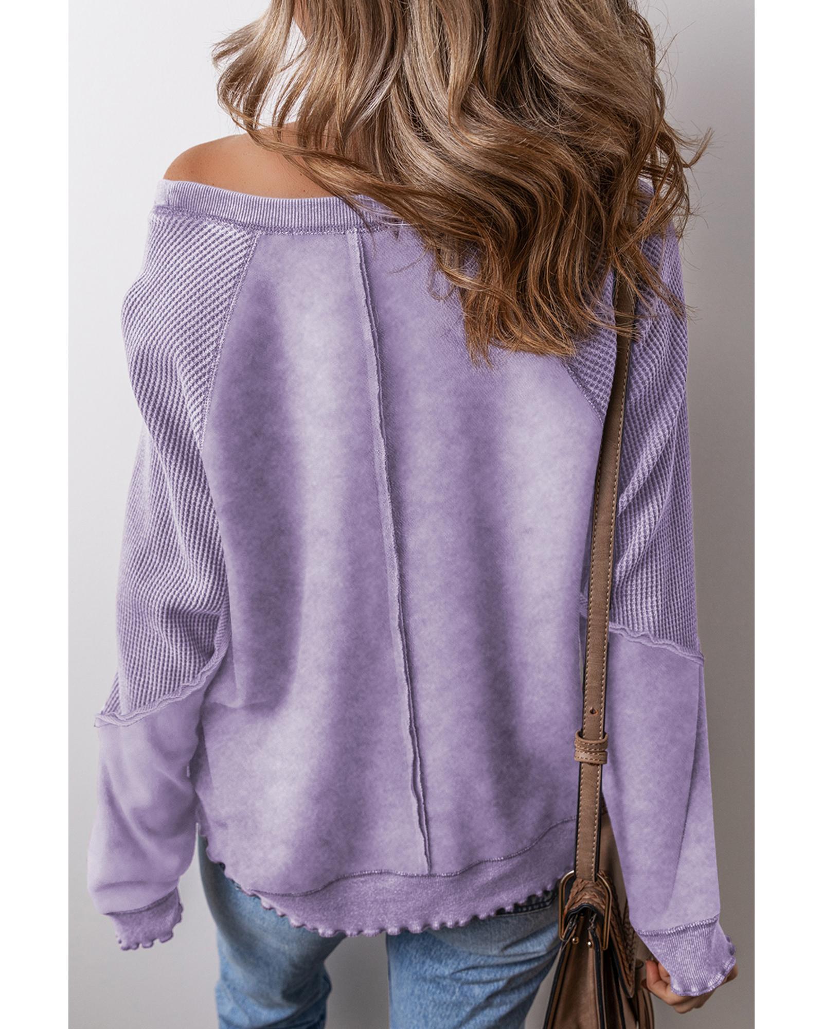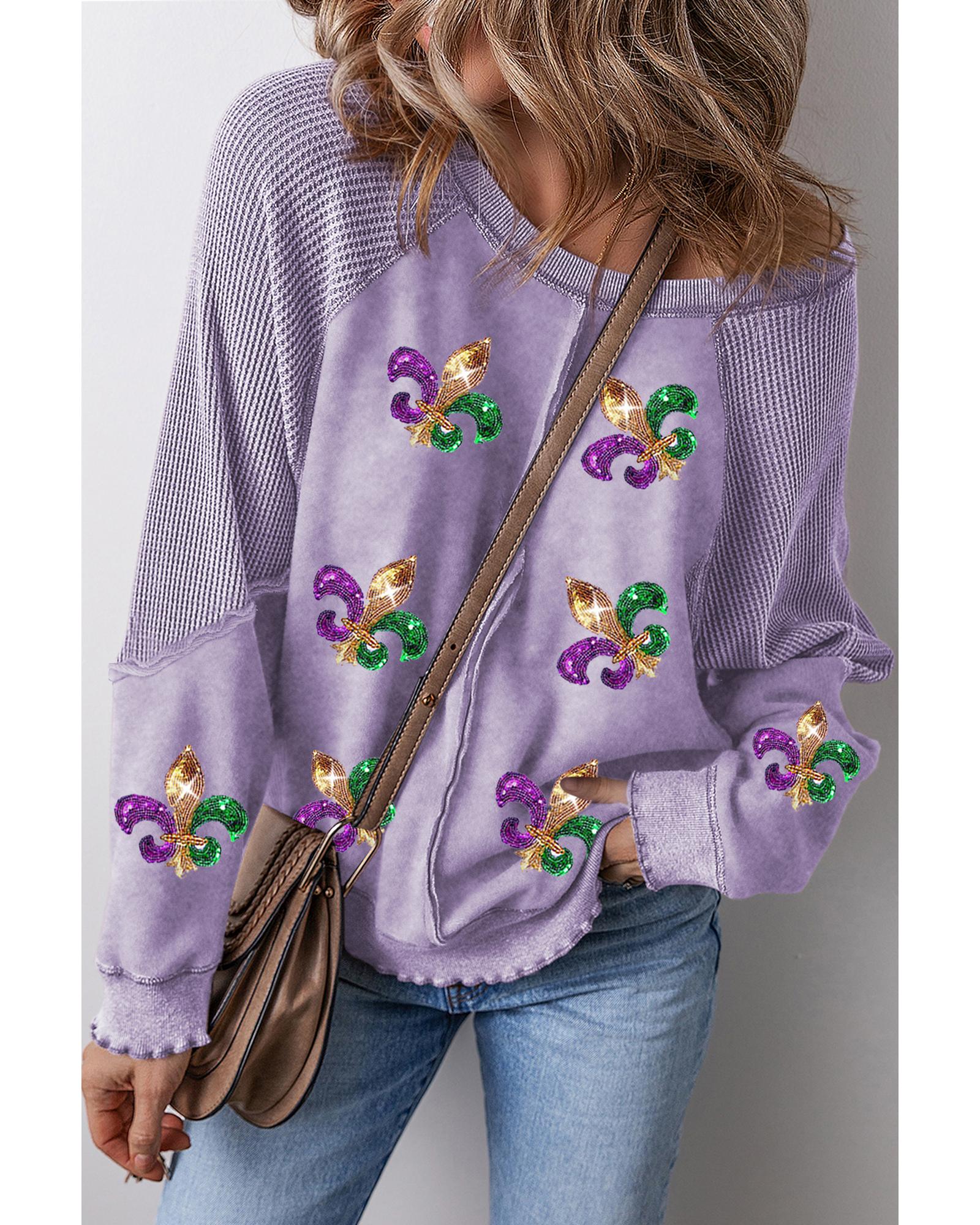 Orchid Petal Mardi Gras Patched Pattern Waffle Patchwork Sweatshirt – XL