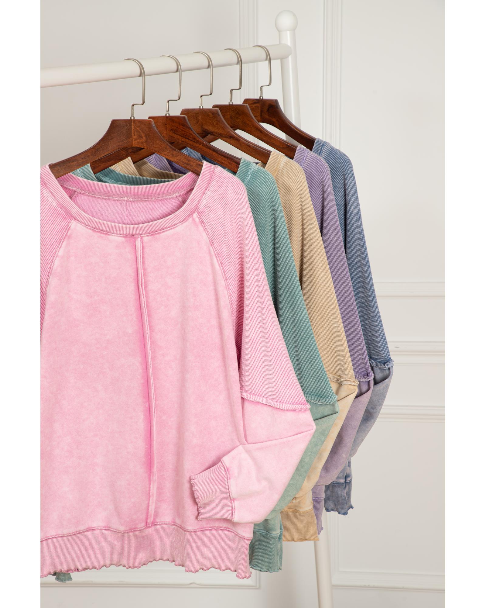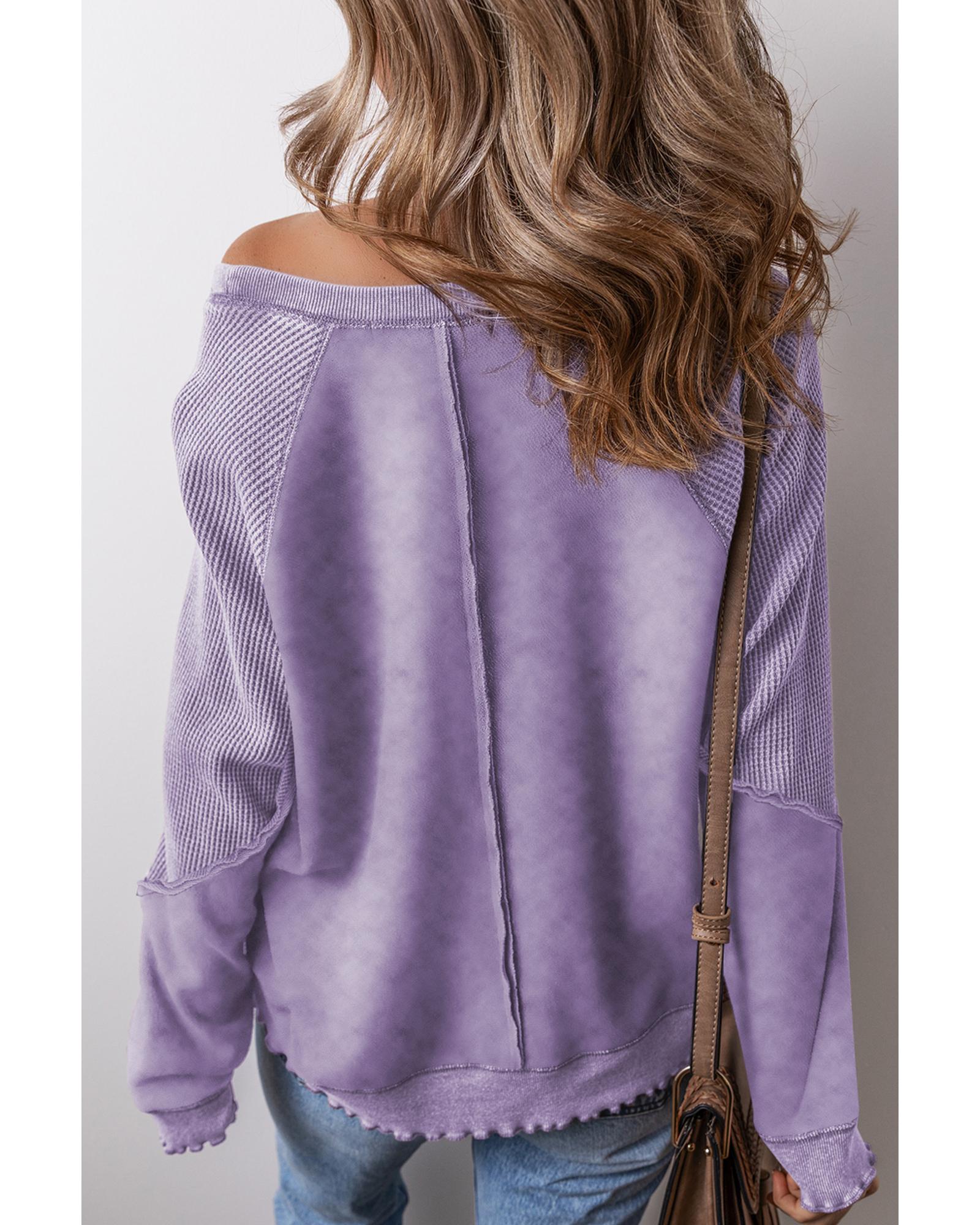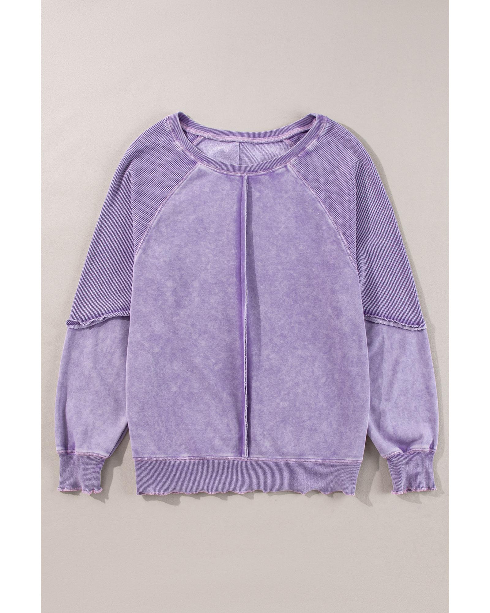 Orchid Petal Solid Waffle Knit Patchwork Raglan Sleeve Sweatshirt – S