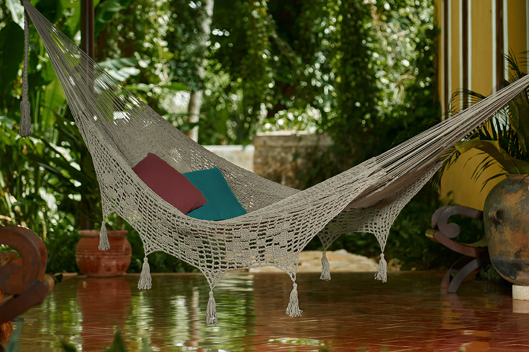 - Made in Mexico supporting the tradition of weaving hammocks from home.