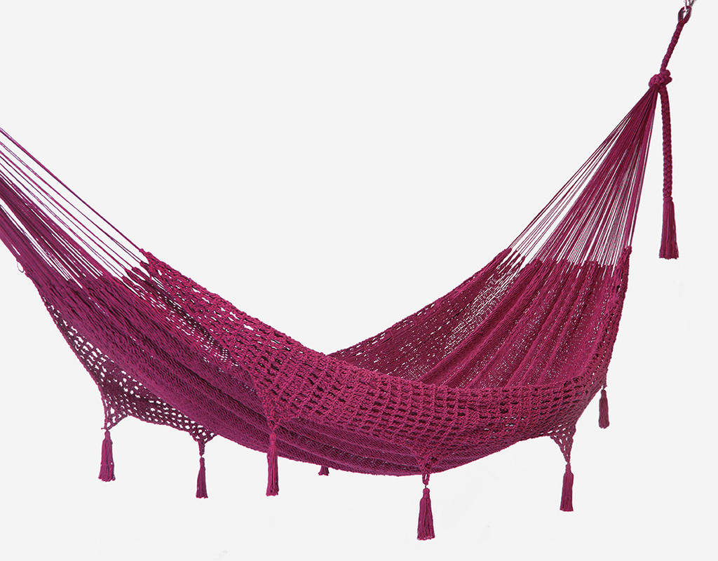 Outdoor undercover cotton Mayan Legacy hammock with hand crocheted tassels King Size Mexican Pink