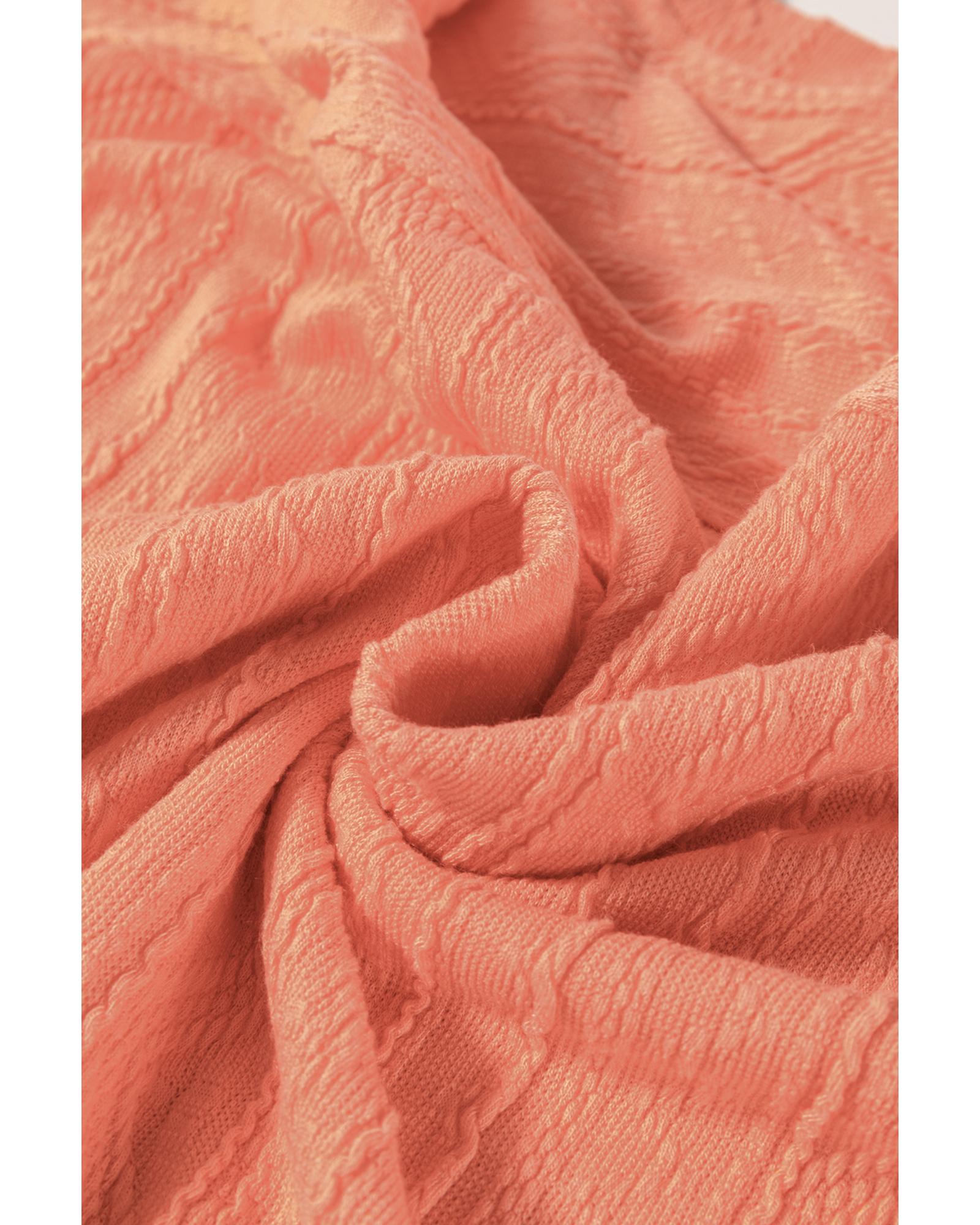 Pale Chestnut Textured Patched Pocket Short Sleeve Top Drawstring Shorts Set – L