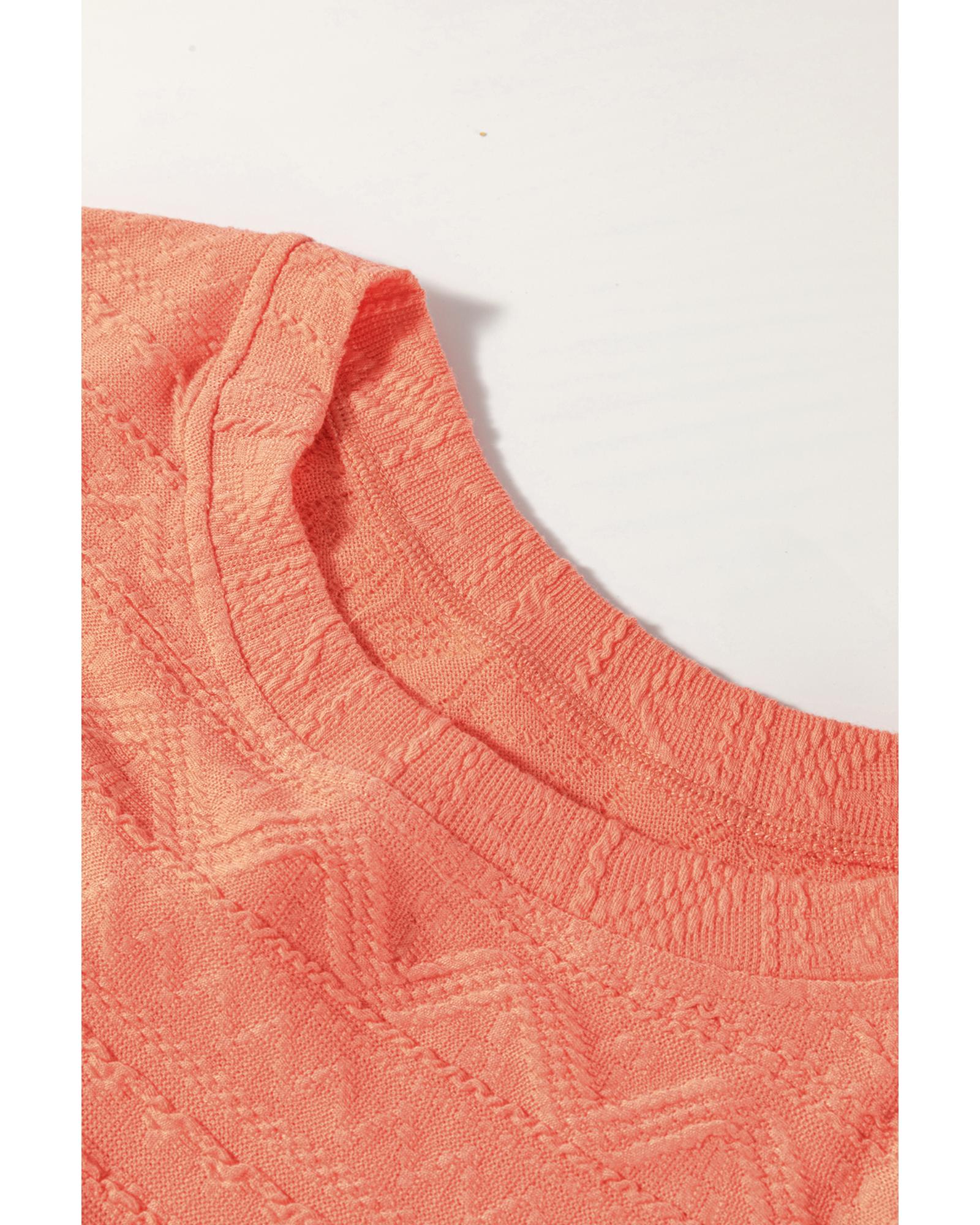 Pale Chestnut Textured Patched Pocket Short Sleeve Top Drawstring Shorts Set – M