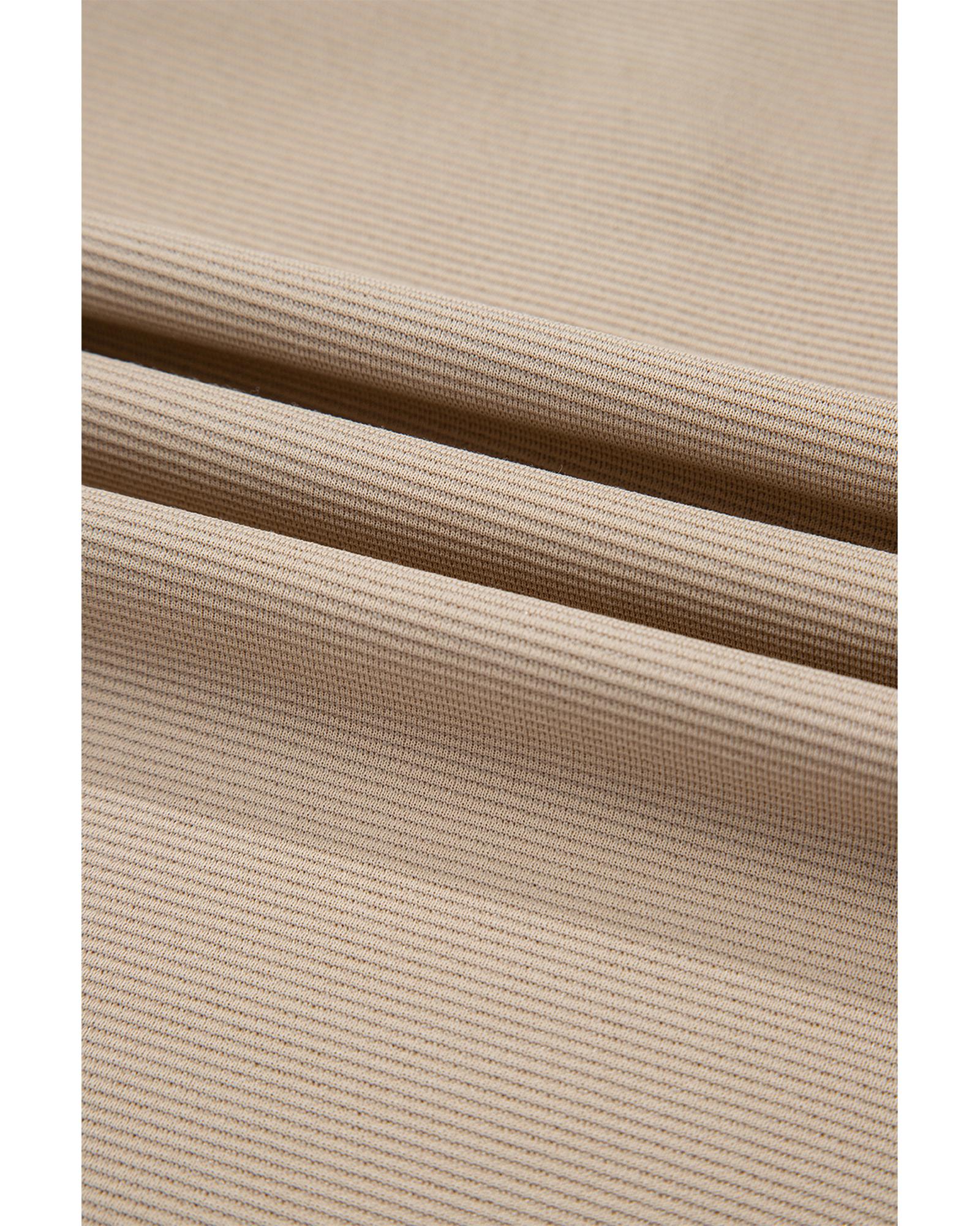 Pale Khaki Contrast V Neck Ruffled Textured Knit Top – M