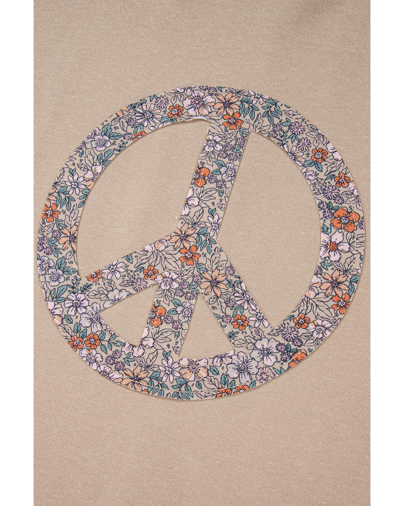 Pale Khaki Floral Peace Sign Graphic Washed Terry Plus Size Sweatshirt – 1X