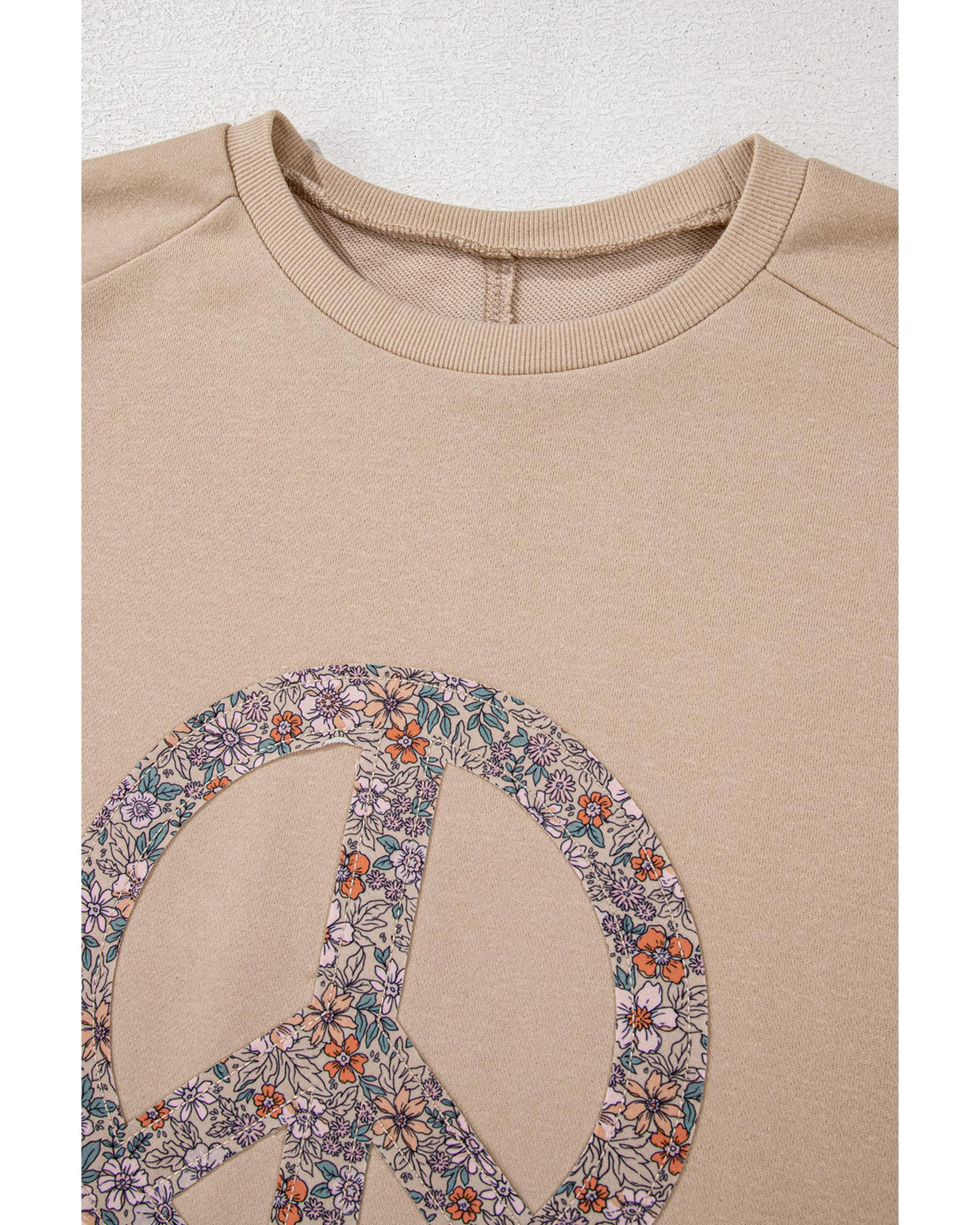 Pale Khaki Floral Peace Sign Graphic Washed Terry Plus Size Sweatshirt – 4X