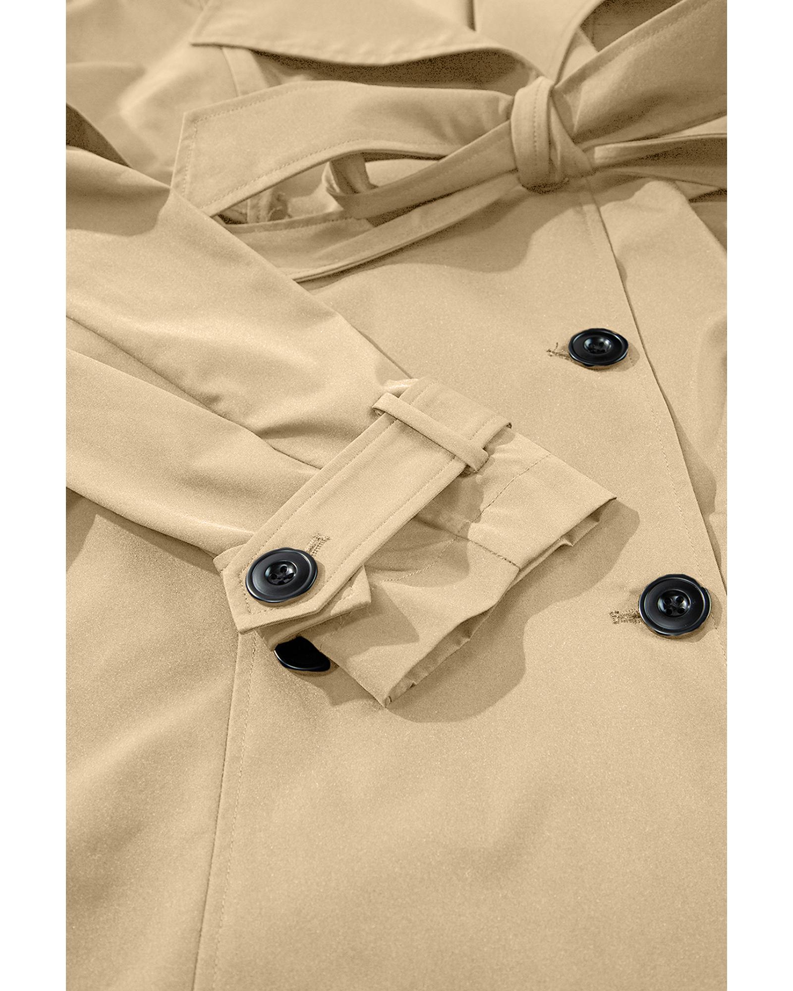 Pale Khaki Solid Color Lapel Collar Waist Tie Wind Coat – S