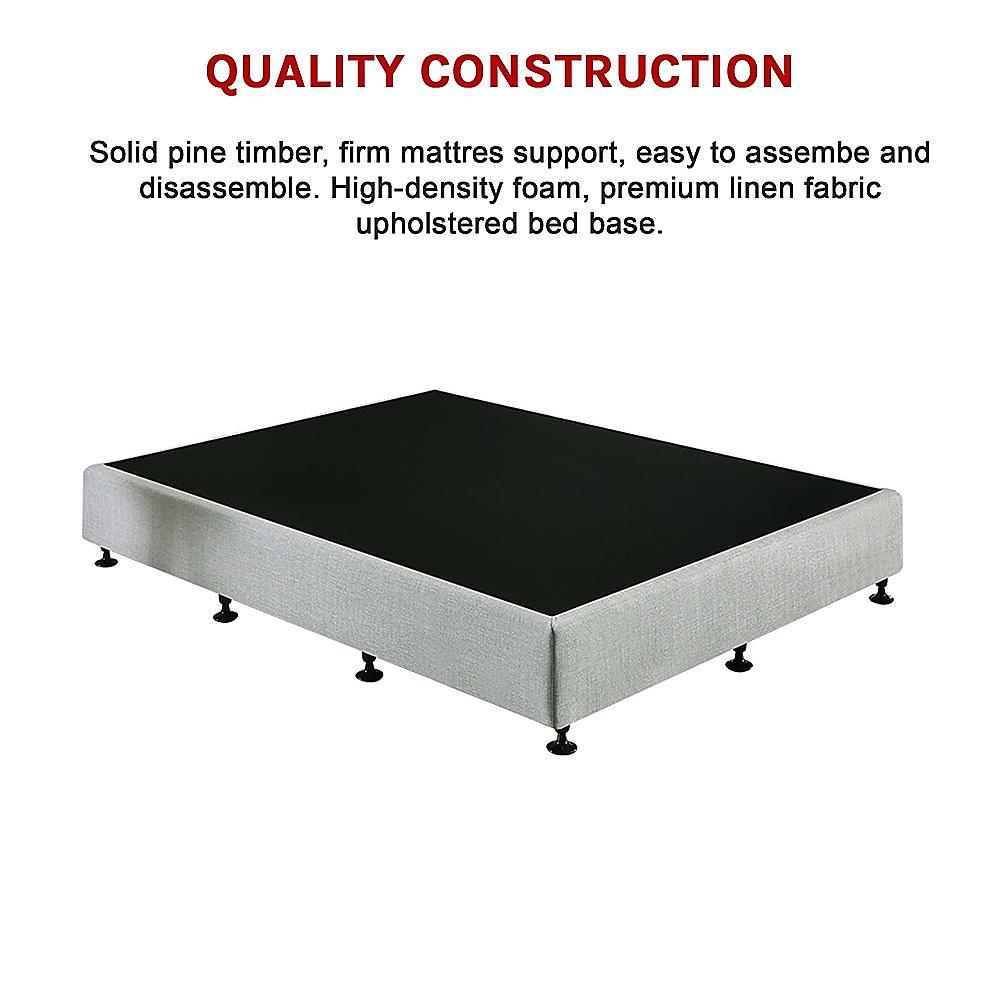 When you need a top-of-the-line bed base that's easy to moveeven upstairs and around tight corners–the Palermo Queen Bed Base is the perfect choice. Crafted from solid pine, its frame is easy to assemble, easy to take apartyet designed to last for a lifetime.Over the frame goes an easy-fit, double-padded Velcro slipcover, which turns it into a solid bed base. High-density foam cushions your body, giving you instant relaxation. Breathable linen fabric in a wide range of colours fits snugly on top, giving it a sleek, contemporary look. Gliders on the feet allow you to move it around the room with ease.