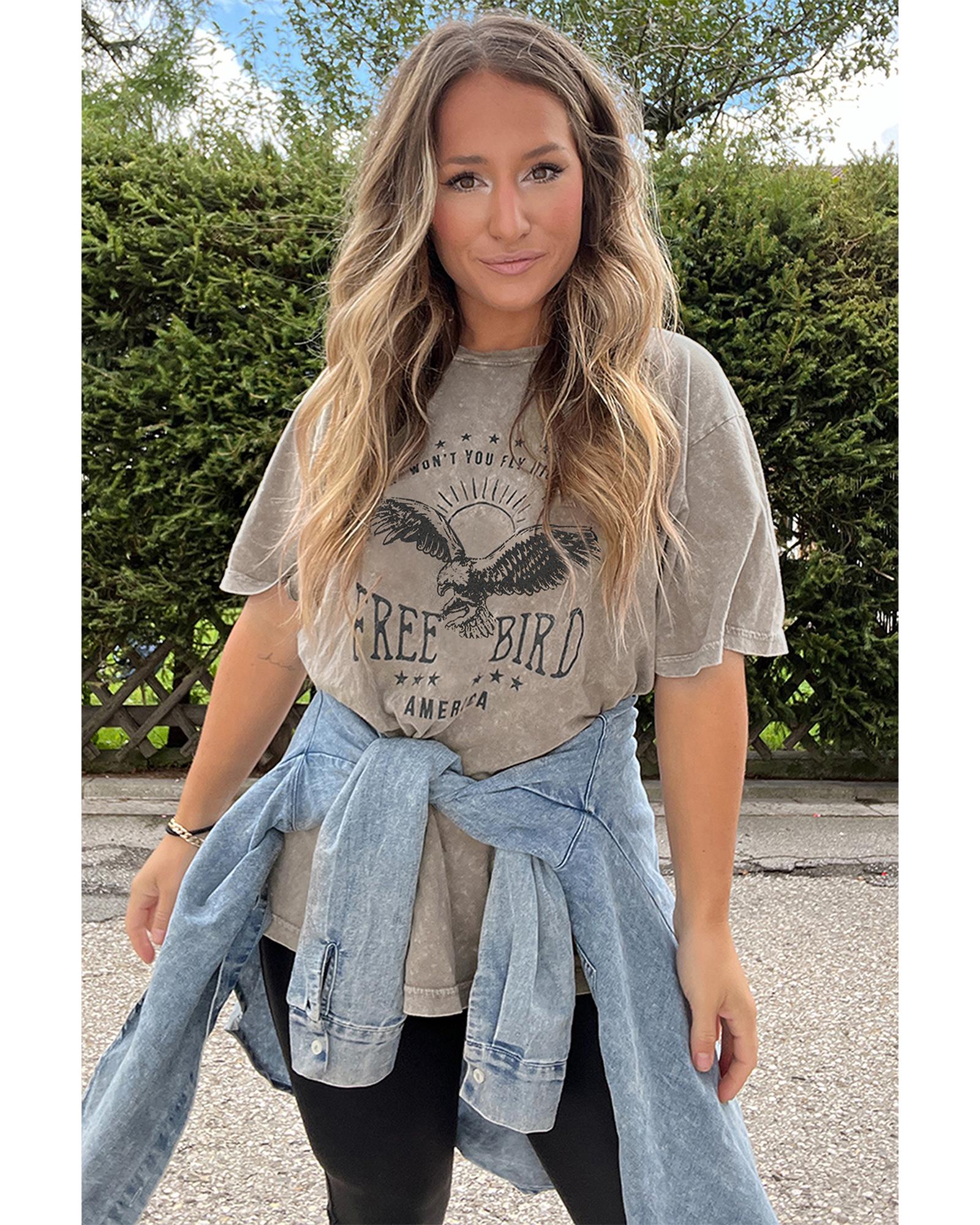 Parchment AMERICA FREE BIRD Vintage Graphic Mineral Washed Tee – S