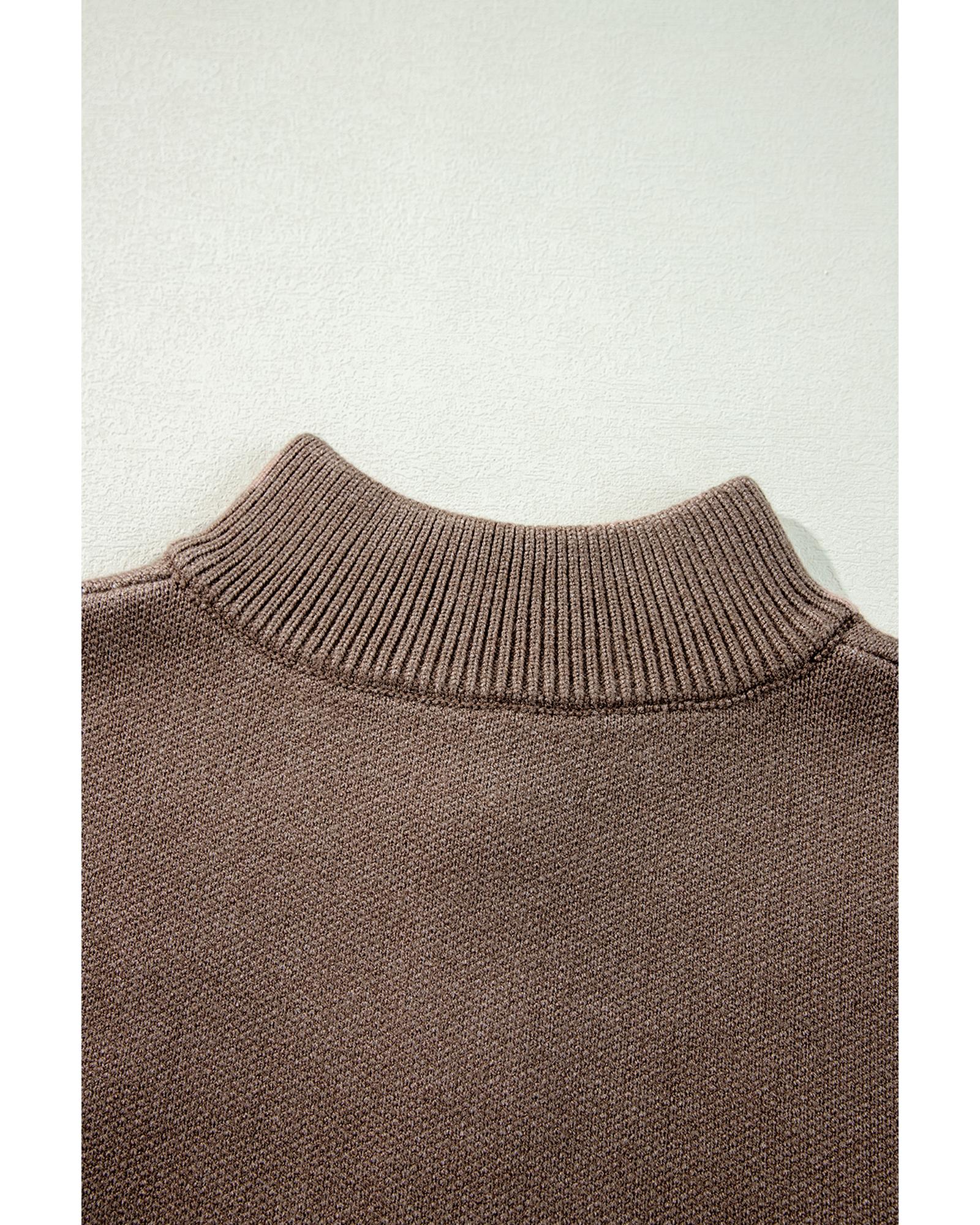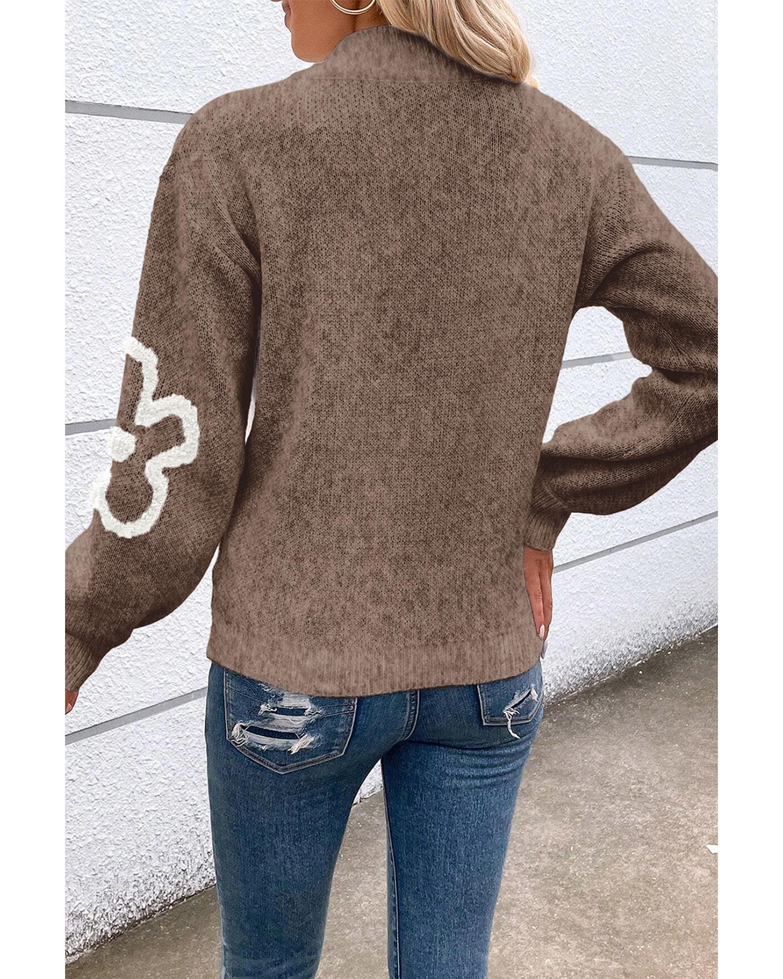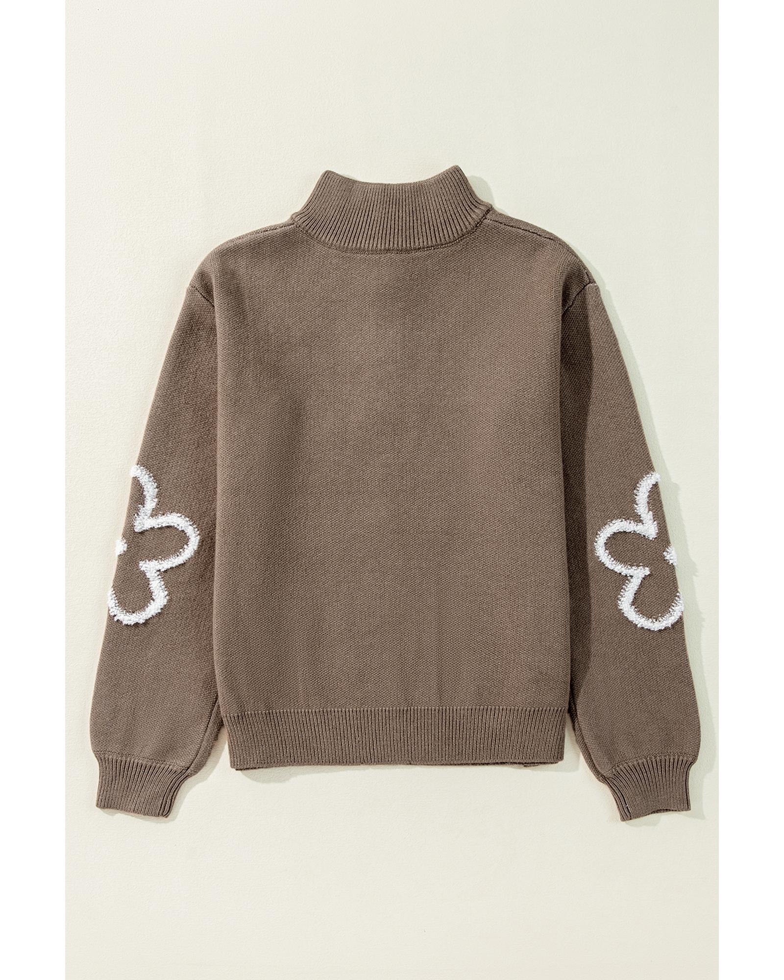 Parchment Contrast Flower Half Zipper Stand Neck Sweater – M