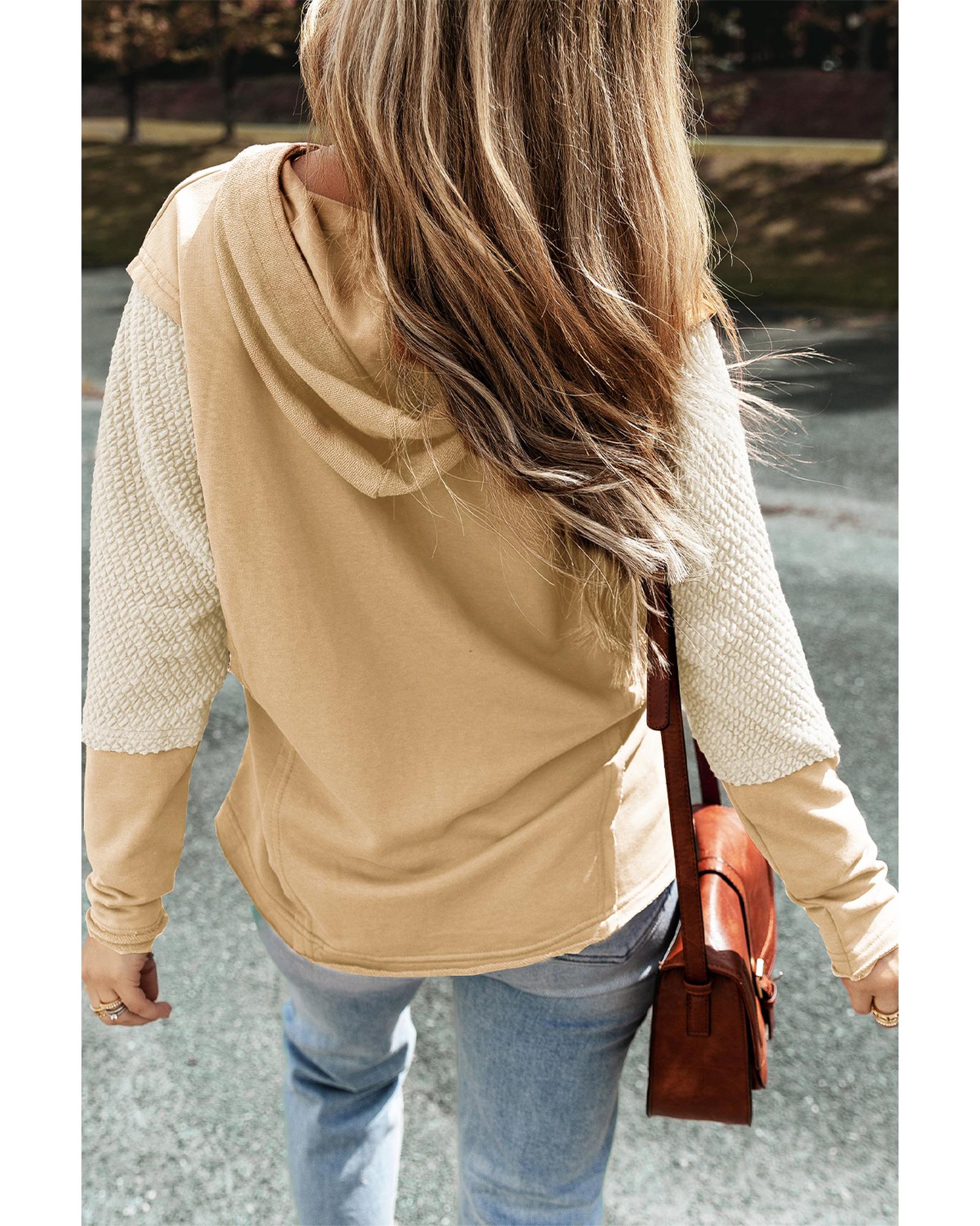 - Parchment Contrast Sleeves Patchwork Colorblock Hoodie