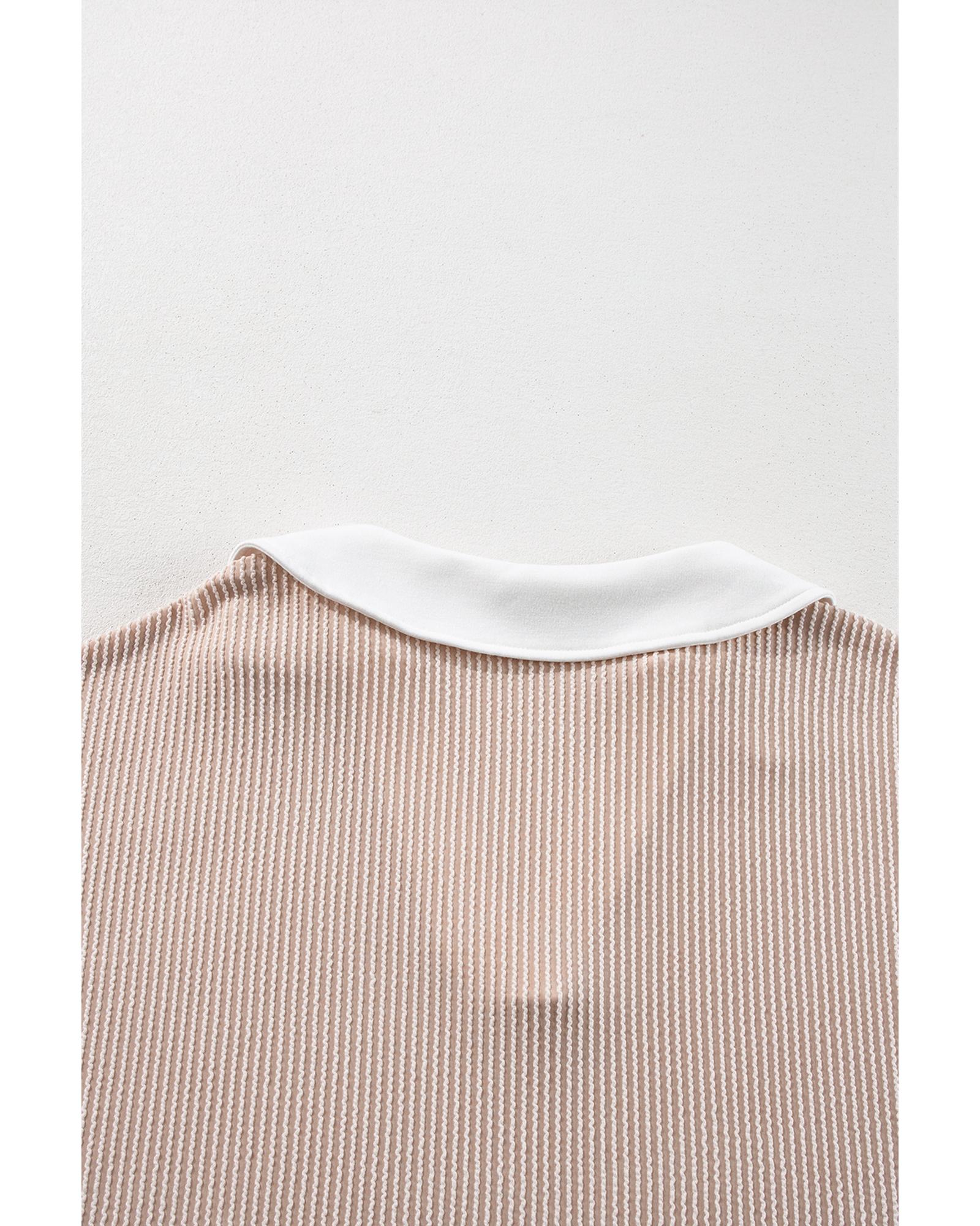 Parchment Corded Colorblock Long Sleeve Slit V Neck Plus Top - 3X
