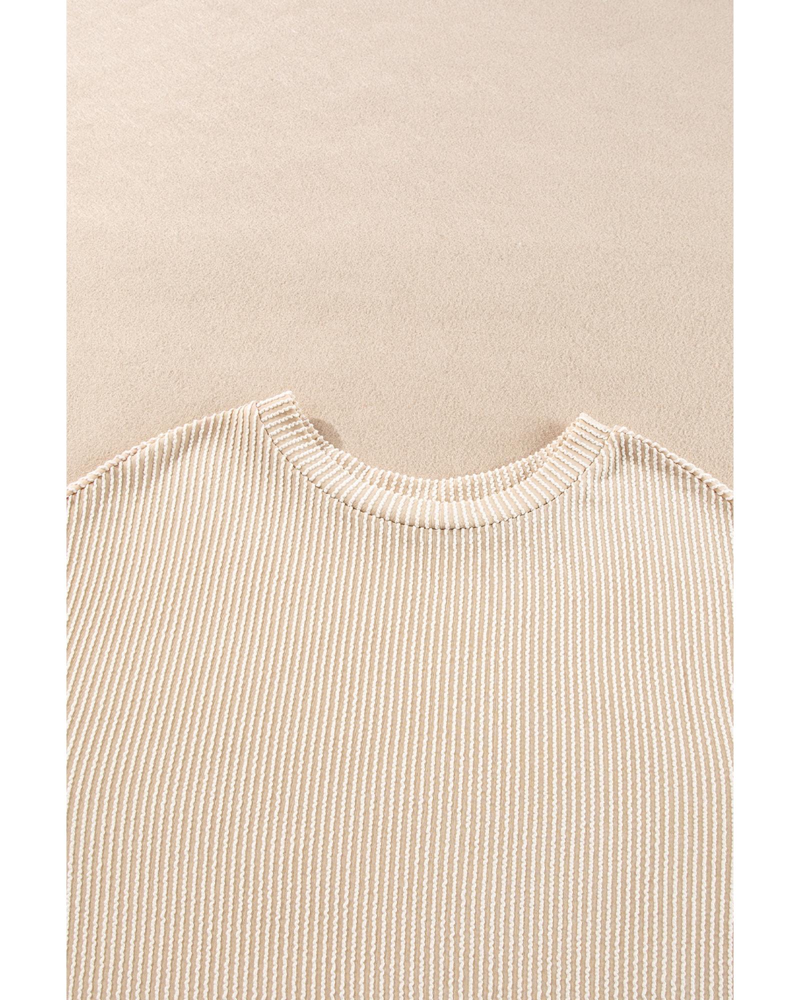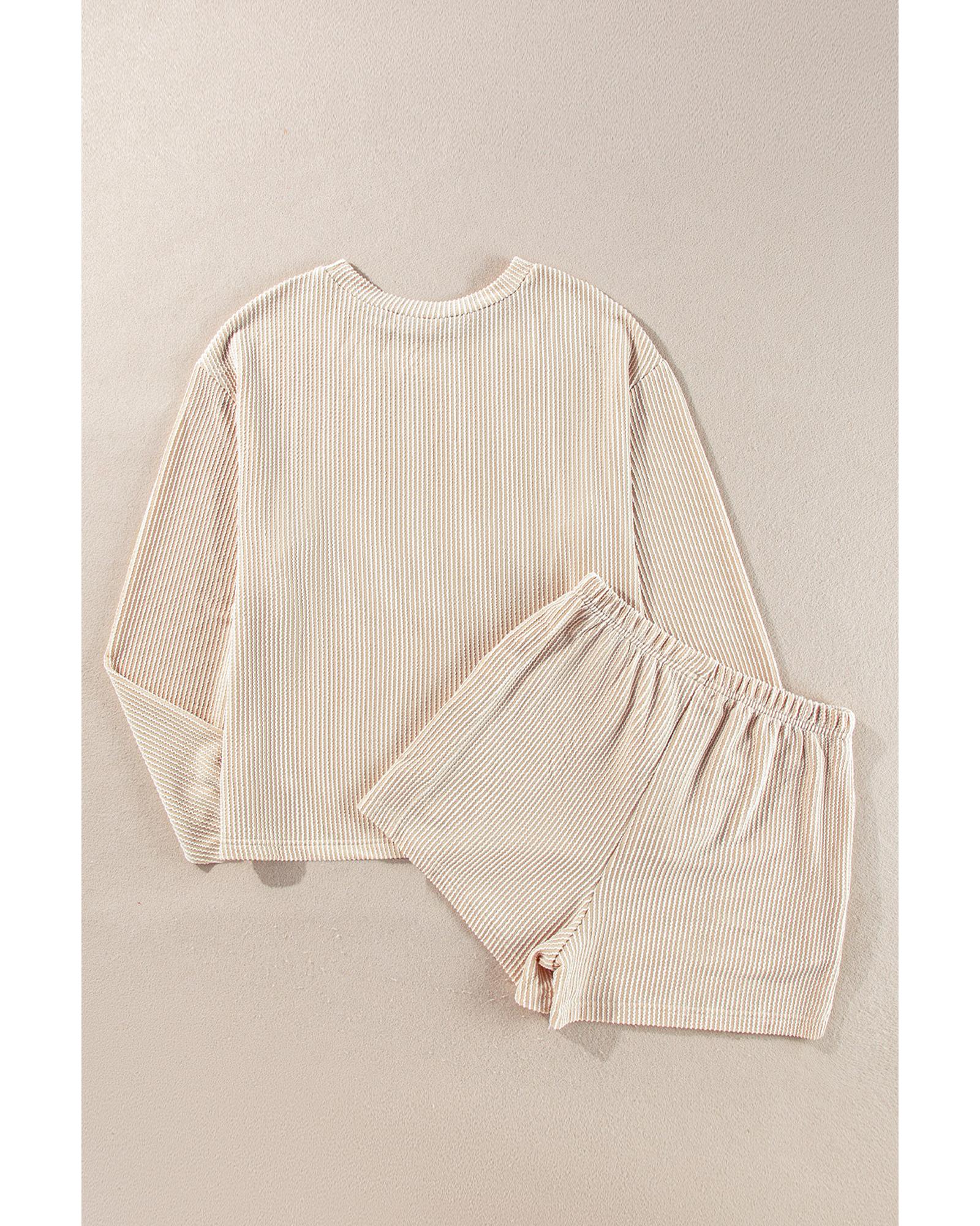 Parchment Corded Knit Long Sleeve Top and High Waist Shorts Set – XL
