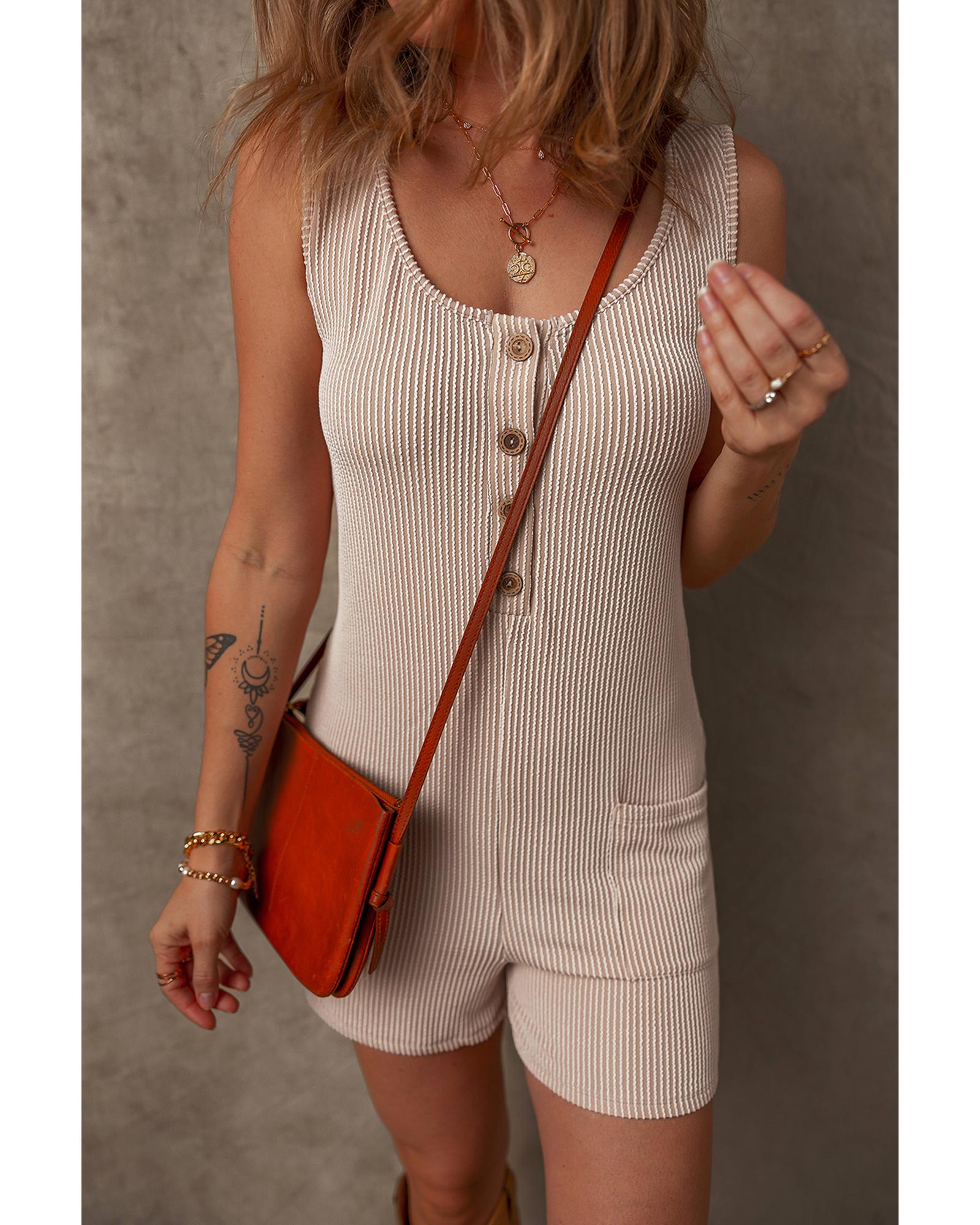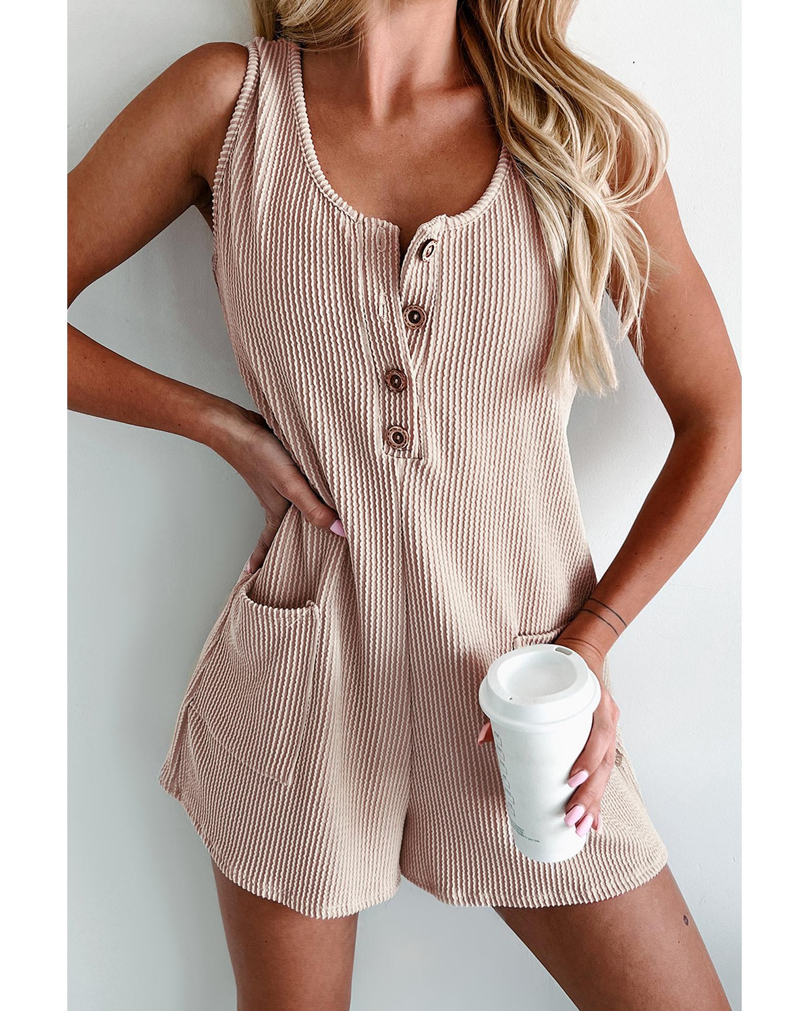 Parchment Corded Knit Side Pockets Buttoned Sleeveless Romper – M