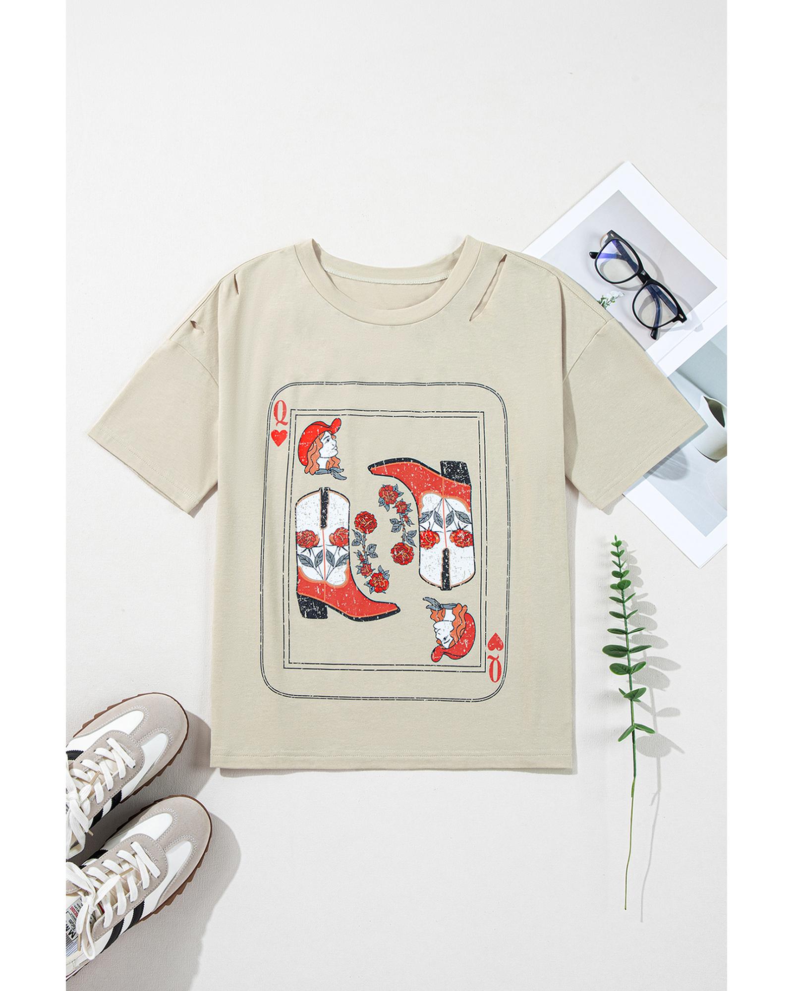 White Rhinestone Decor Bolt Graphic Ripped Western Tee - M