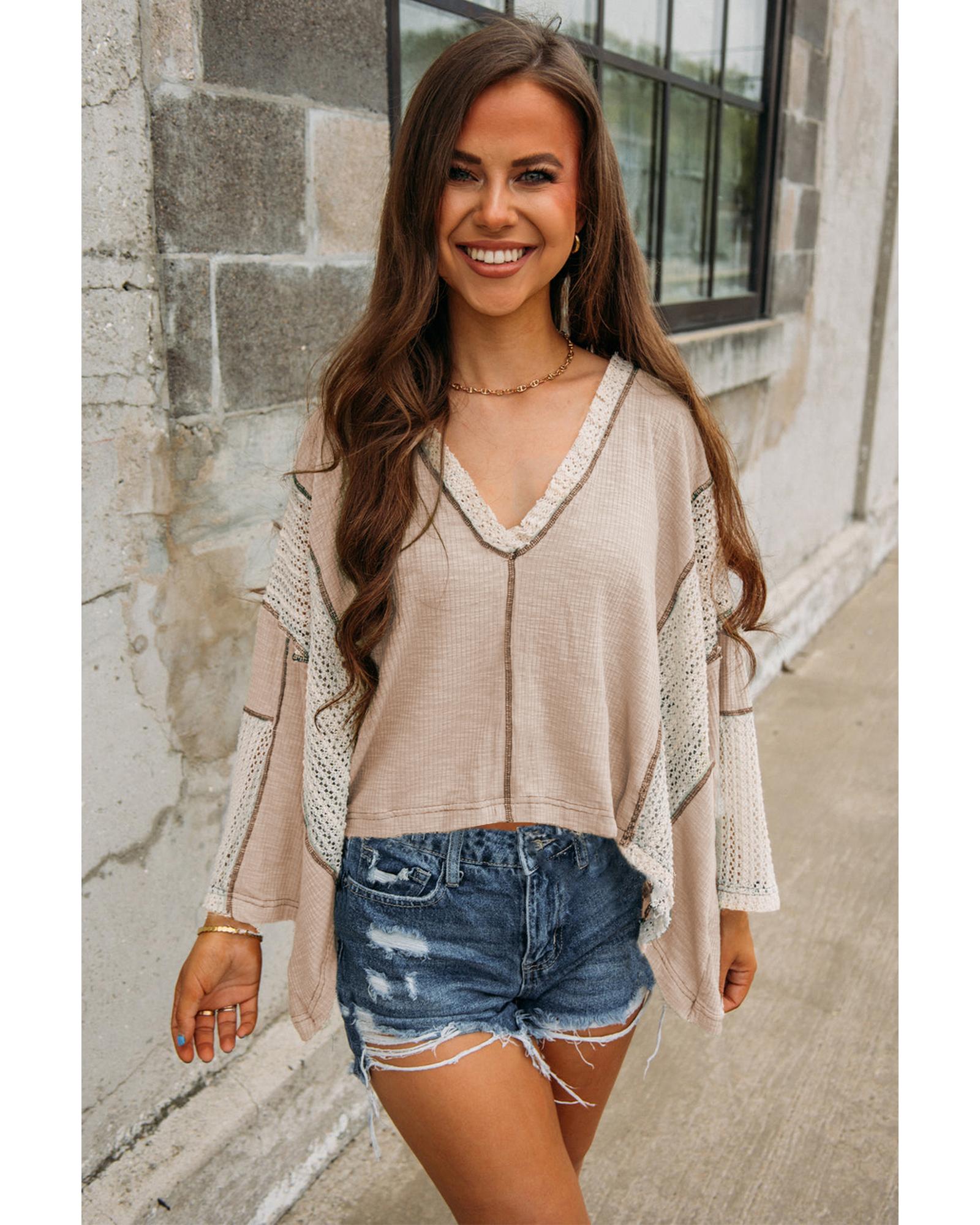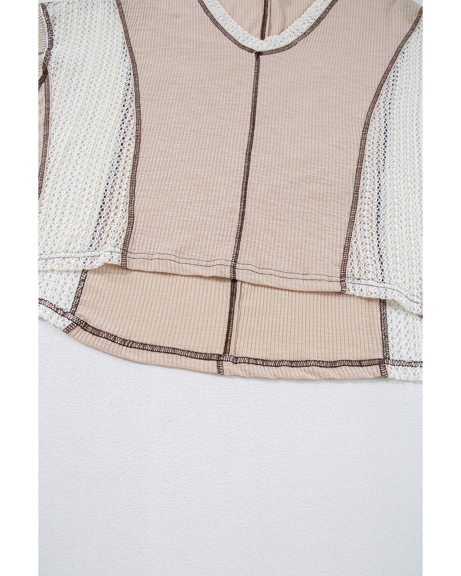 Parchment Crochet Detail Exposed Seam High Low Loose Top – M