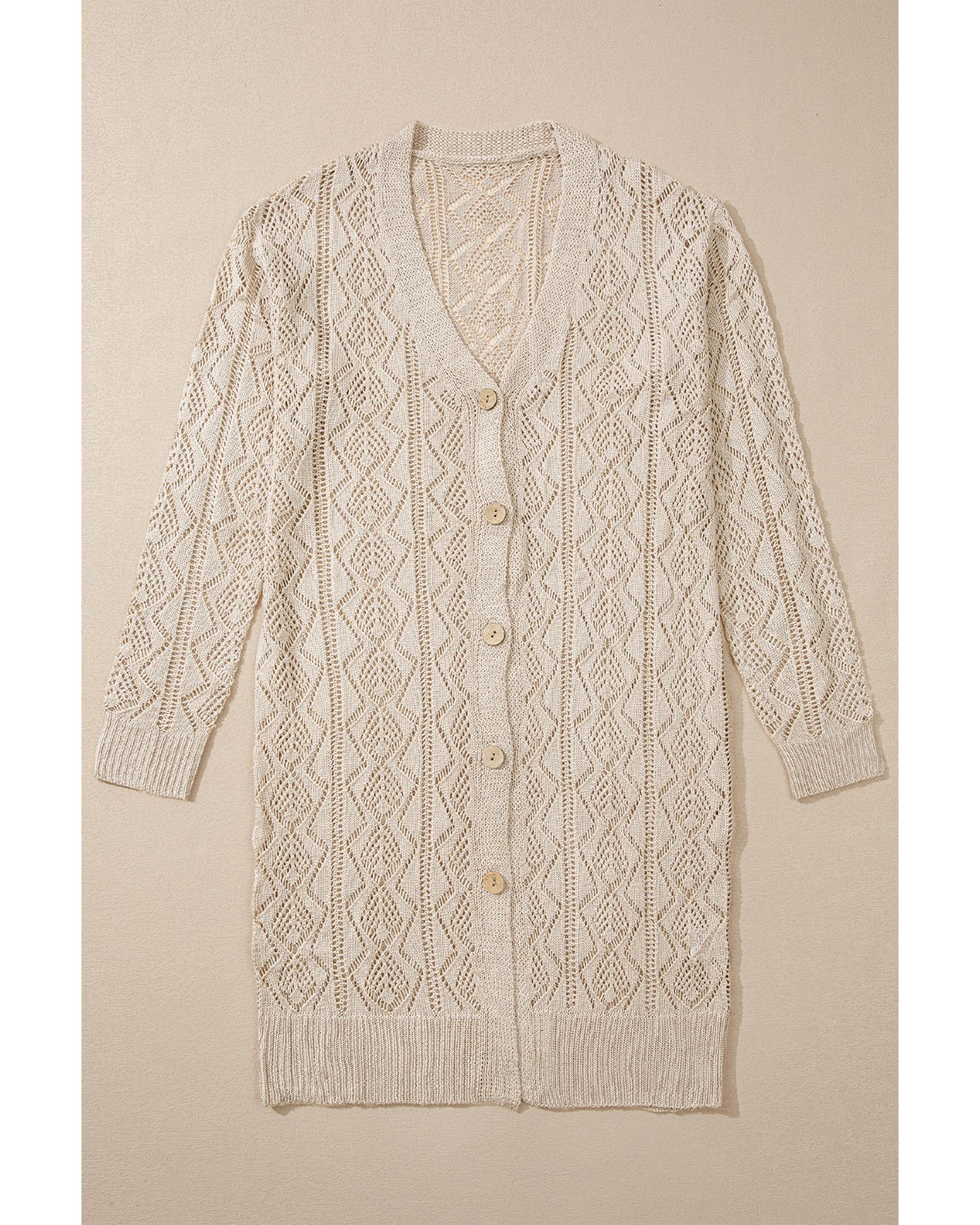 Parchment Hollow Out Buttons Front Long Cardigan – L