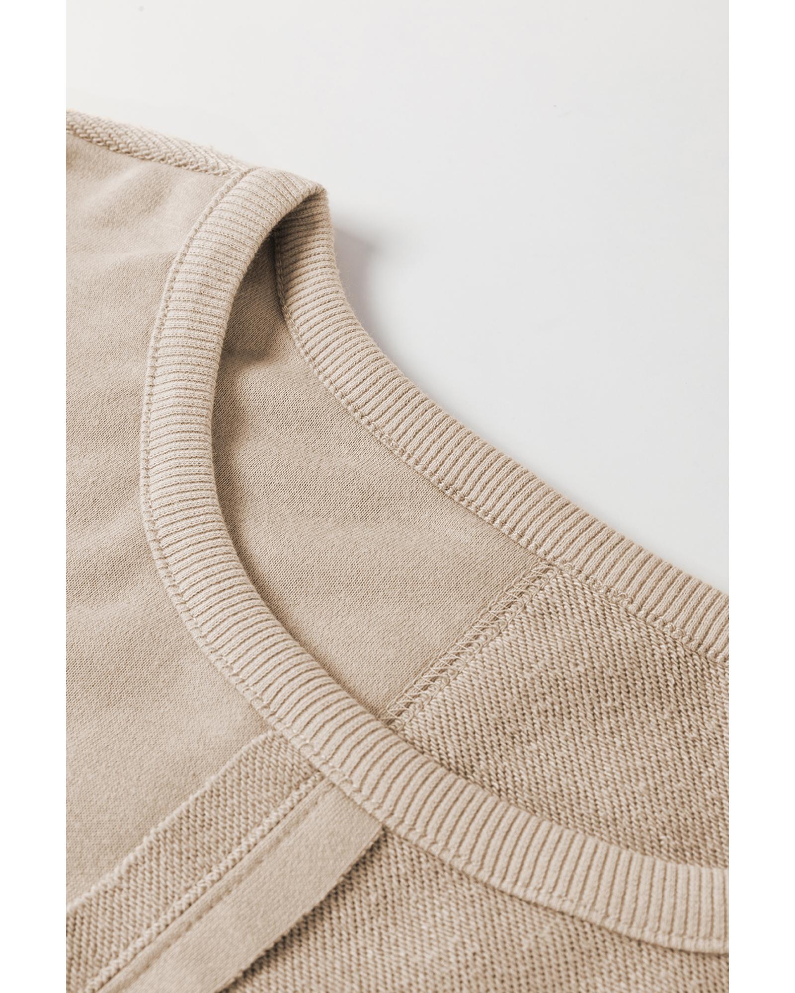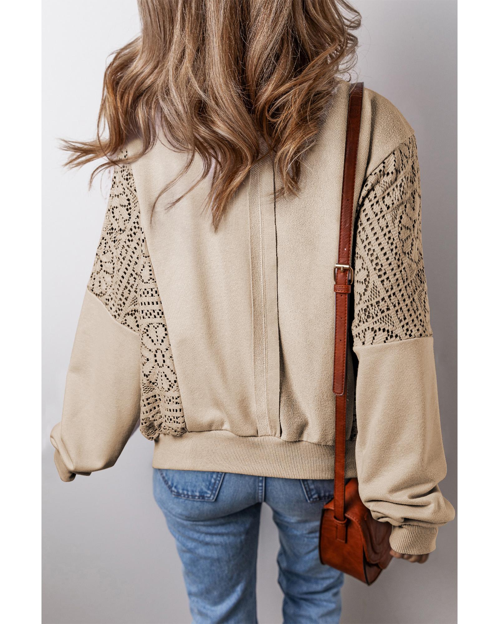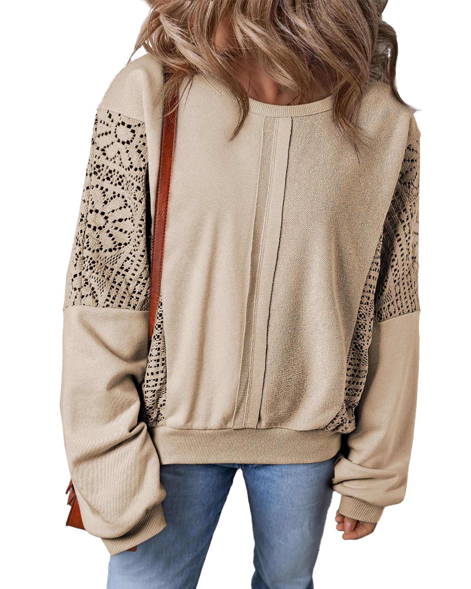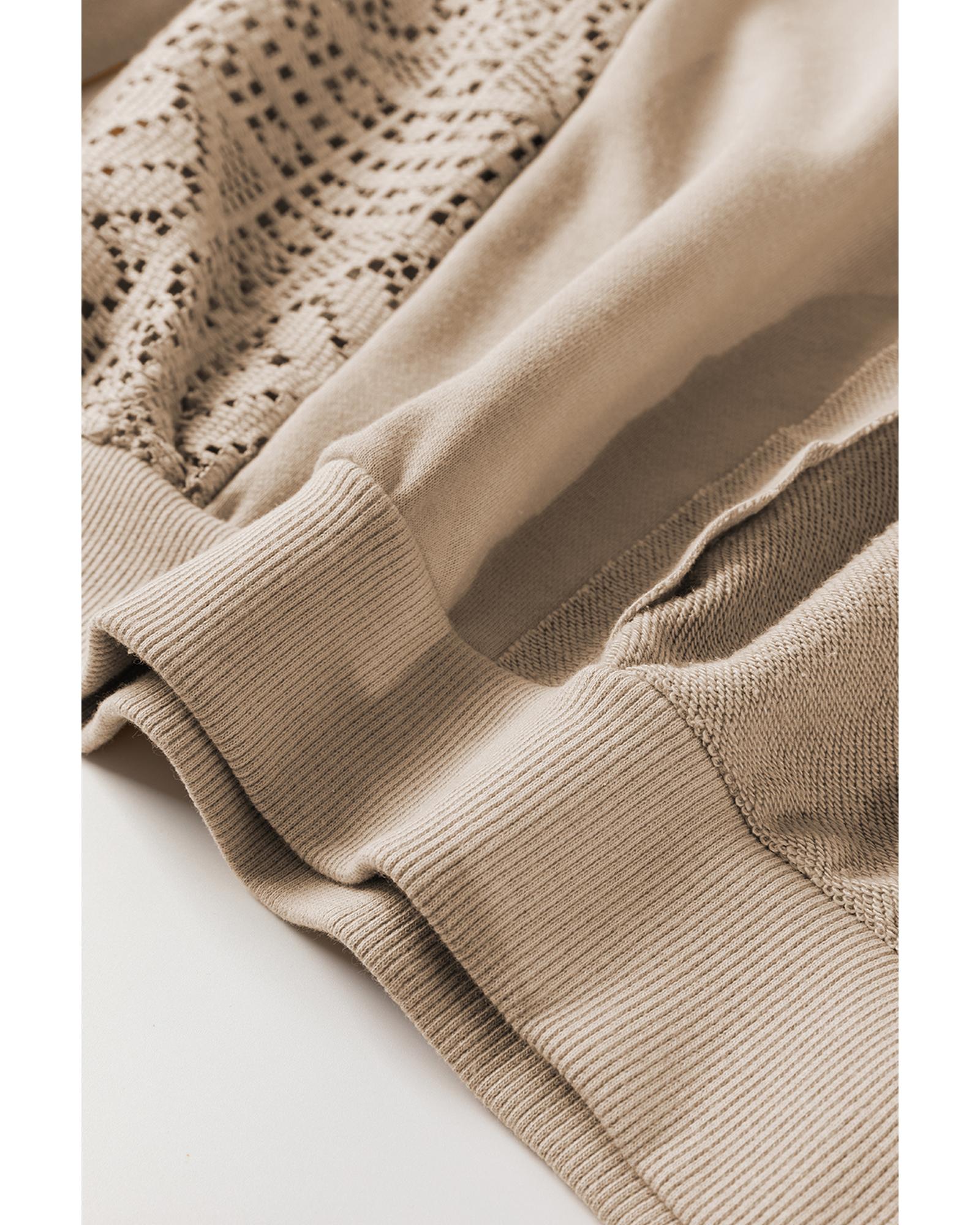• Parchment Knit Crochet Exposed Seam Ribbed Trim Sweatshirt