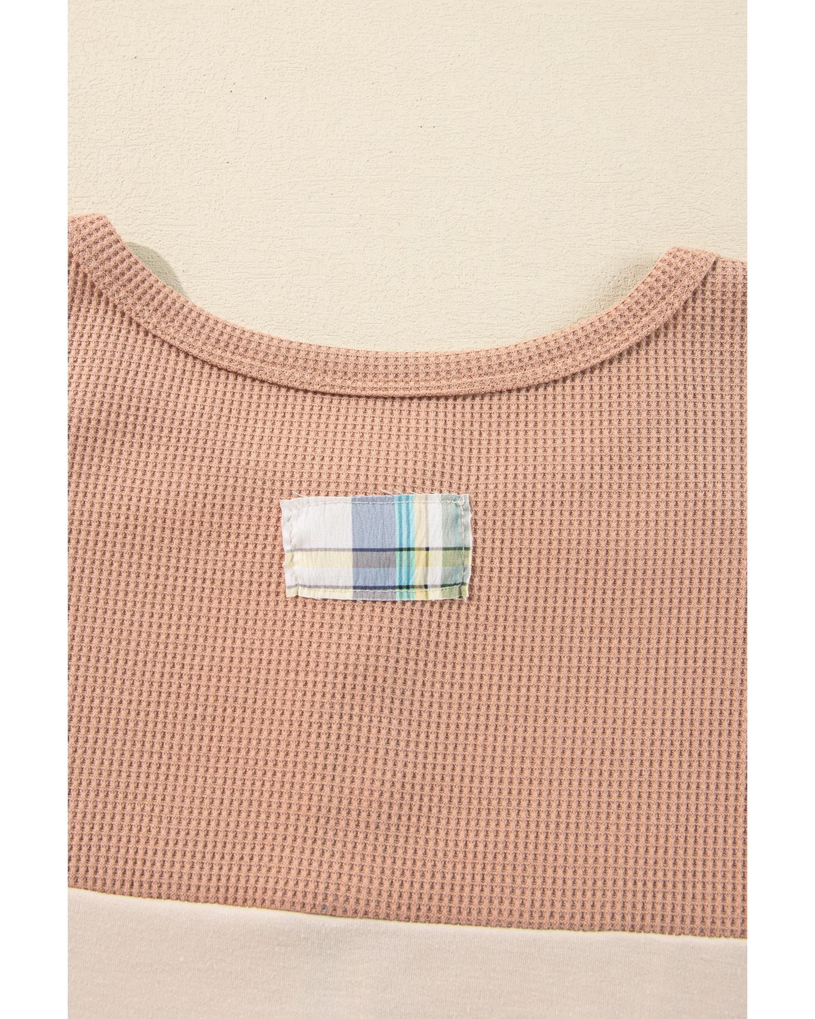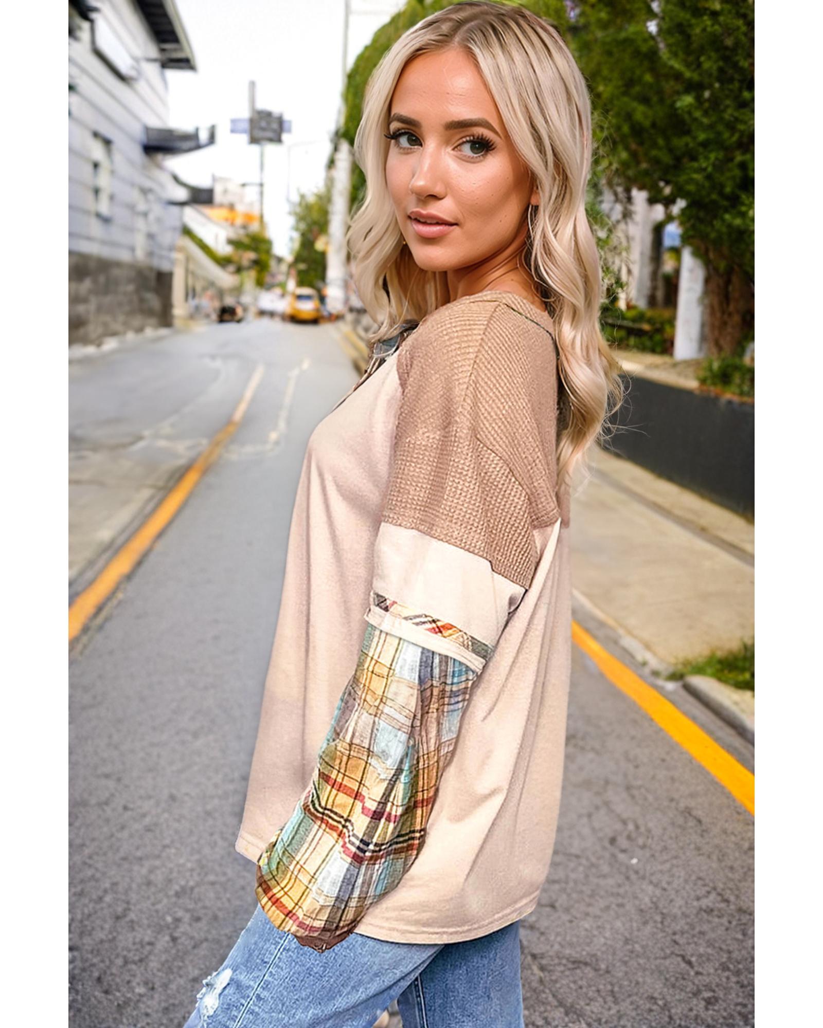 Parchment Plus Size Plaid Patchwork Layered Henley Top – 2X