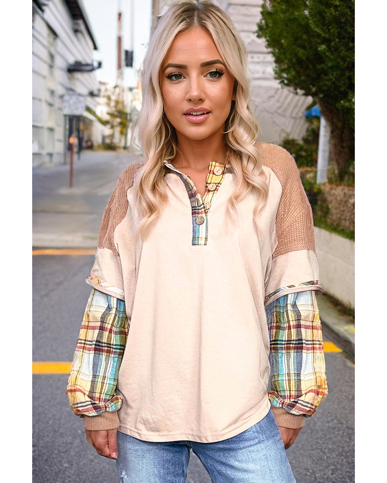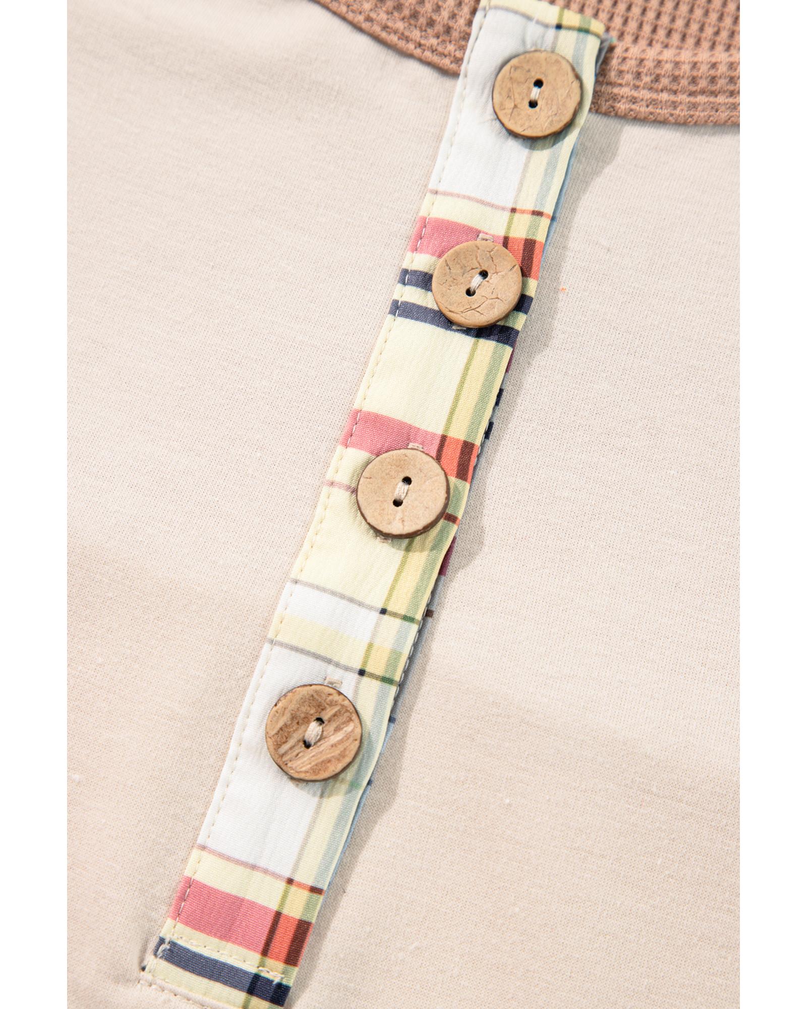 Parchment Plus Size Plaid Patchwork Layered Henley Top – 4X