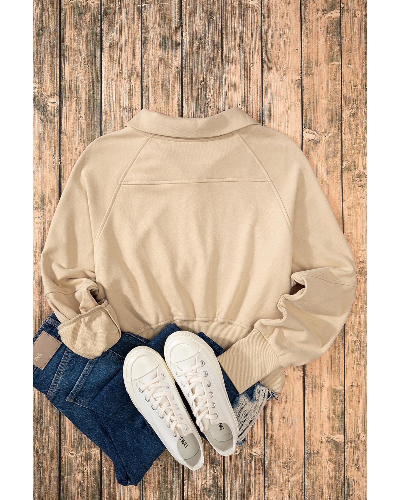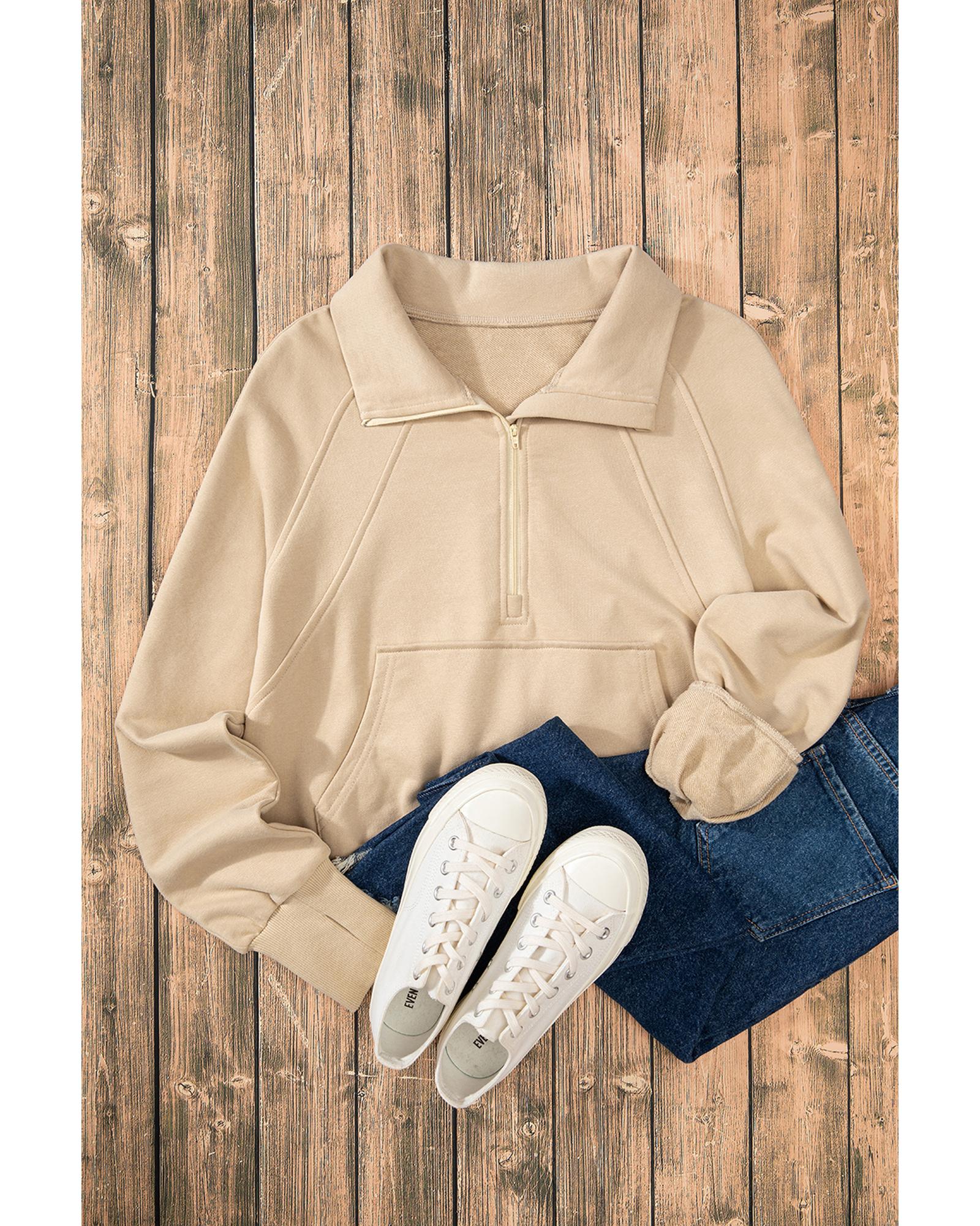 Parchment Quarter Zip Stand Neck Kangaroo Pocket Sweatshirt – L