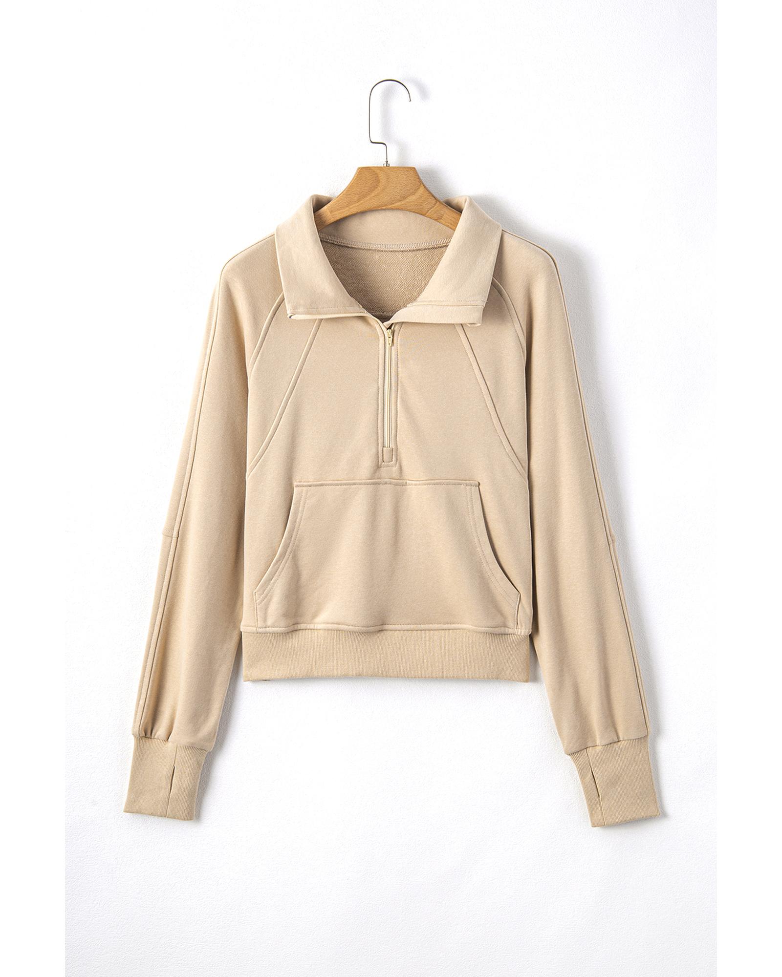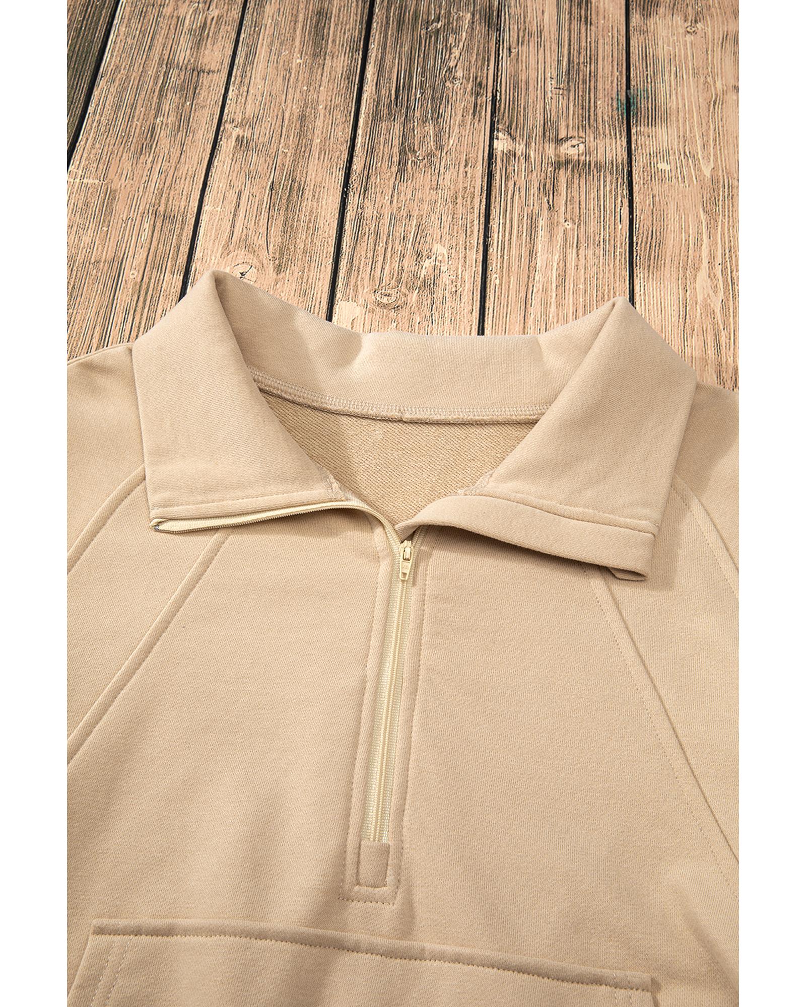 Parchment Quarter Zip Stand Neck Kangaroo Pocket Sweatshirt – S