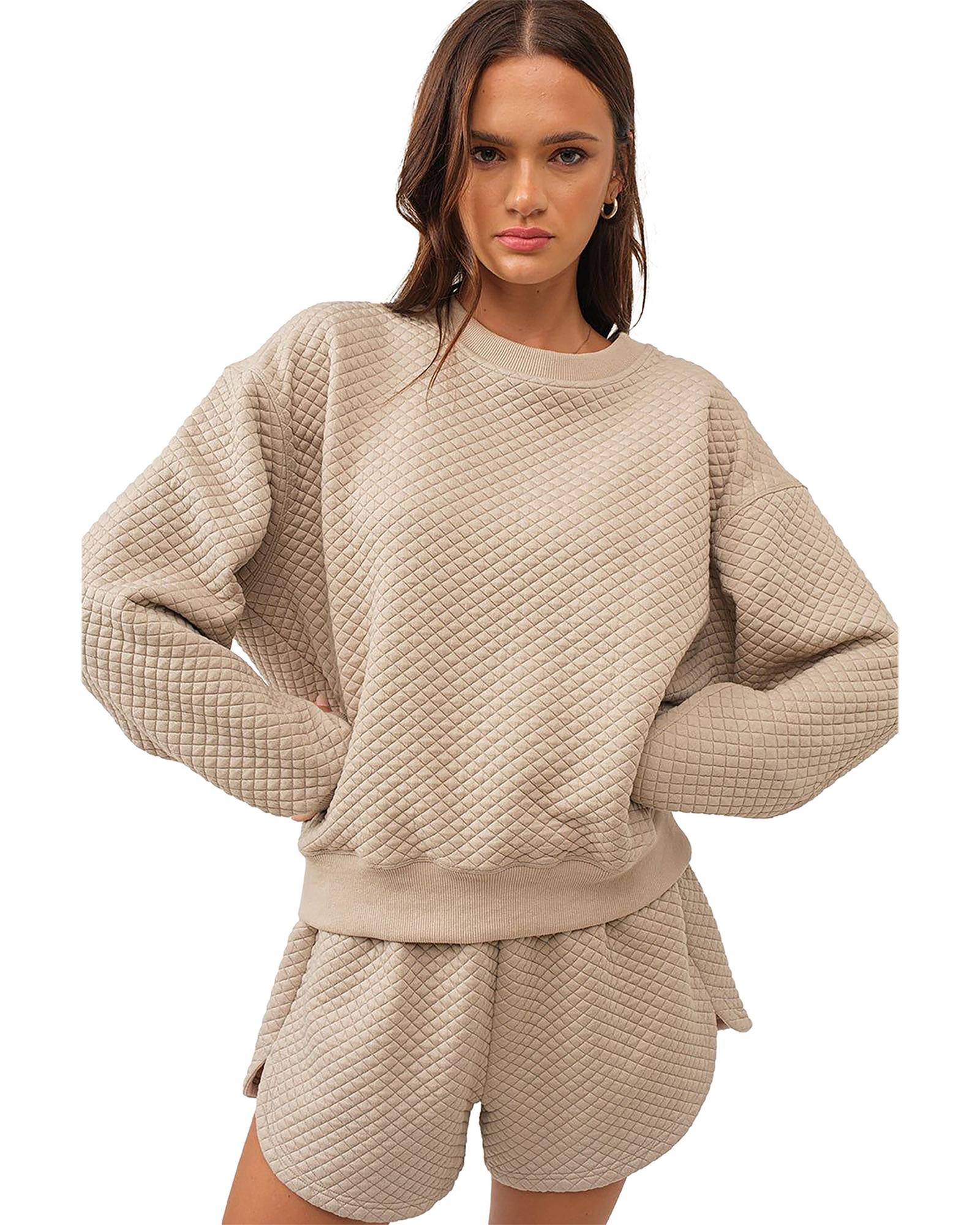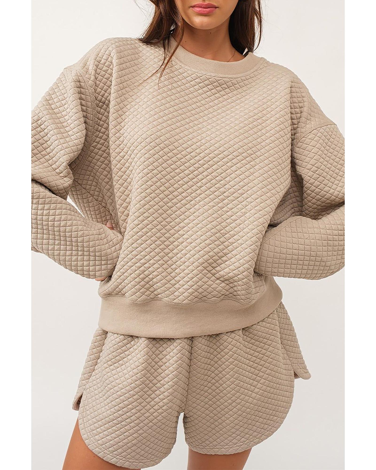 Parchment Solid Color Quilted Long Sleeve Top and Shorts Set – XL