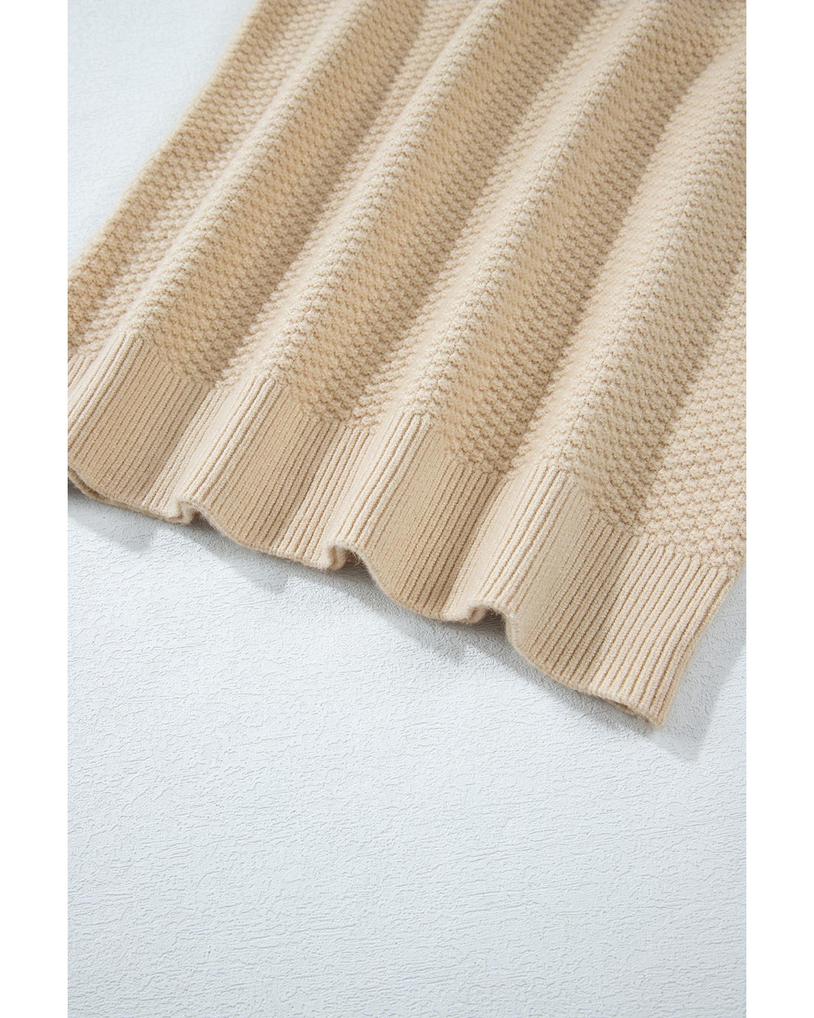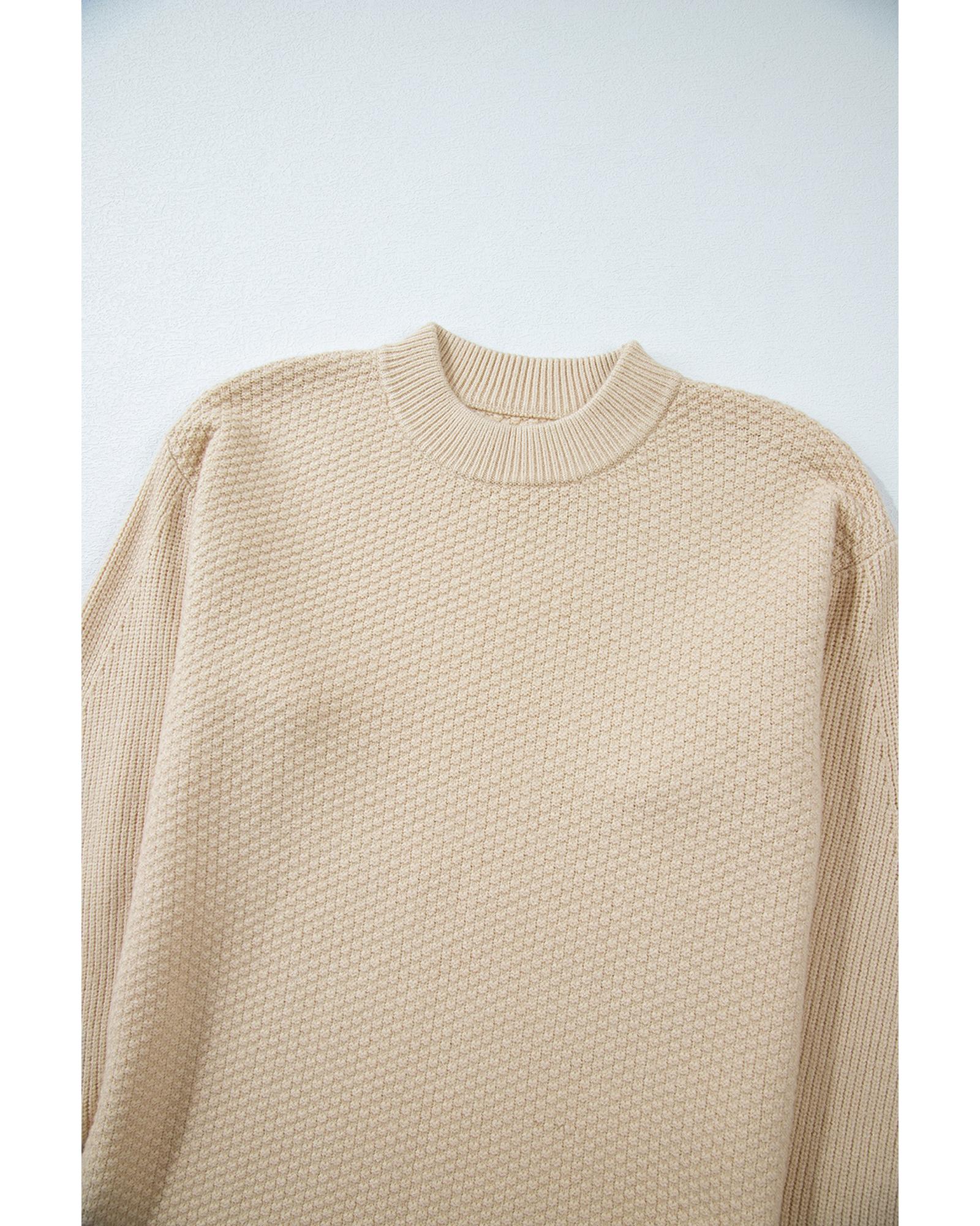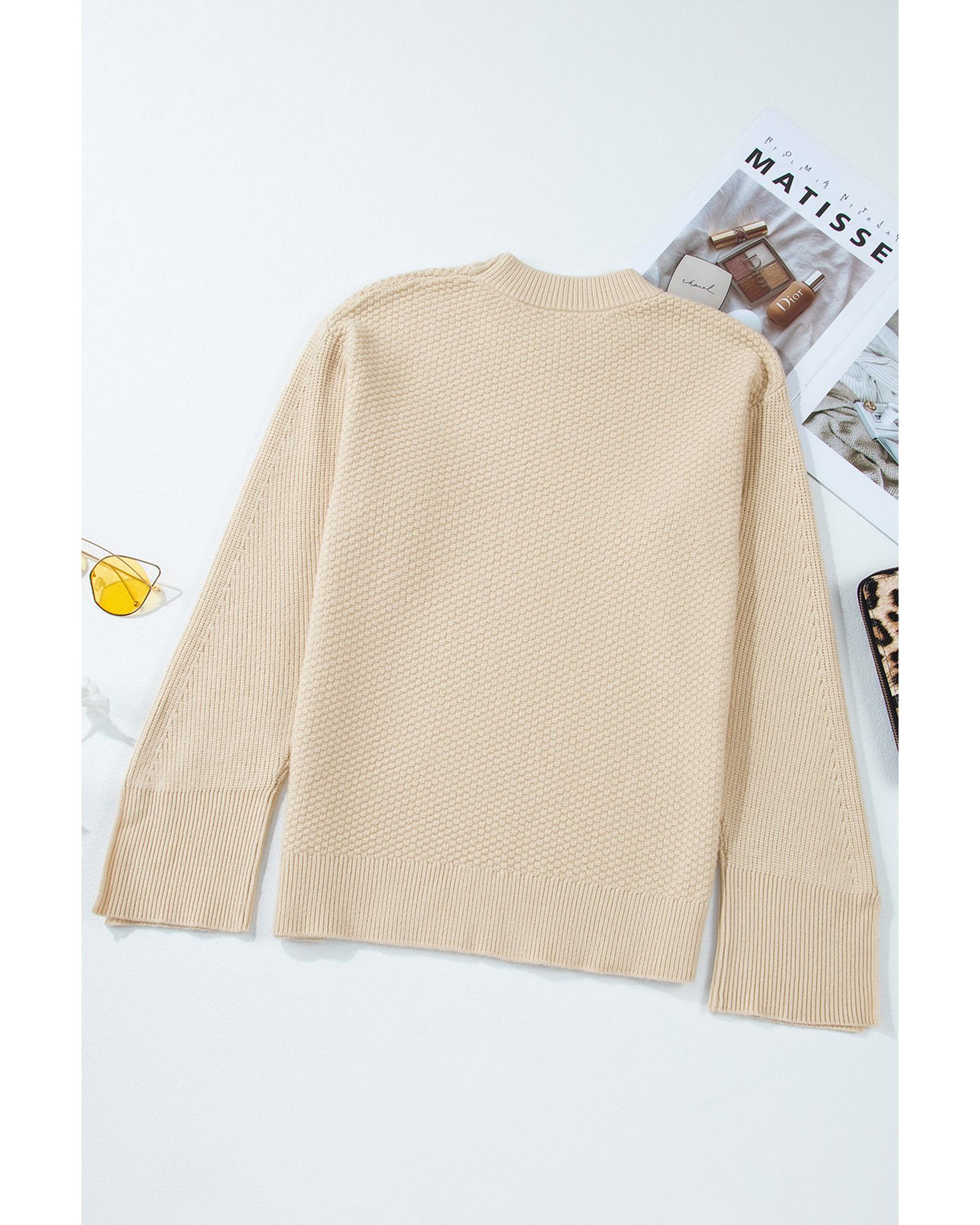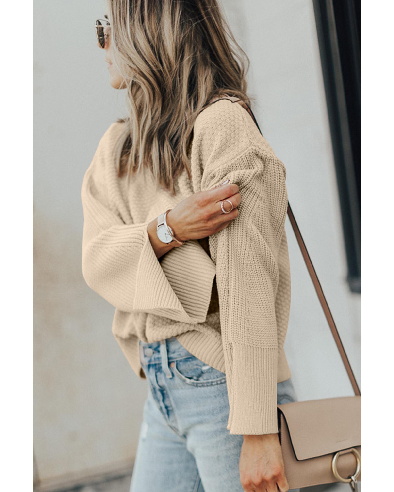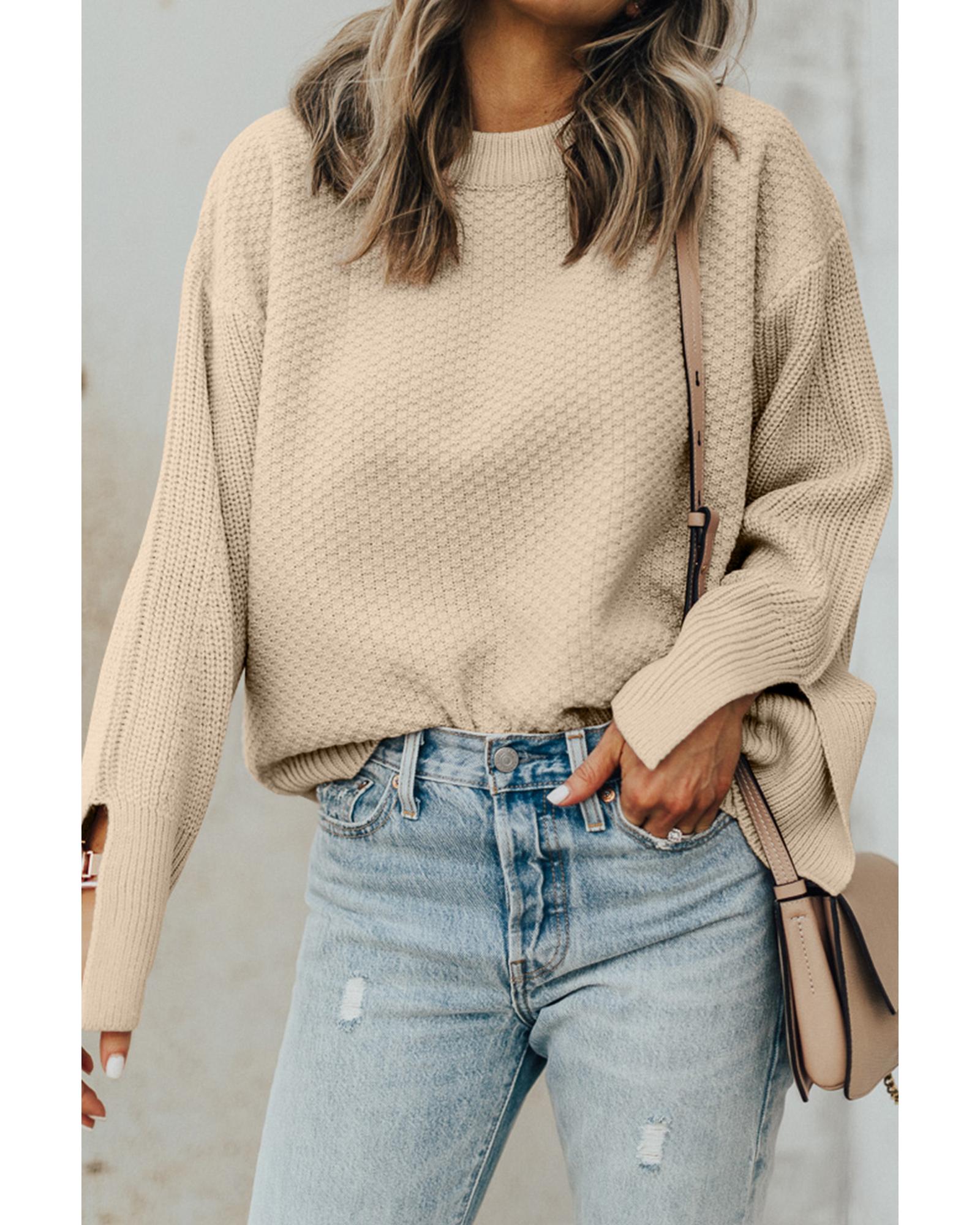 - Parchment Solid Textured Knit Split Cuff Drop Shoulder Loose Sweater