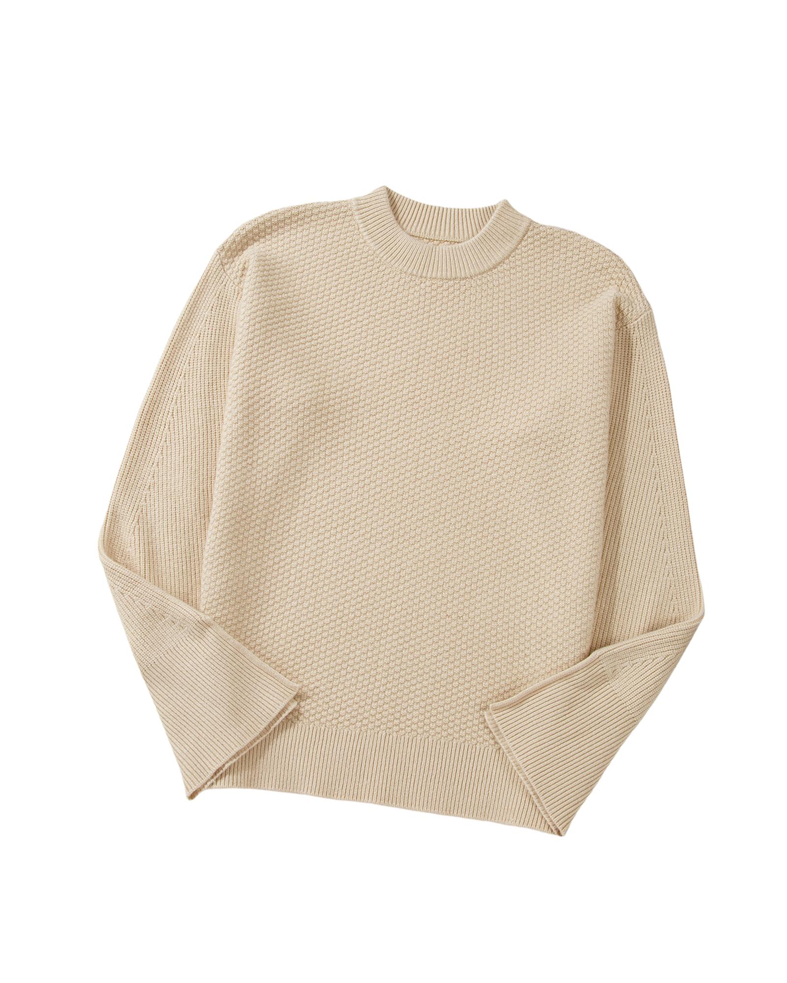 Parchment Solid Textured Knit Split Cuff Drop Shoulder Loose Sweater – M