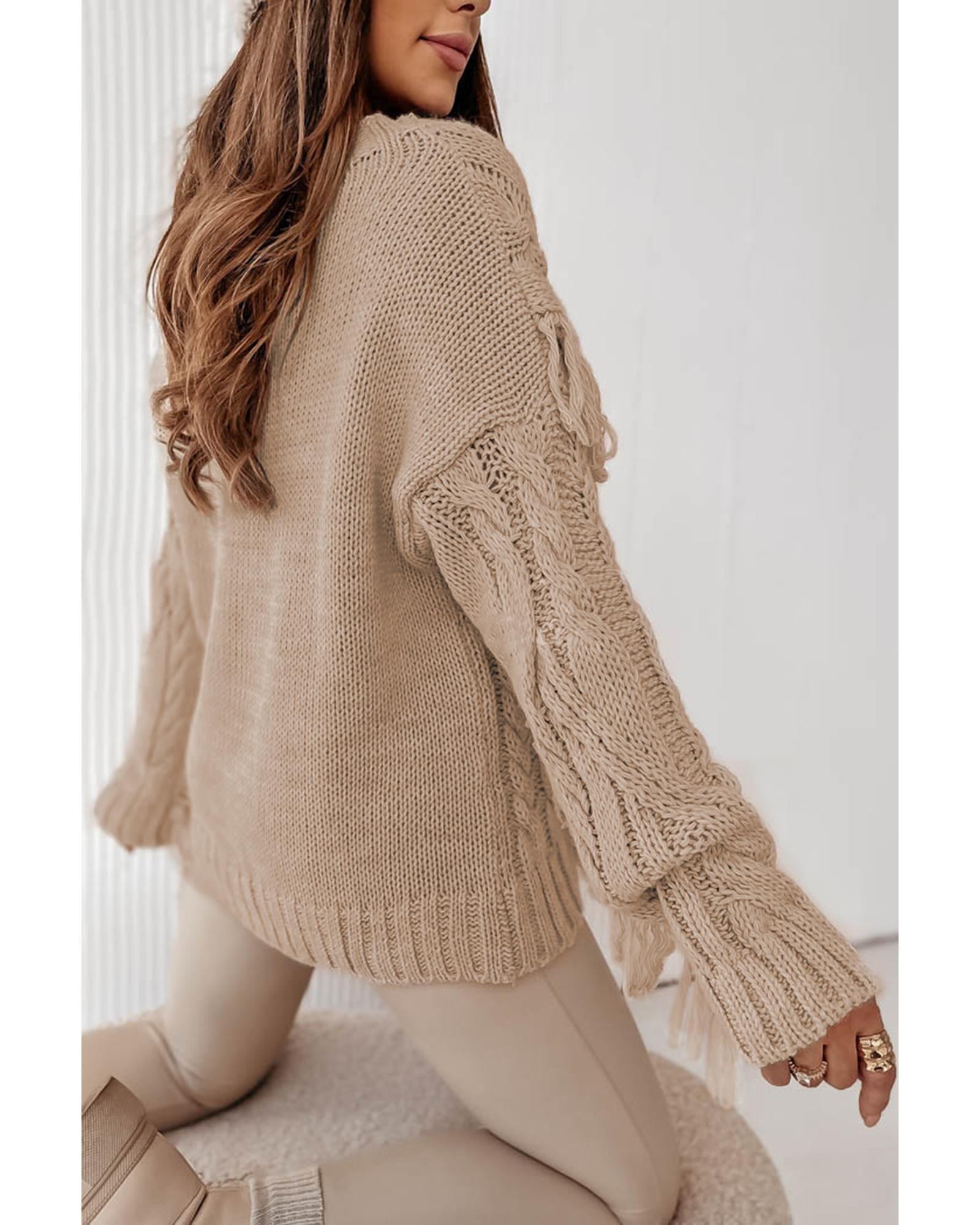 Pink Crochet Knit Drop Shoulder Sweater - M