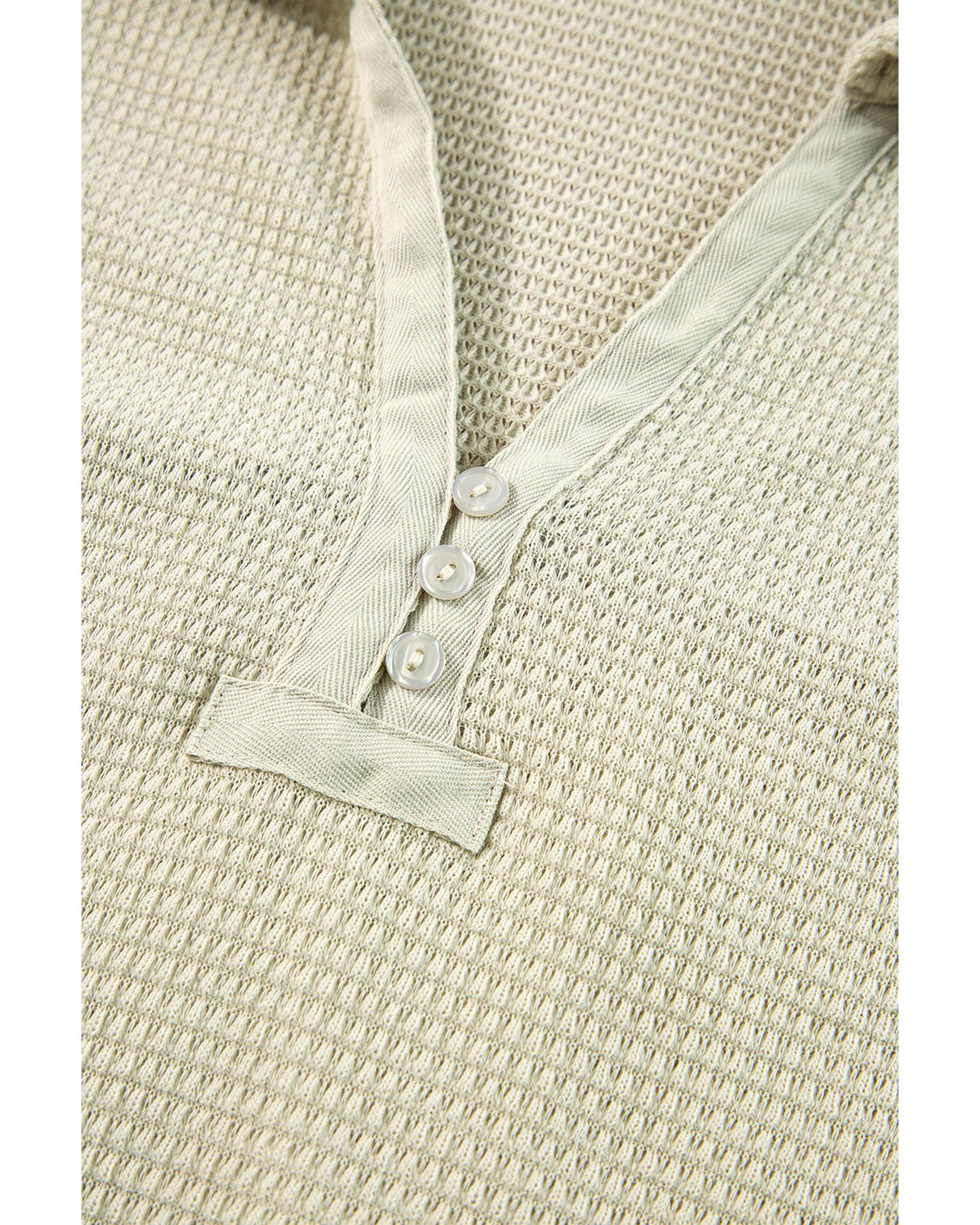 - Pullover top features a stylish buttoned placket