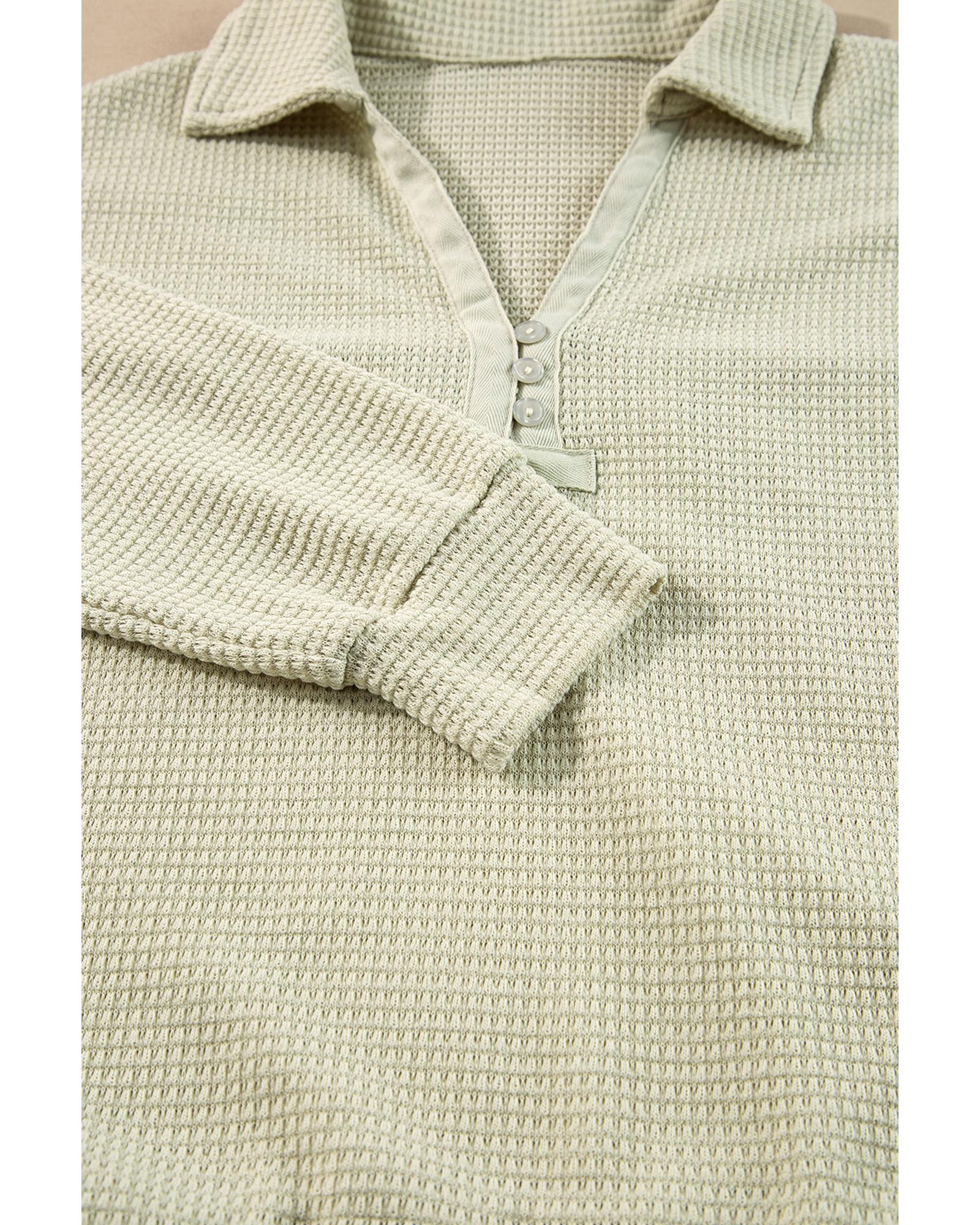 Parchment Textured Buttoned Long Sleeve Top 2 Piece Shorts Set – M