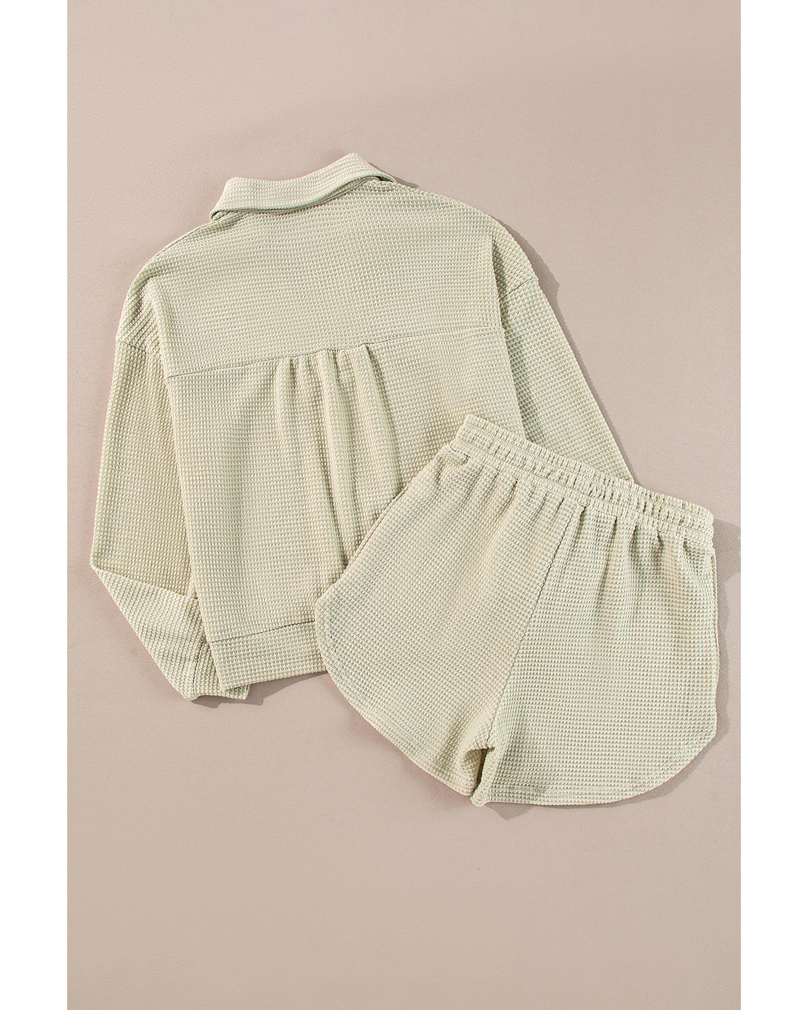 Parchment Textured Buttoned Long Sleeve Top 2 Piece Shorts Set – XL