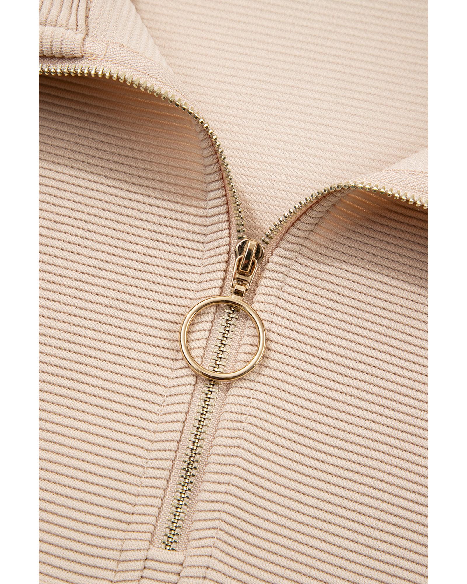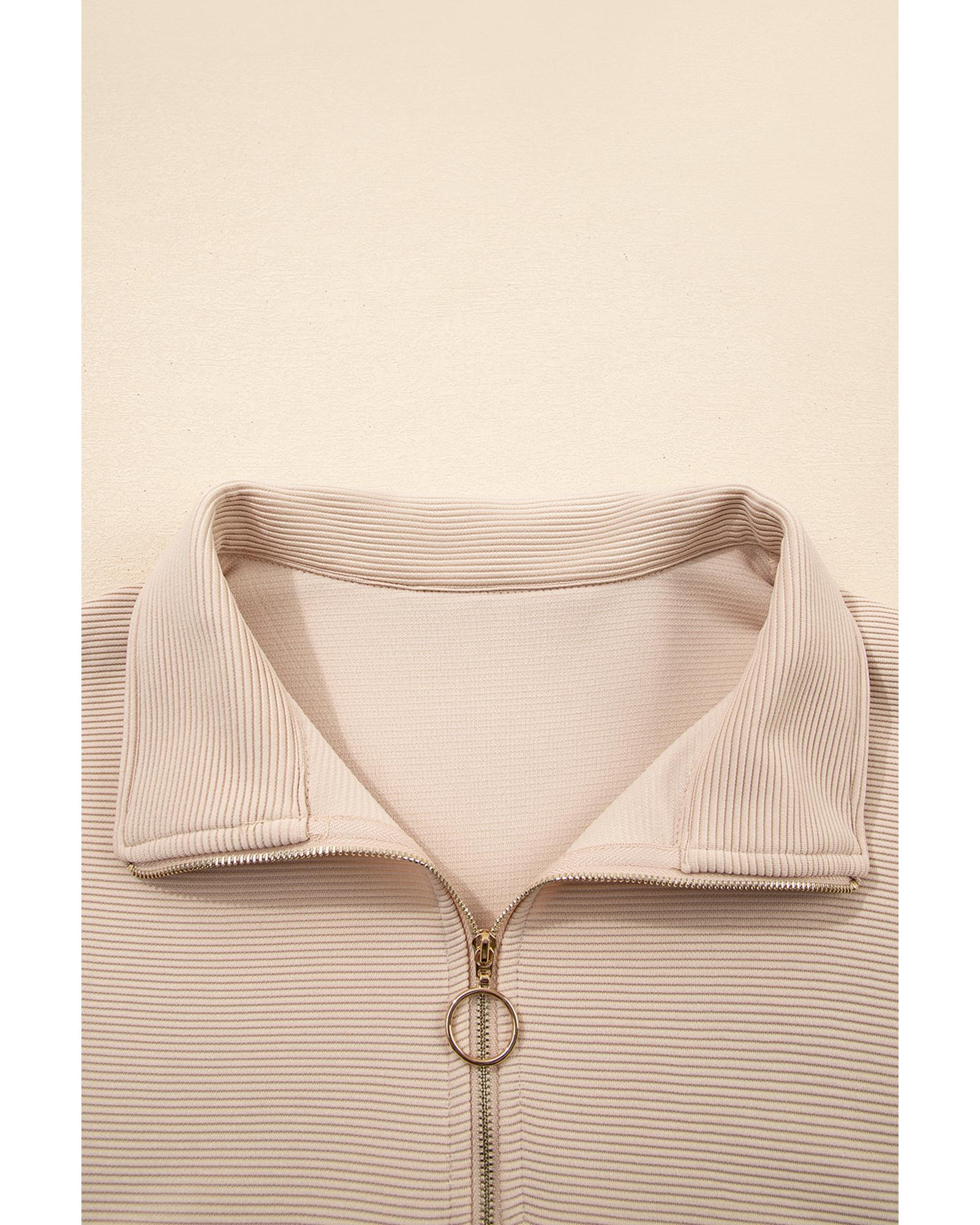 Parchment Textured Half Zip Kangaroo Pocket Top Drawstring Shorts Set – L