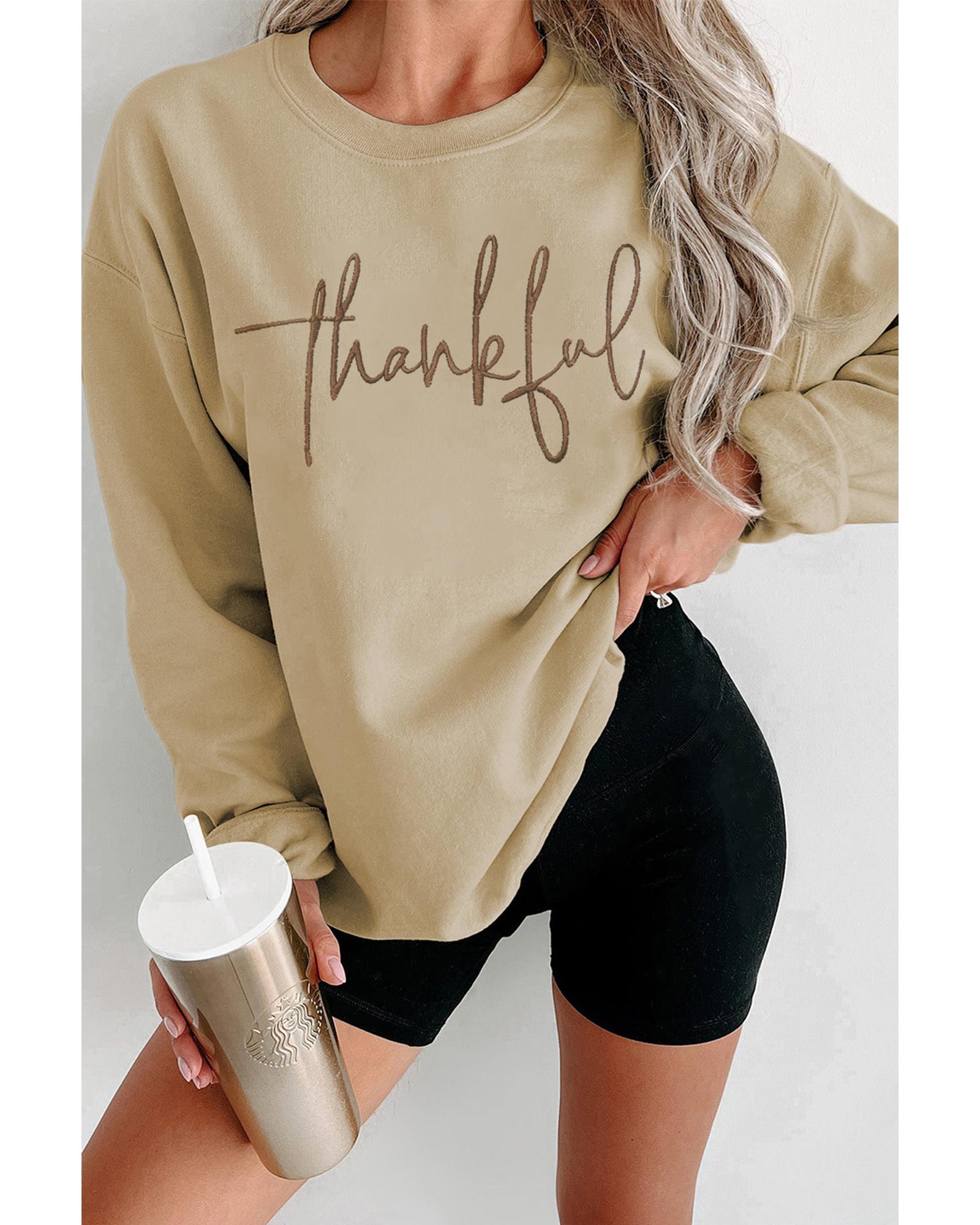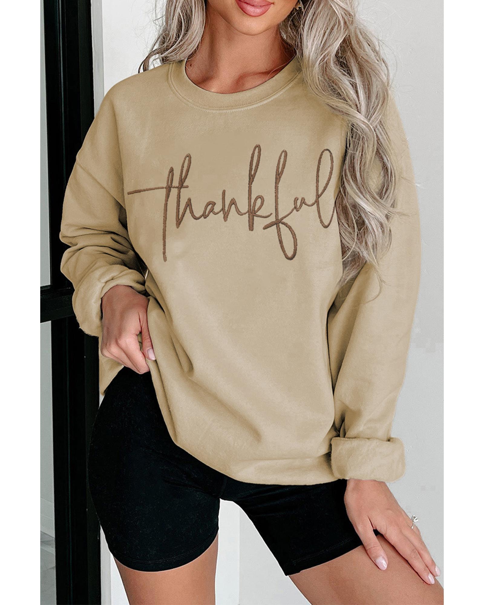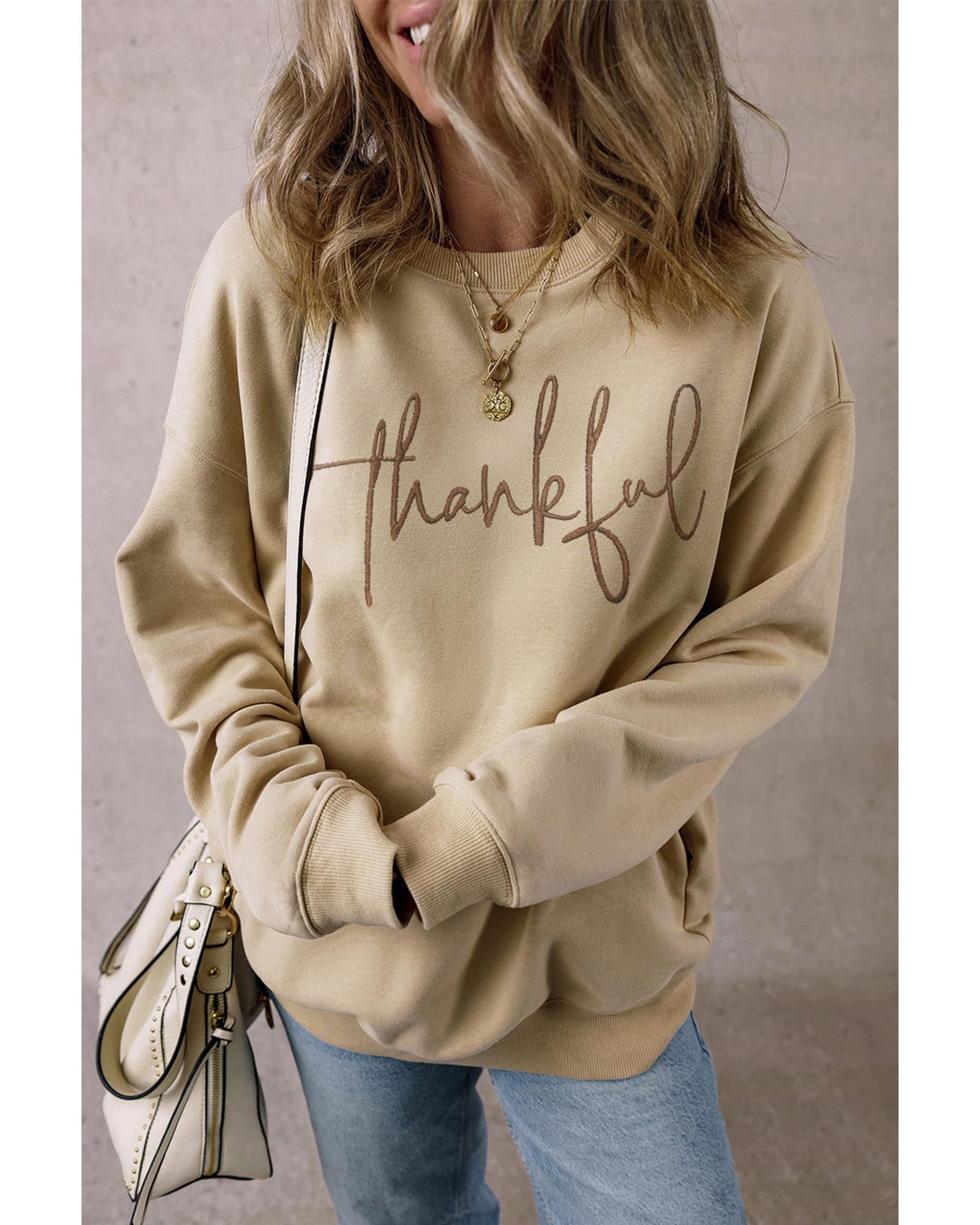 Parchment thankful Embroidered Drop Shoulder Pullover Sweatshirt – M