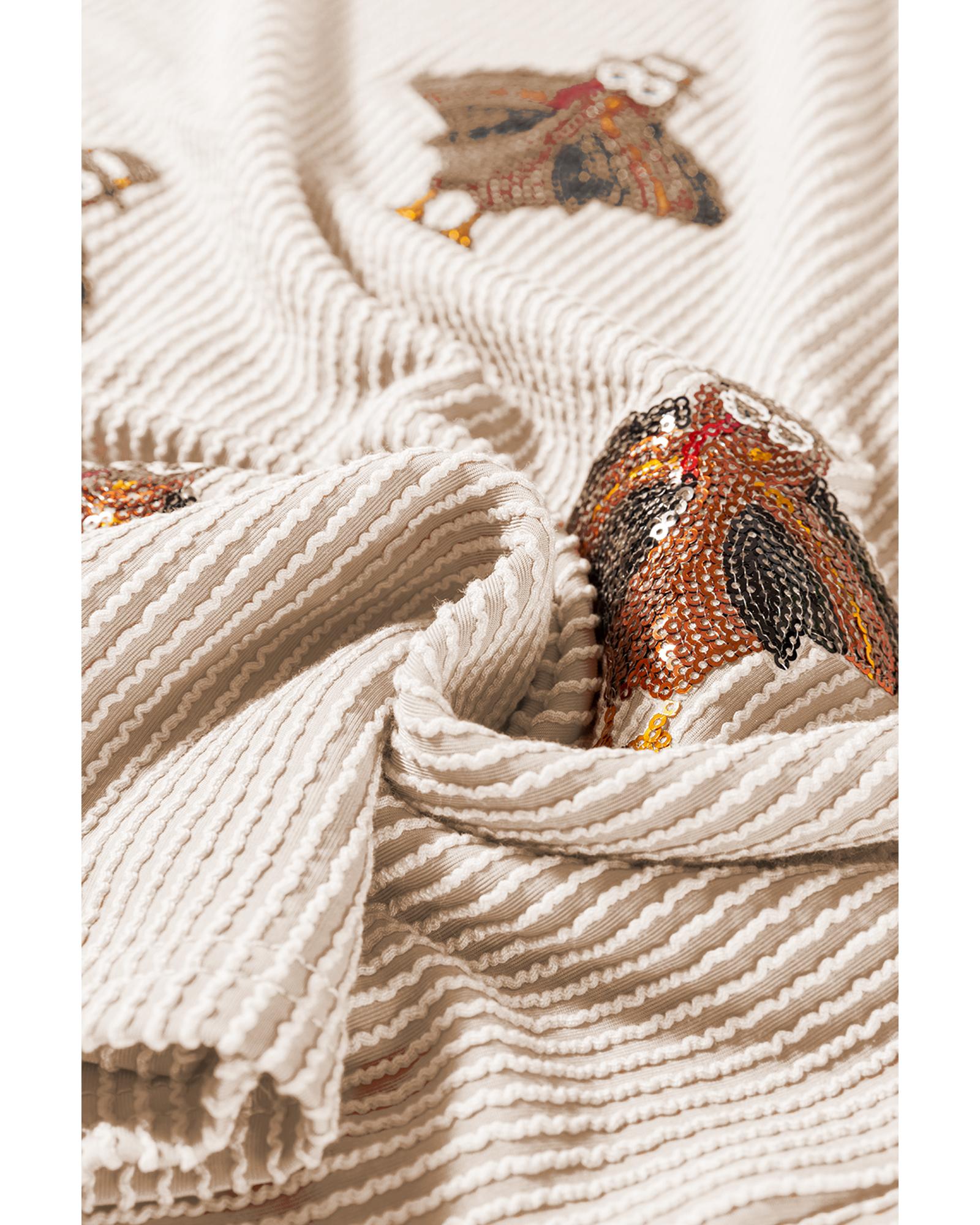 - Shiny sequined turkey patterns add a touch of fun to your Thanksgiving attire