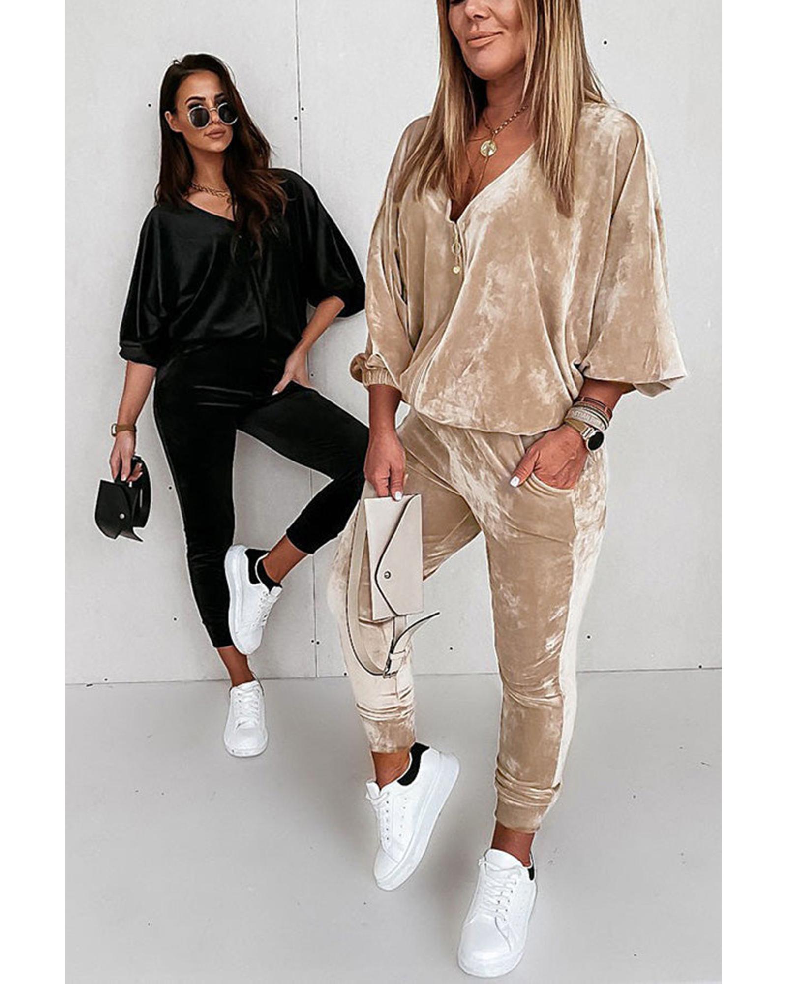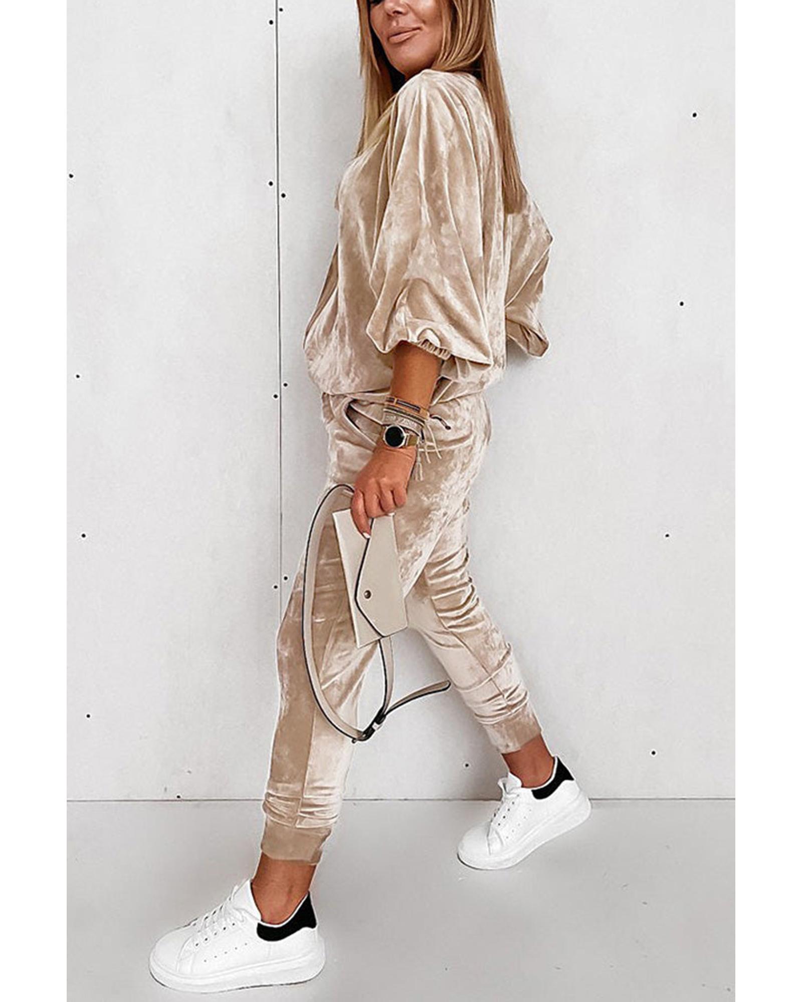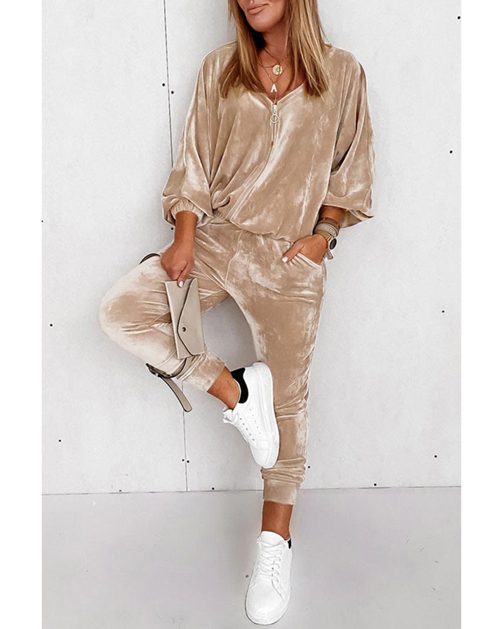 • Parchment Velvet Zipped Top and Joggers Two Piece Set