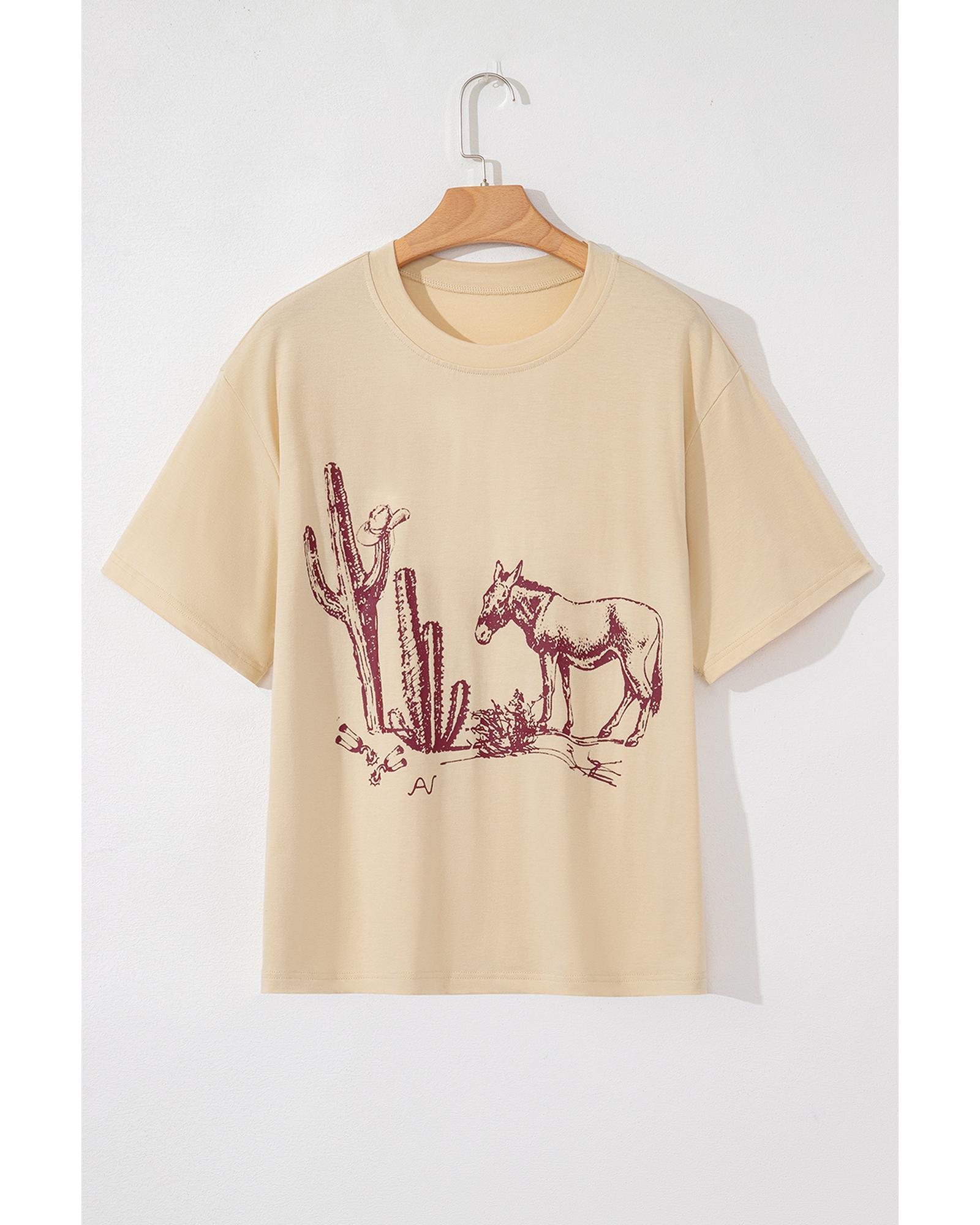 • Parchment Western Burro Cactus Crew Neck Graphic Tee